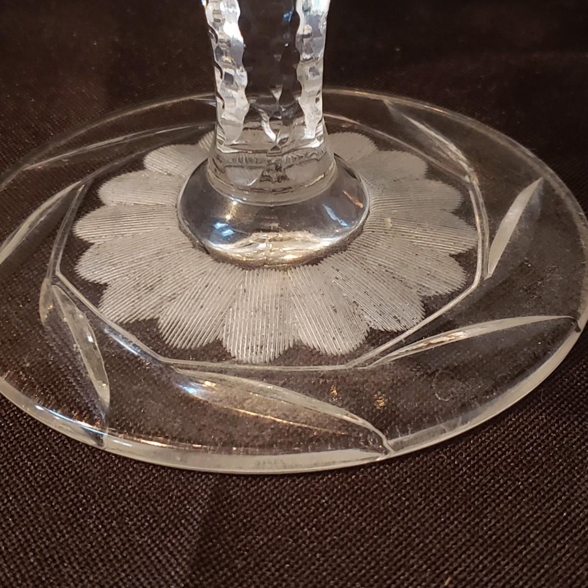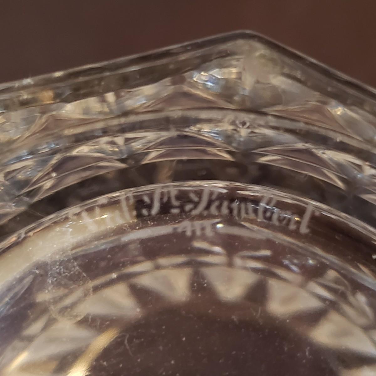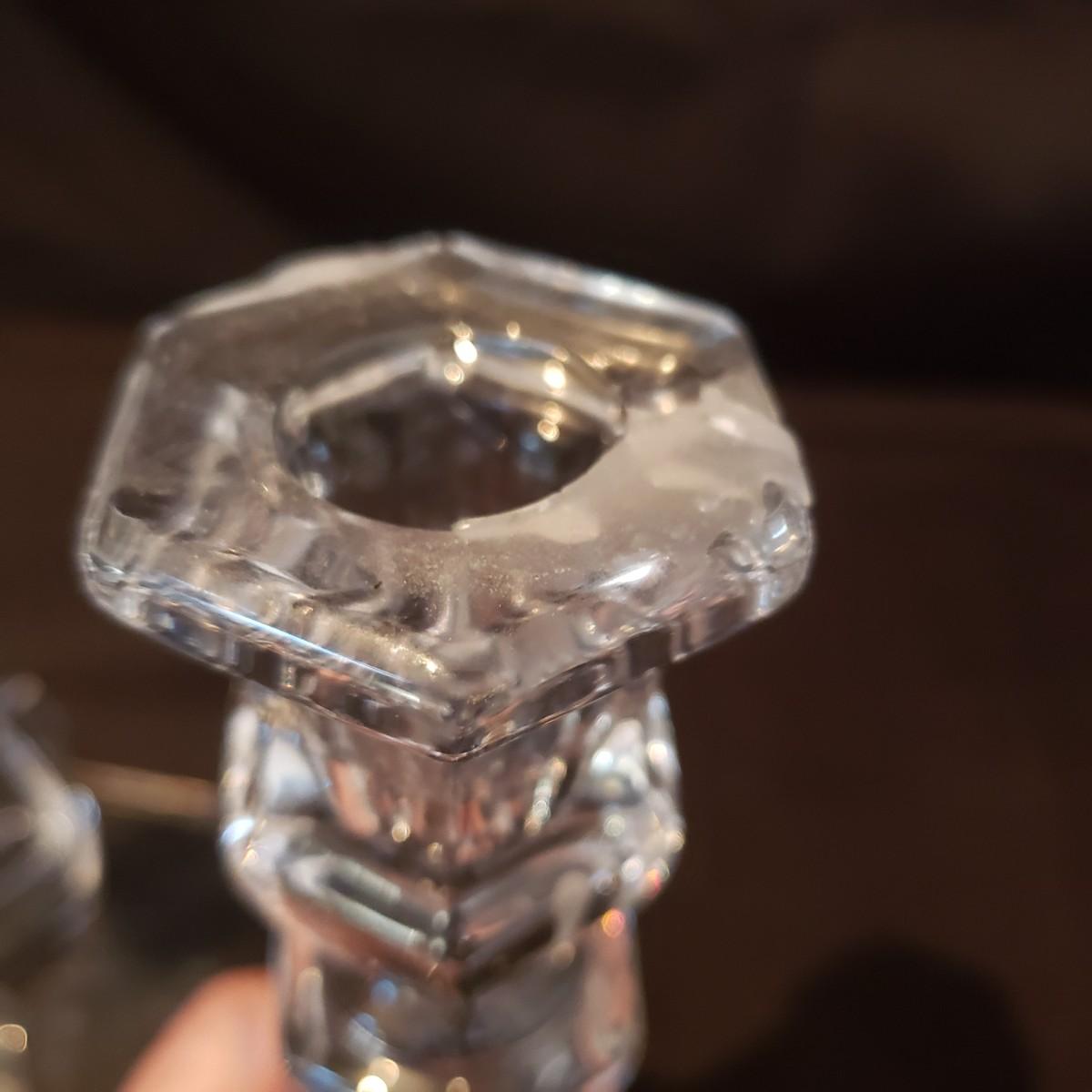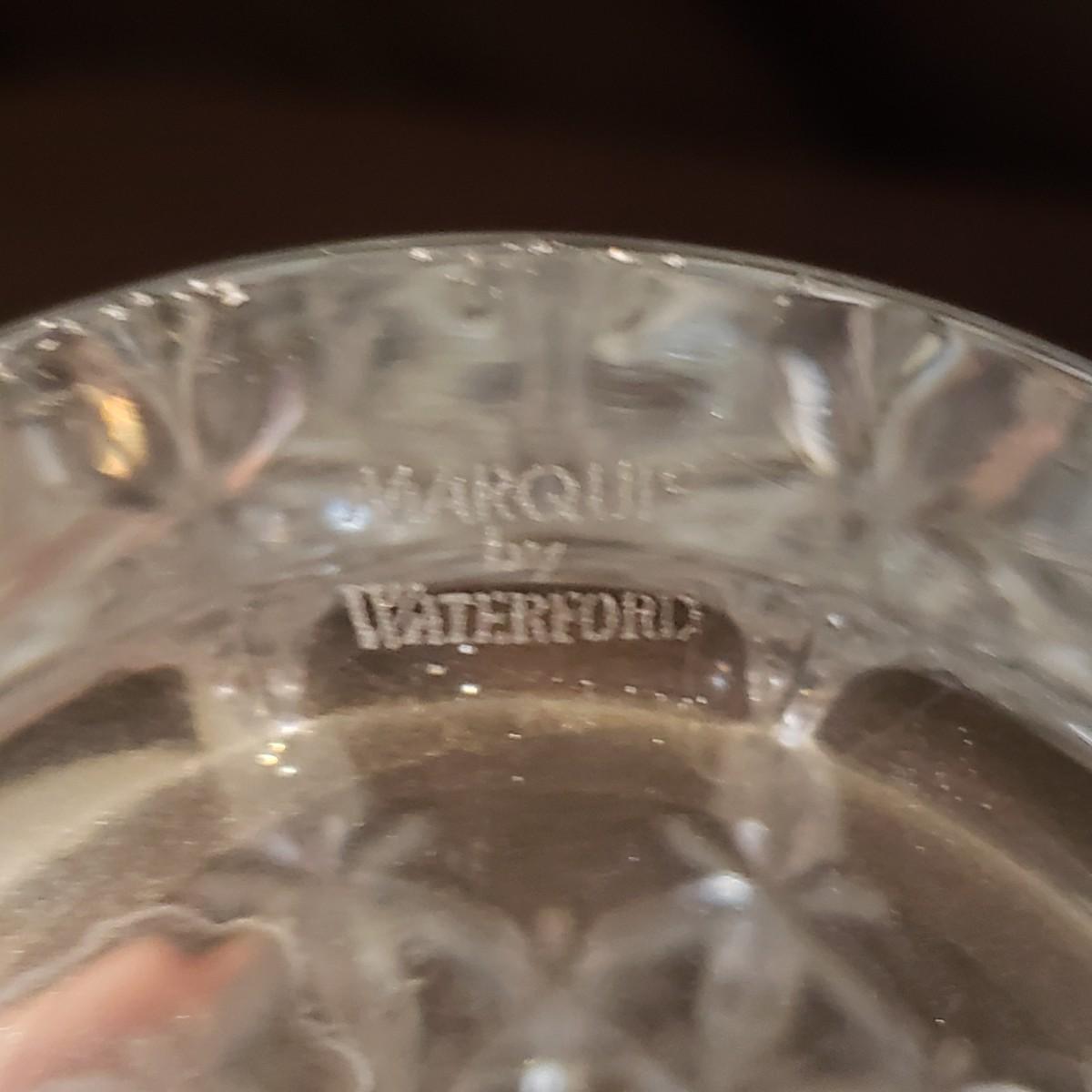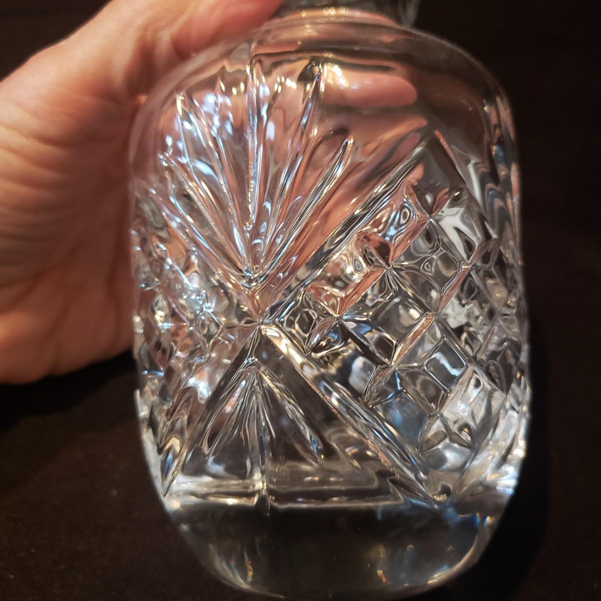 This elegant clear glass lot features a Marquis vase by Waterford. The vase is heavy to the touch and measures 5.5" x 10"H. The smaller vase also has markings, but it is hard to decipher, see pictures. The pair of candlesticks would look beautiful on your Thanksgiving table! There is a tray, a bell and a lidded jar to add to the elegance. The bedside night craft is not only beautiful but useful! The floral candy dish has a textured feel on the outside.