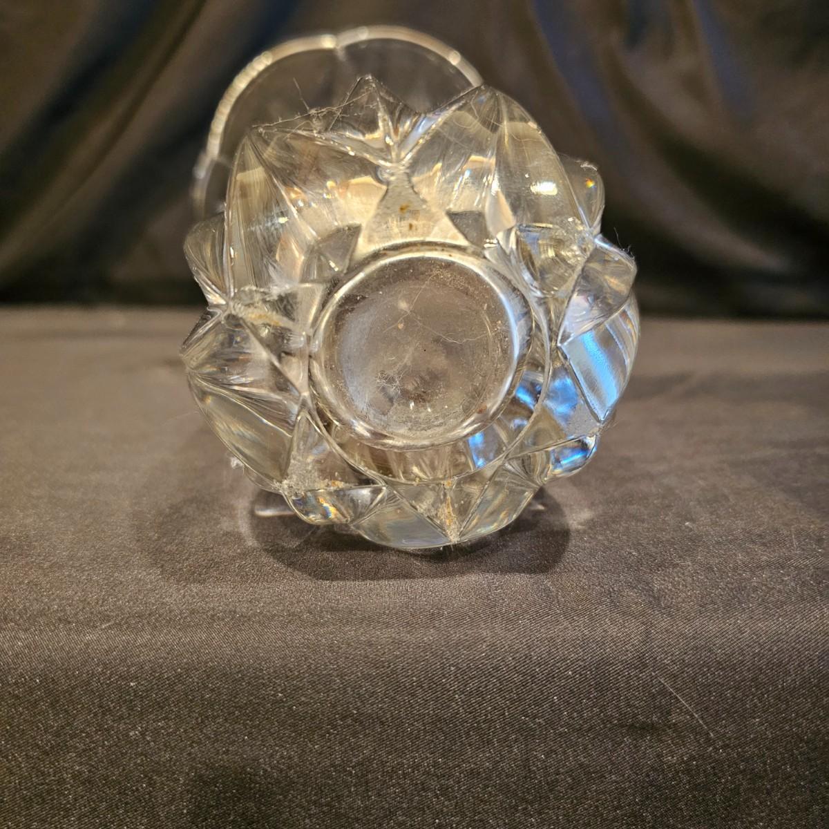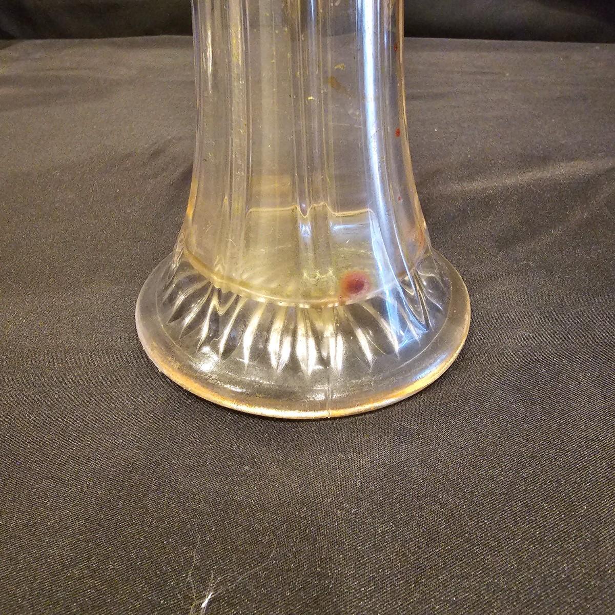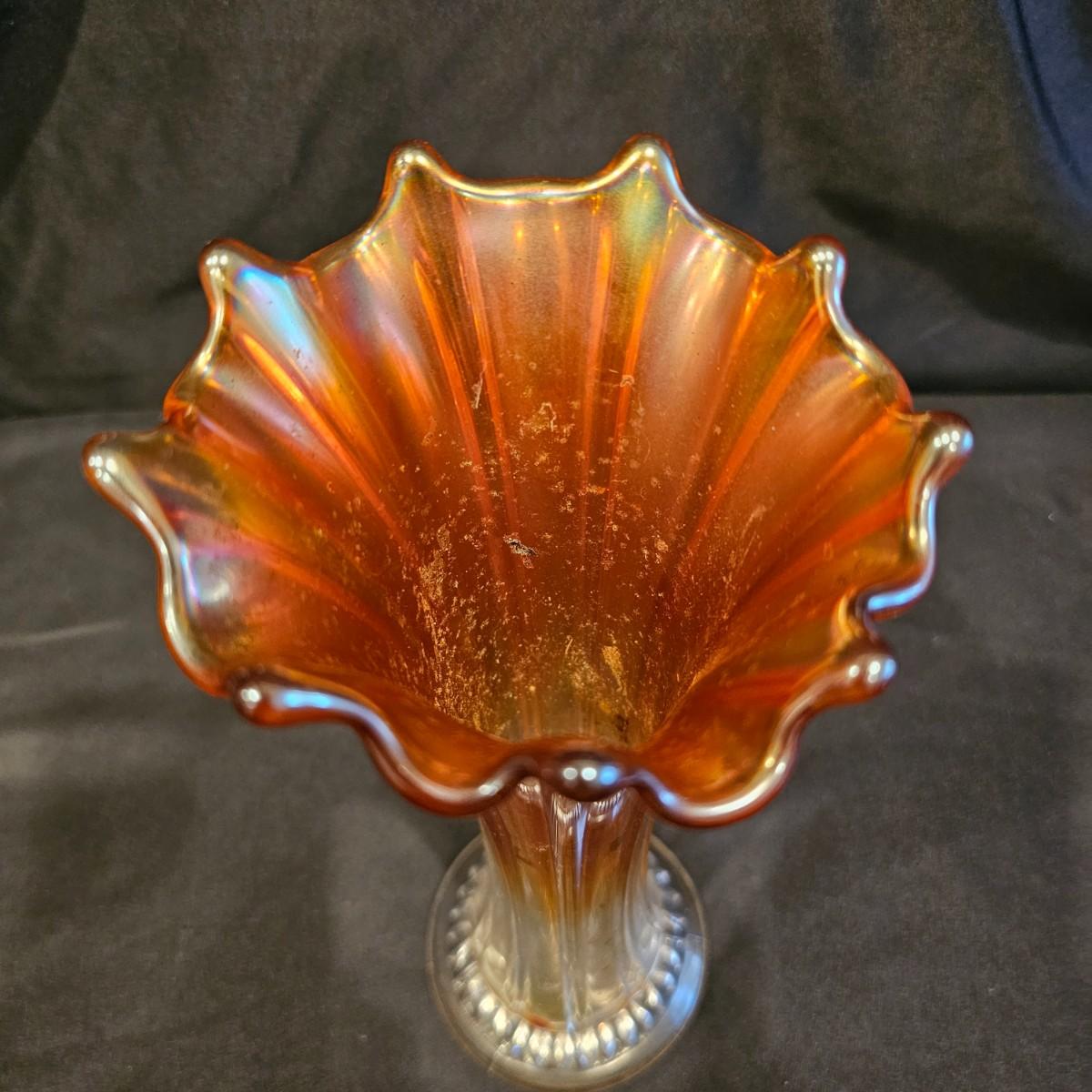 A unique Waterford bud vase and three other vases. Waterford piece is 4.25"d x 9" h, is free of chips or cracks. Tall crystal vase is 6.5" x 11" h, has small nick in bottom edge. Oval piece has fluted sides, measures 3.5" x 5" x 8.5" h. Colored vase is 4.25"d x 10" h, has iridescent shading on top. See photos for details. Shipping available. Shipping can be costly. We suggest contacting our preferred local shipping provider, Postage Express, with dimensions and getting an estimate before bidding: (828) 670-5501 or postageexpress@yahoo.com.