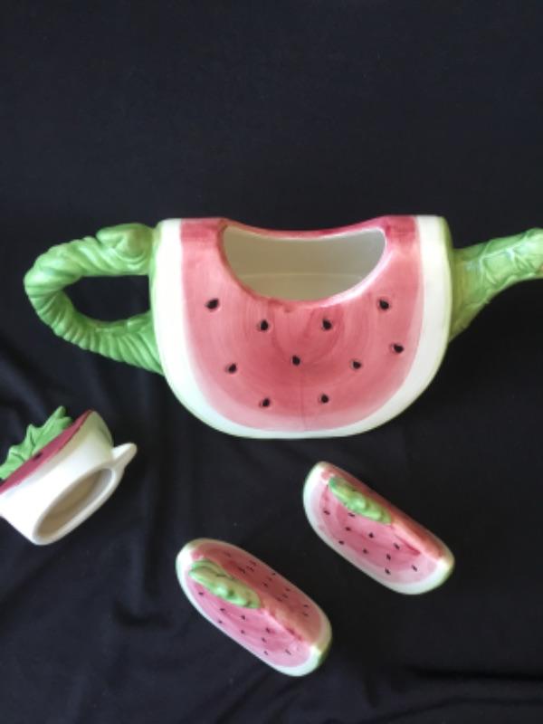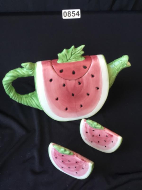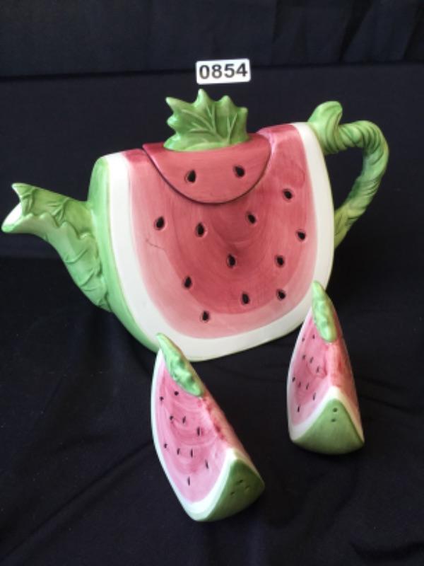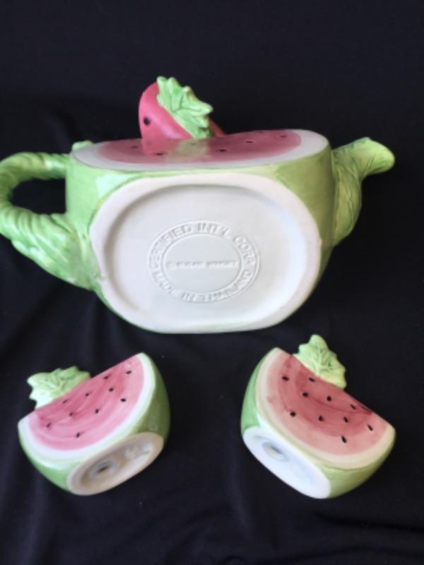 Watermelon Tea Pot w/lid and Salt & Pepper Shaker Lot 854
