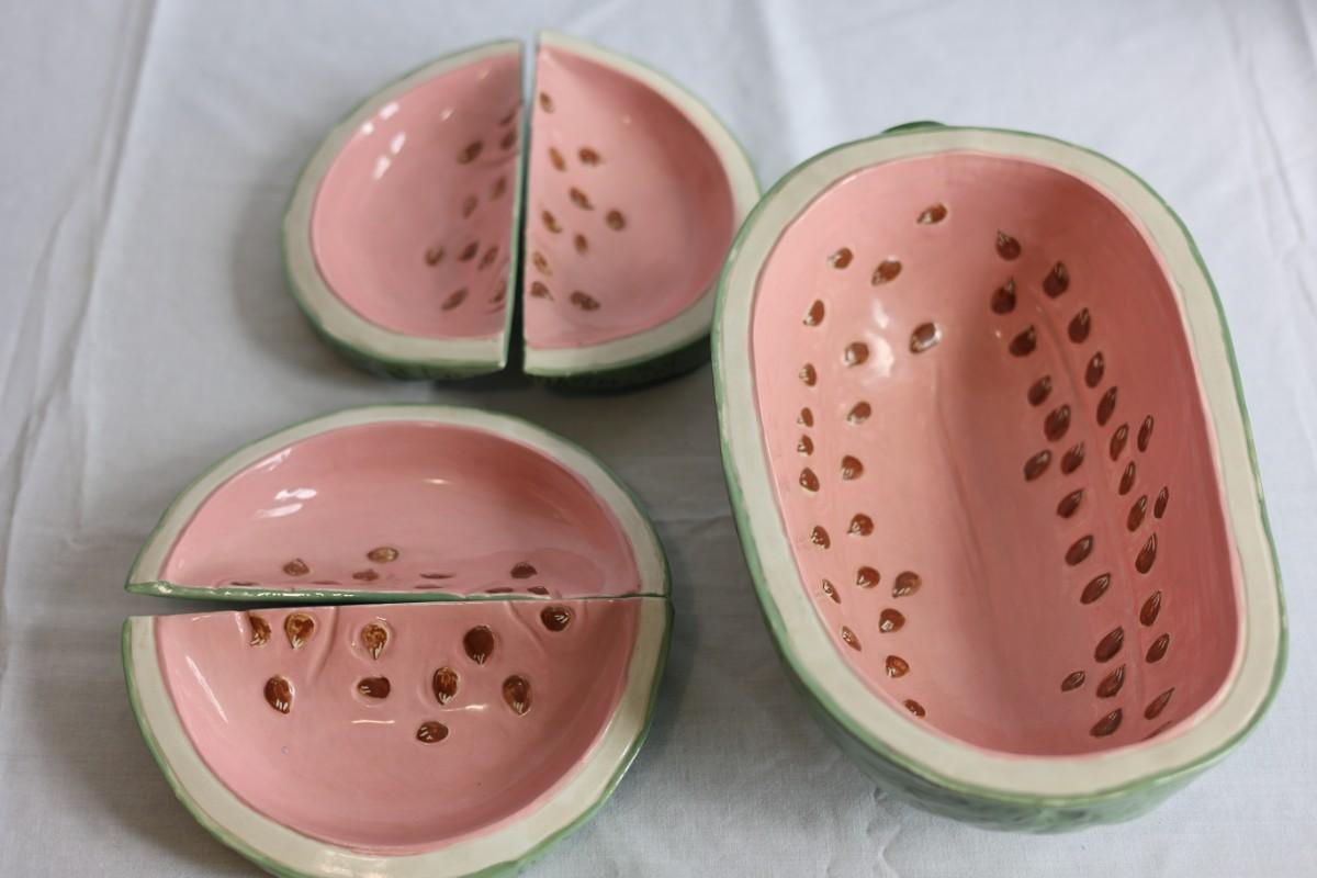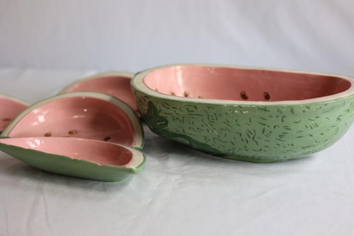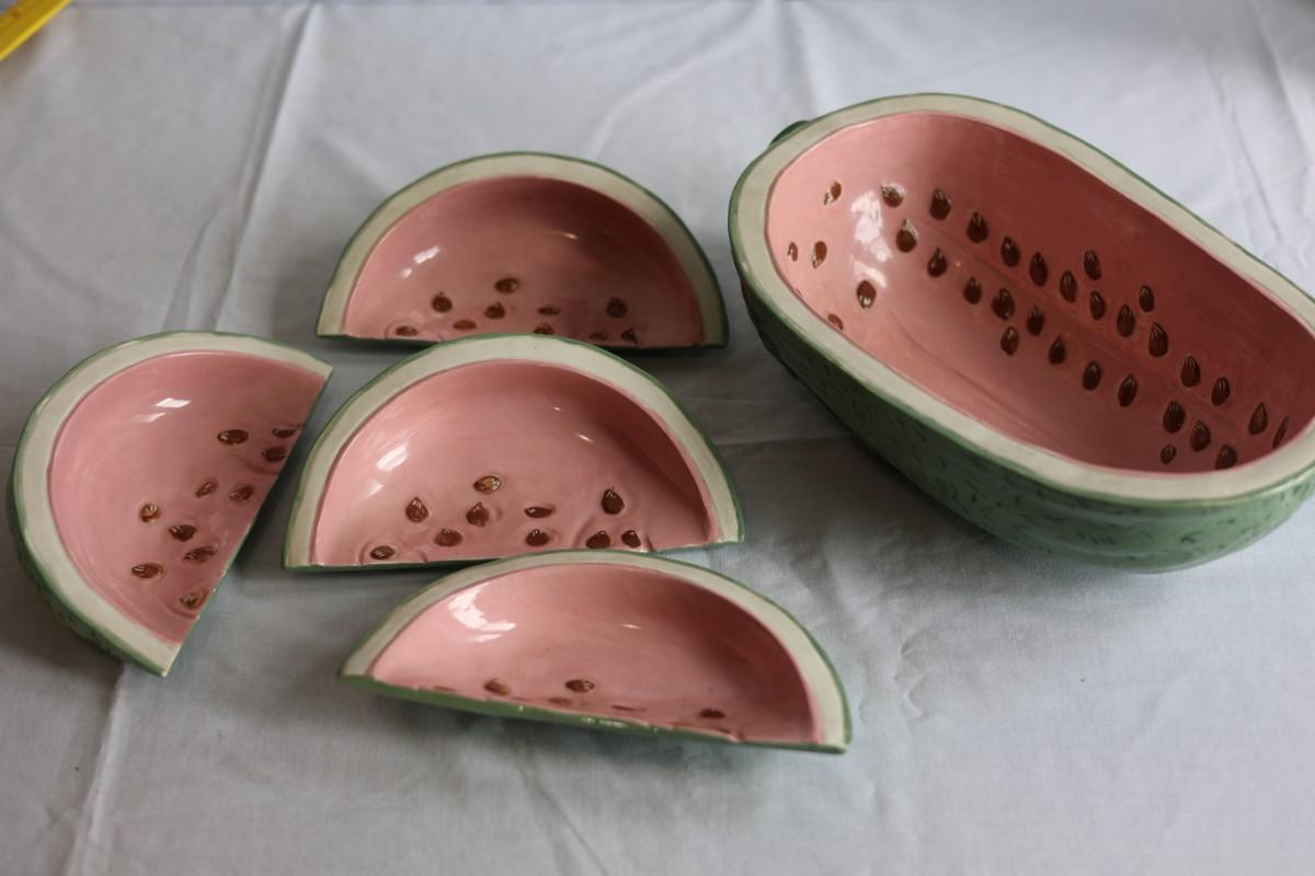 Watermelon Serving Dish with Four (4) Slice Bowl Dish Set