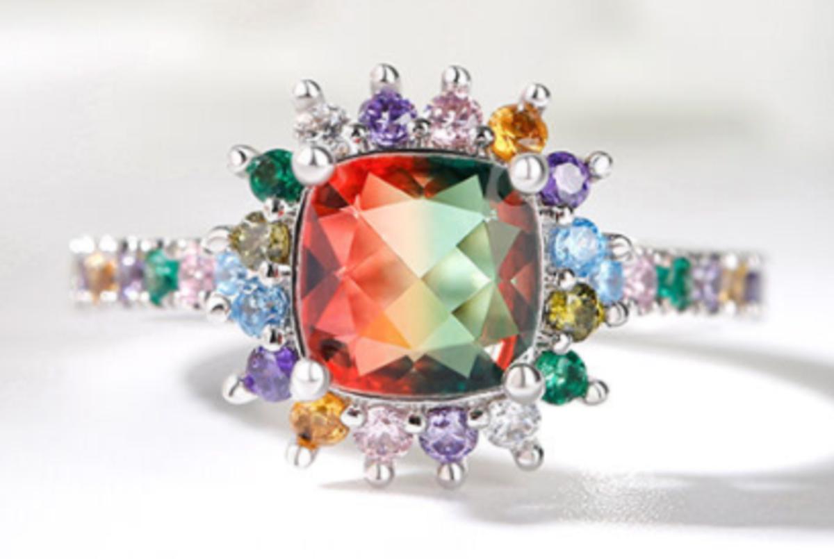 Watermelon Tourmaline & Moissanite Gemstone Ring