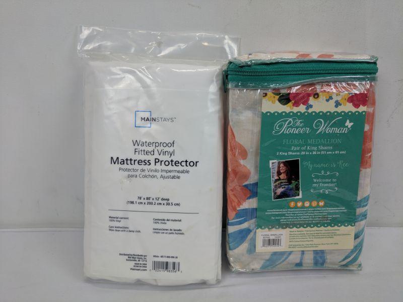 Waterproof Fitted Vinyl Mattress Protector King & Pioneer Woman King Shams - New