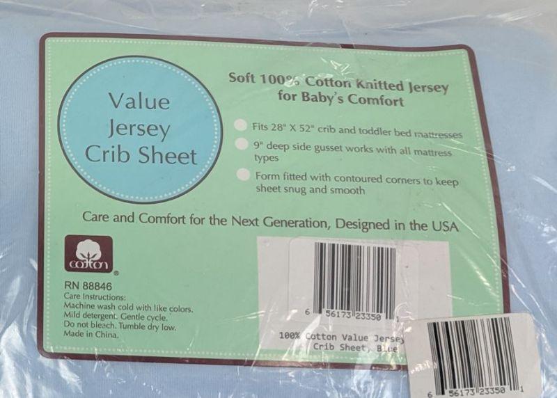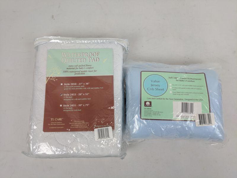Waterproof Quilted Pad 28" x 52" & Cotton Jersey Crib Sheet 28" x 52" Blue - New