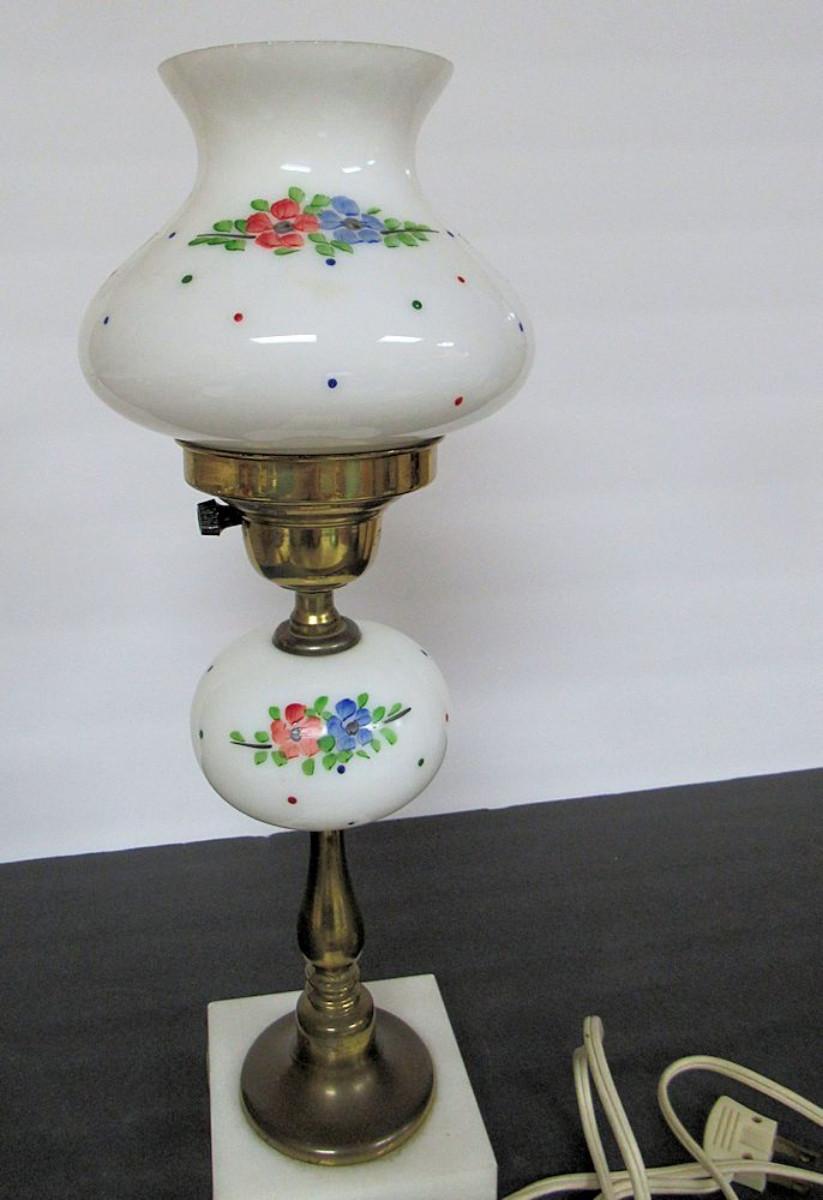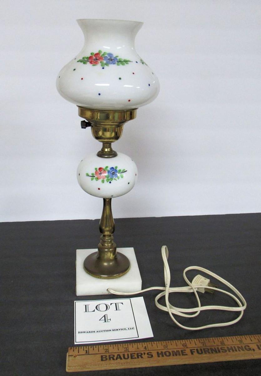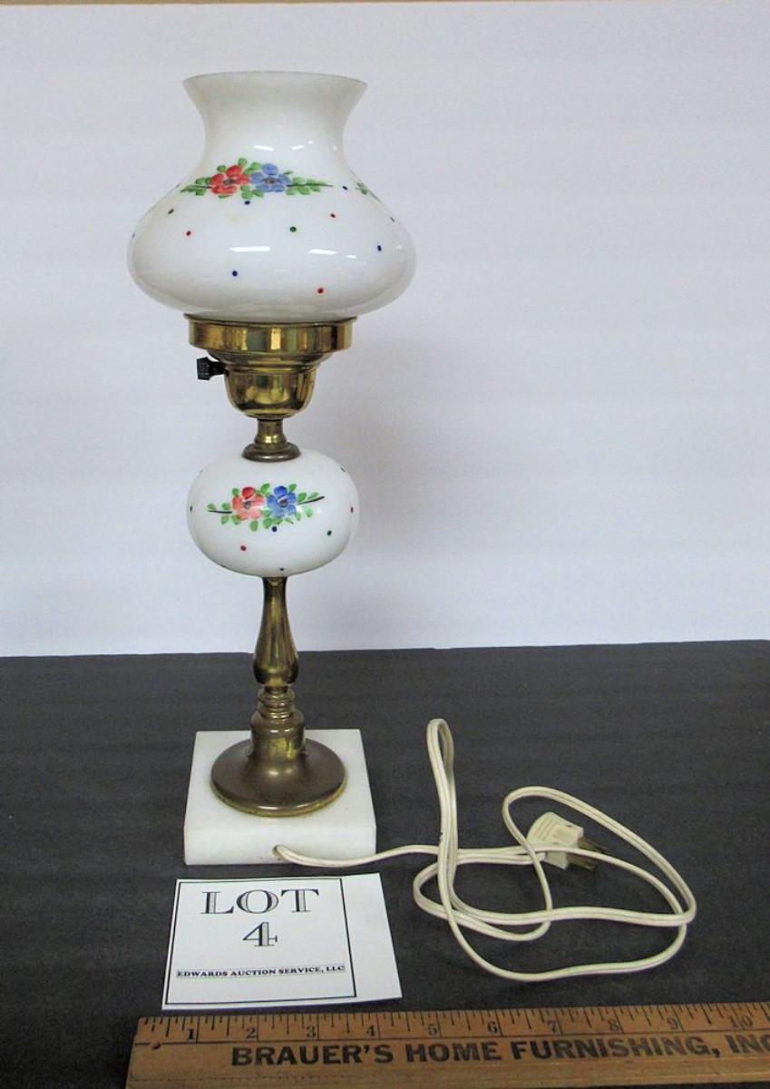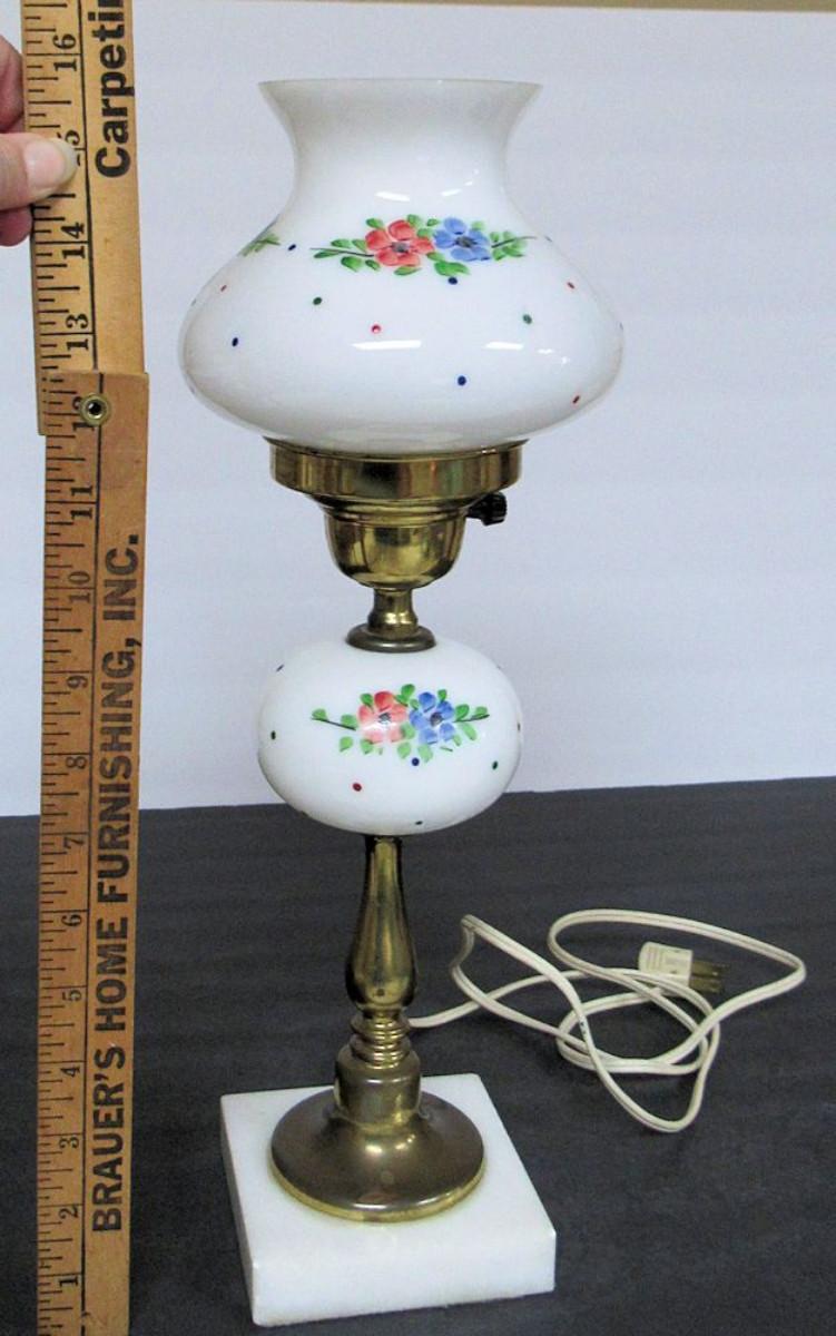 Vintage Smaller Lamp, Brass, Glass, Marble Base