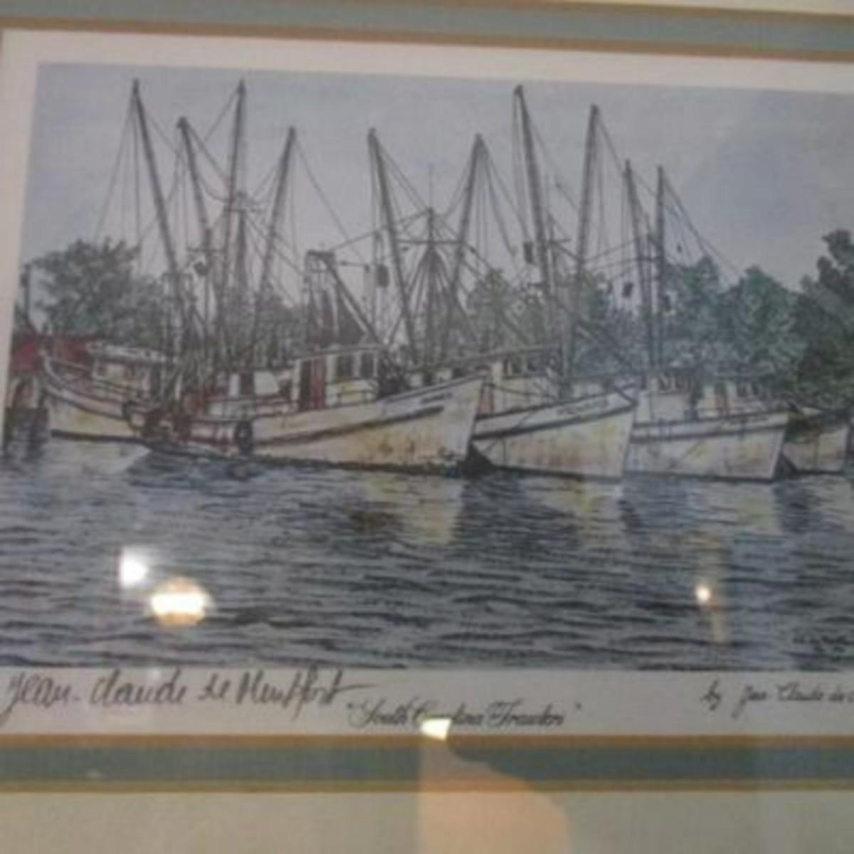 Set of 4 Framed Art Prints Waves Crashing & Fishing Boat Art By Herb Jones and Other (See all Pictures) - D