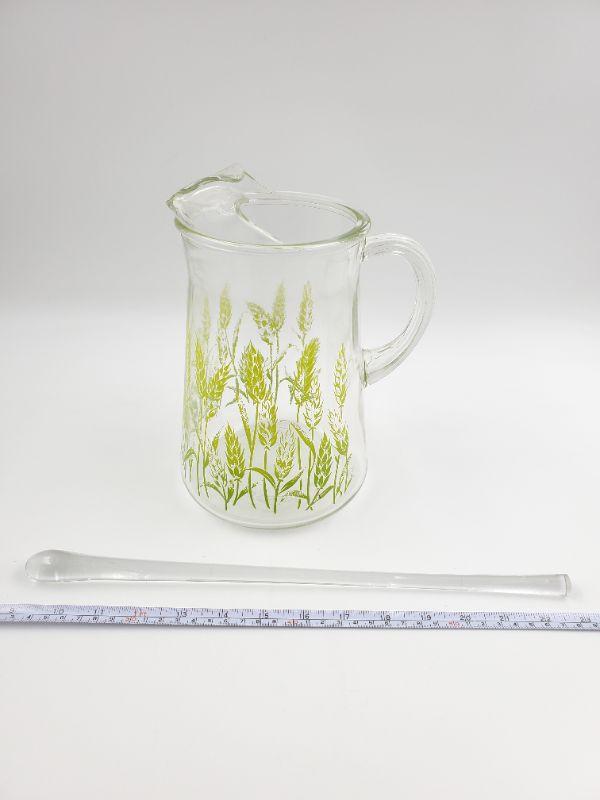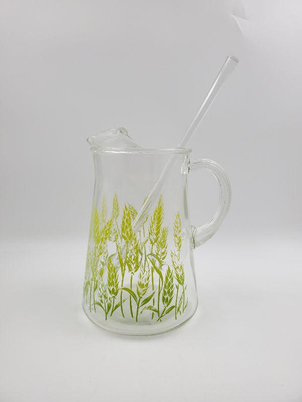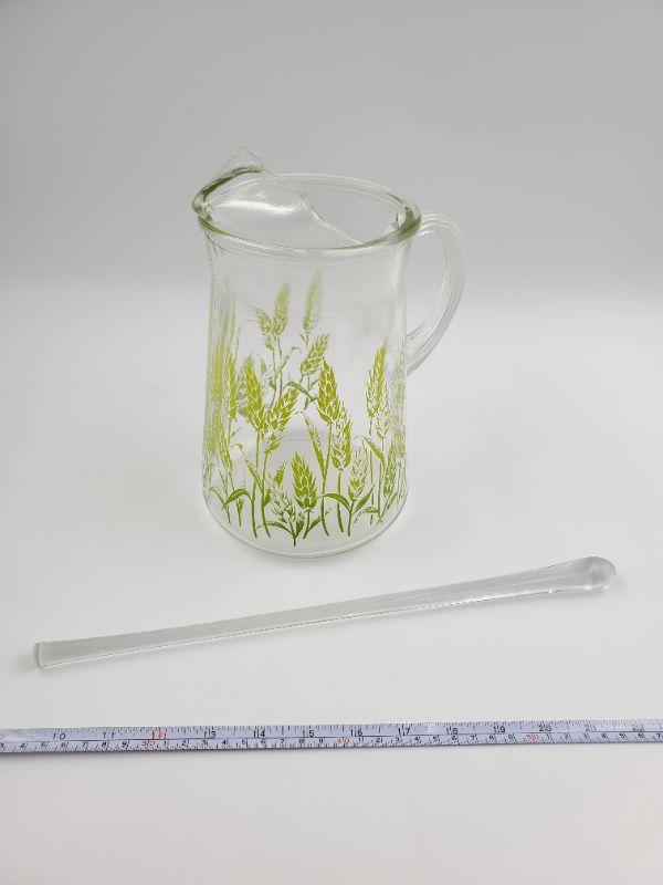 WAVES OF WHEAT CLEAR GLASS PITCHER AND STIR STICK