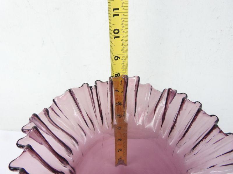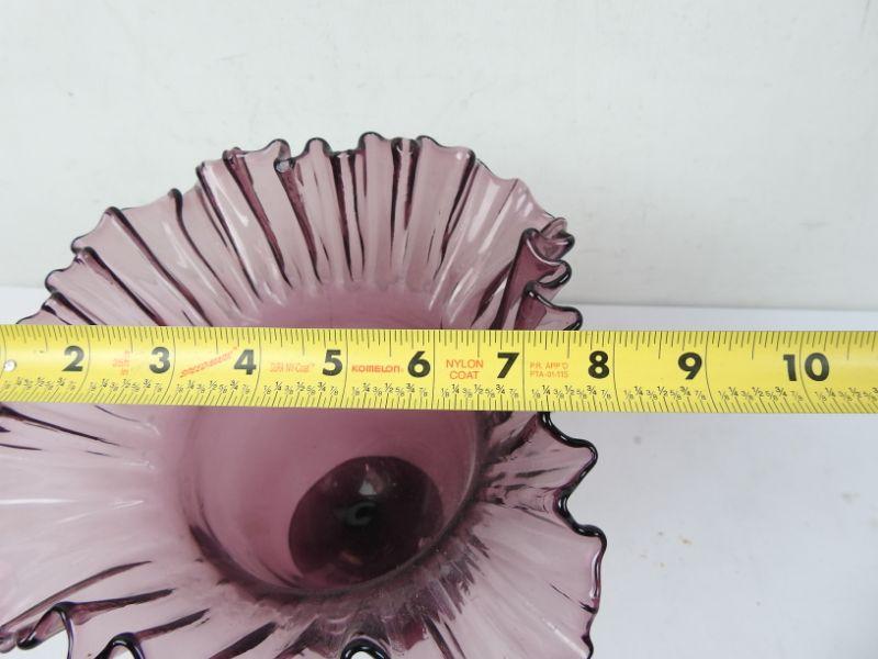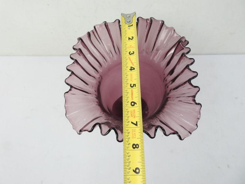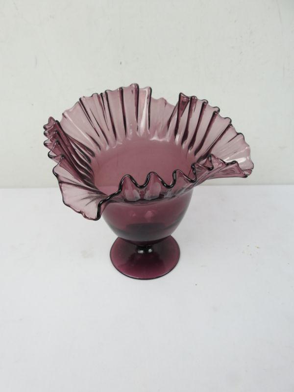 Wavy/Lettuce Rim Purple/Clear Vase, Glass 8" x 7.5" x 7.5"