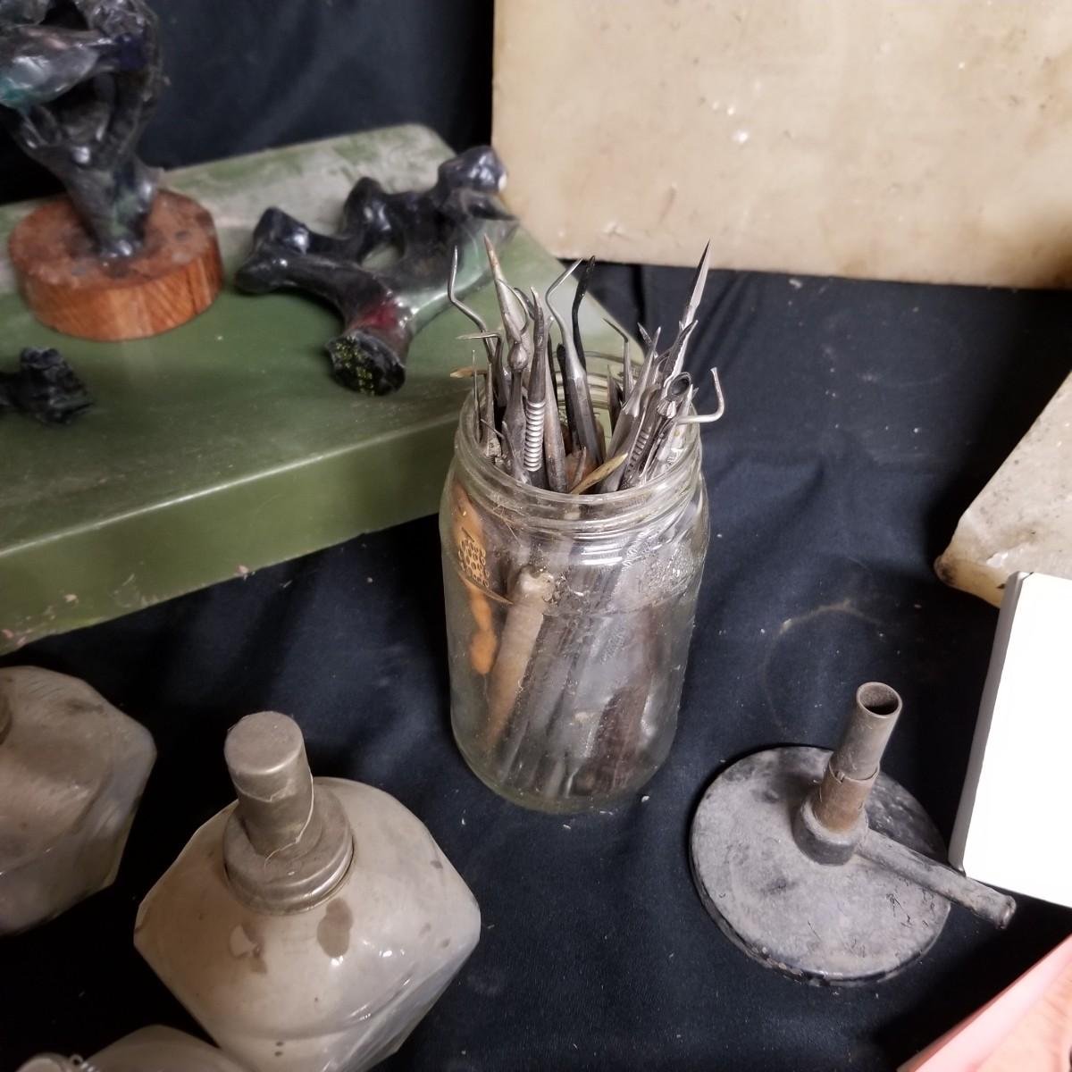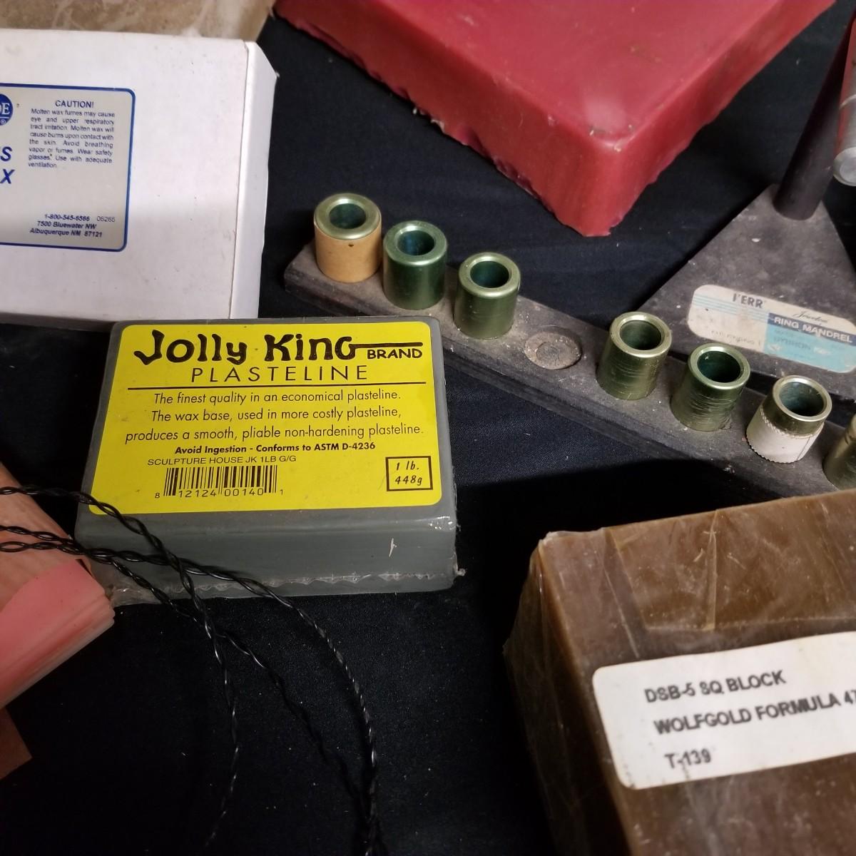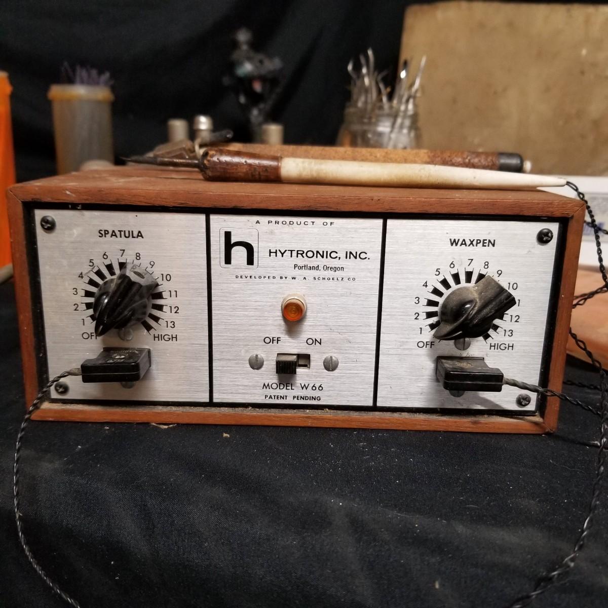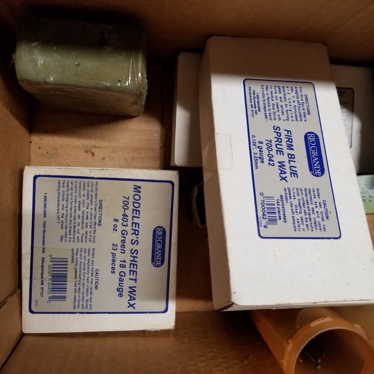 An abundance of wax and wax working tools to create jewelry or whatever you like.   Three boxes of assorted types of wax, blocks, sticks, sheets.  Various types of hand tools, picks, etc.  One Kerr ring mandrel forming set. Four spirit alcohol lamps. One Hytronic model W66 electric spatula and pen unit.  Item would not power on so untested.  Local pickup only.