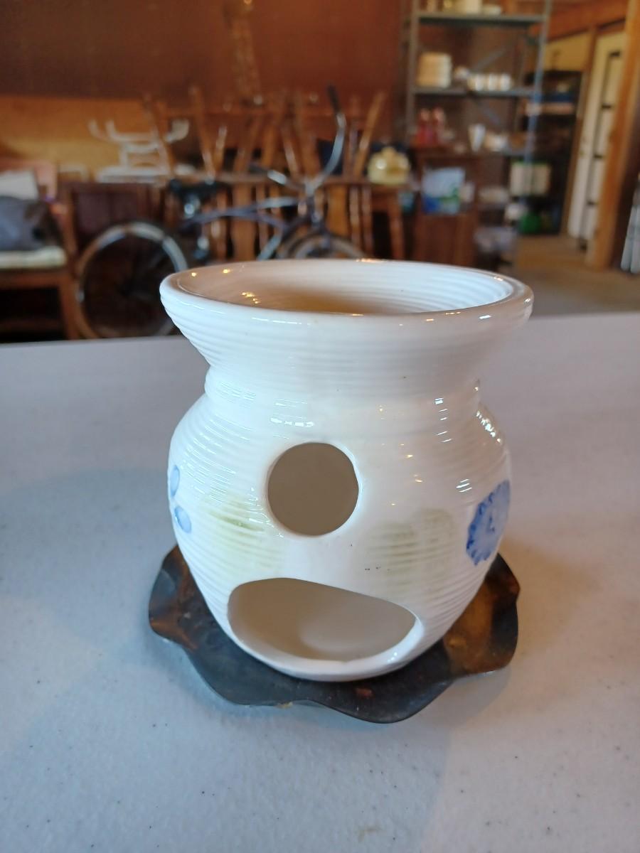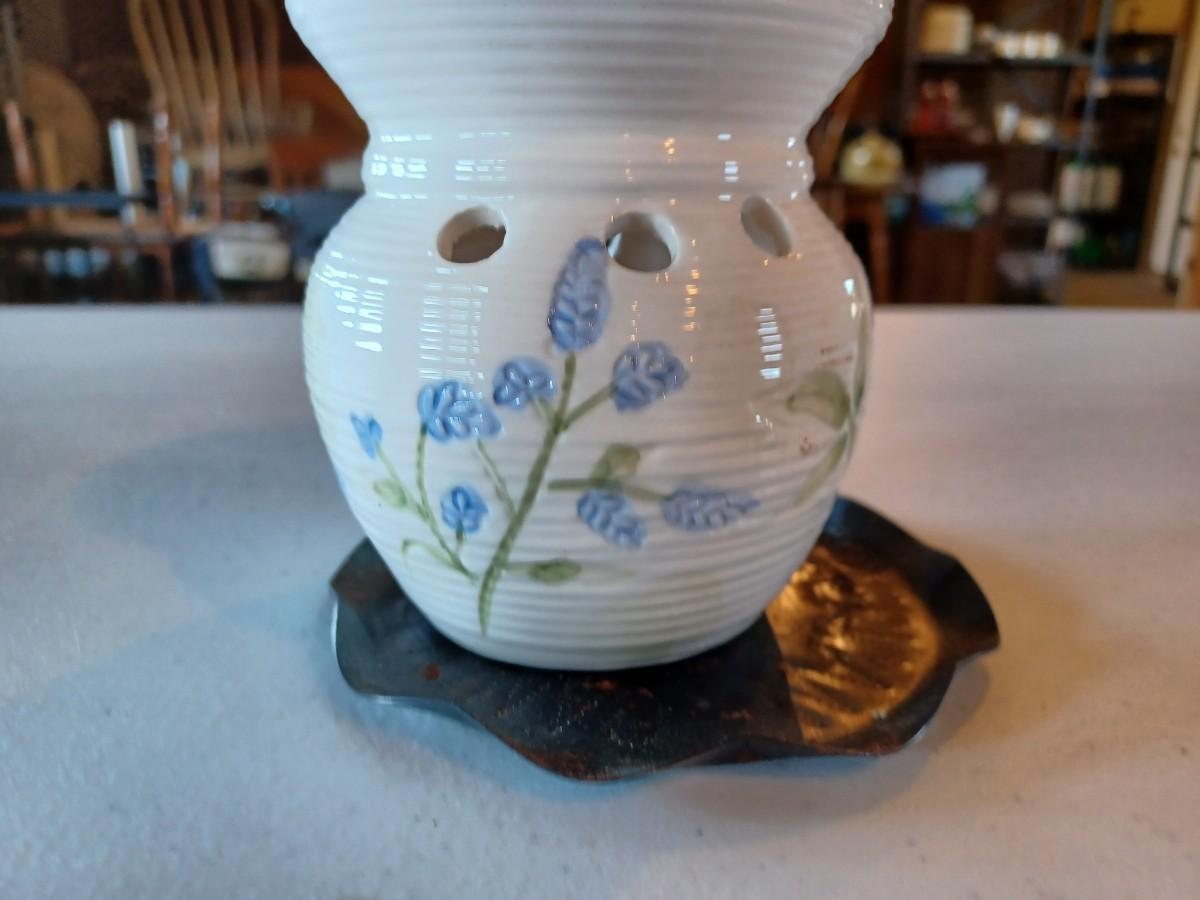 Wax Melt Warmer Tea Light Candle Holder White Ceramic with tin underplate
