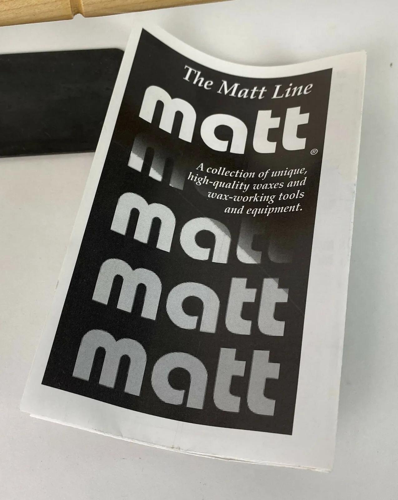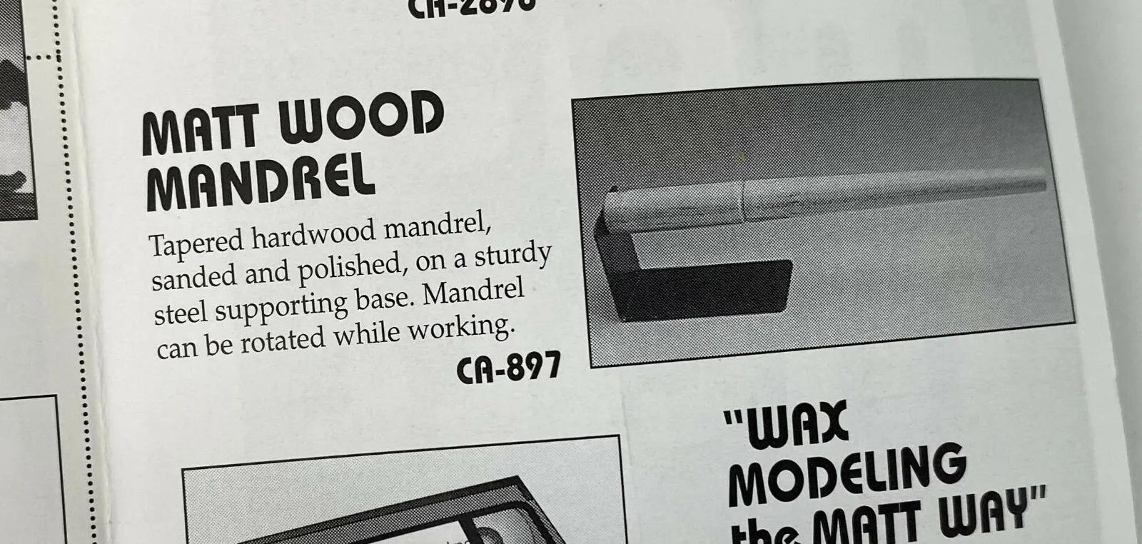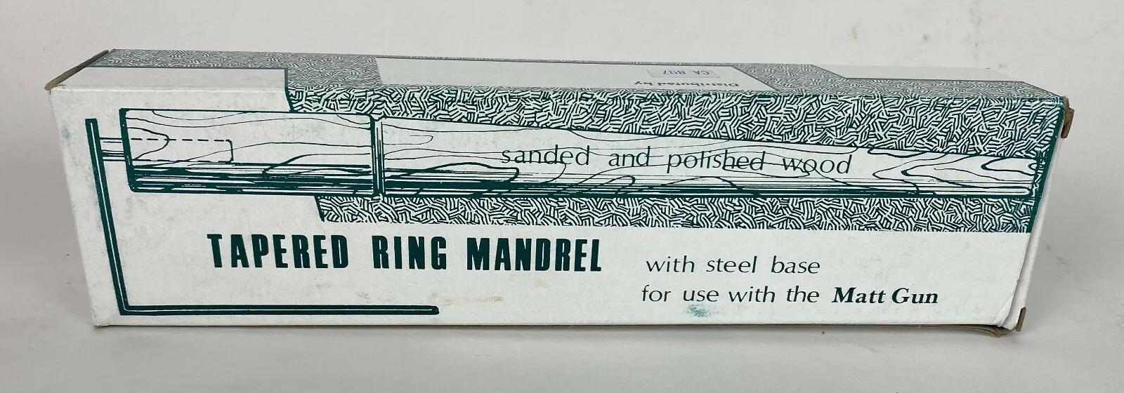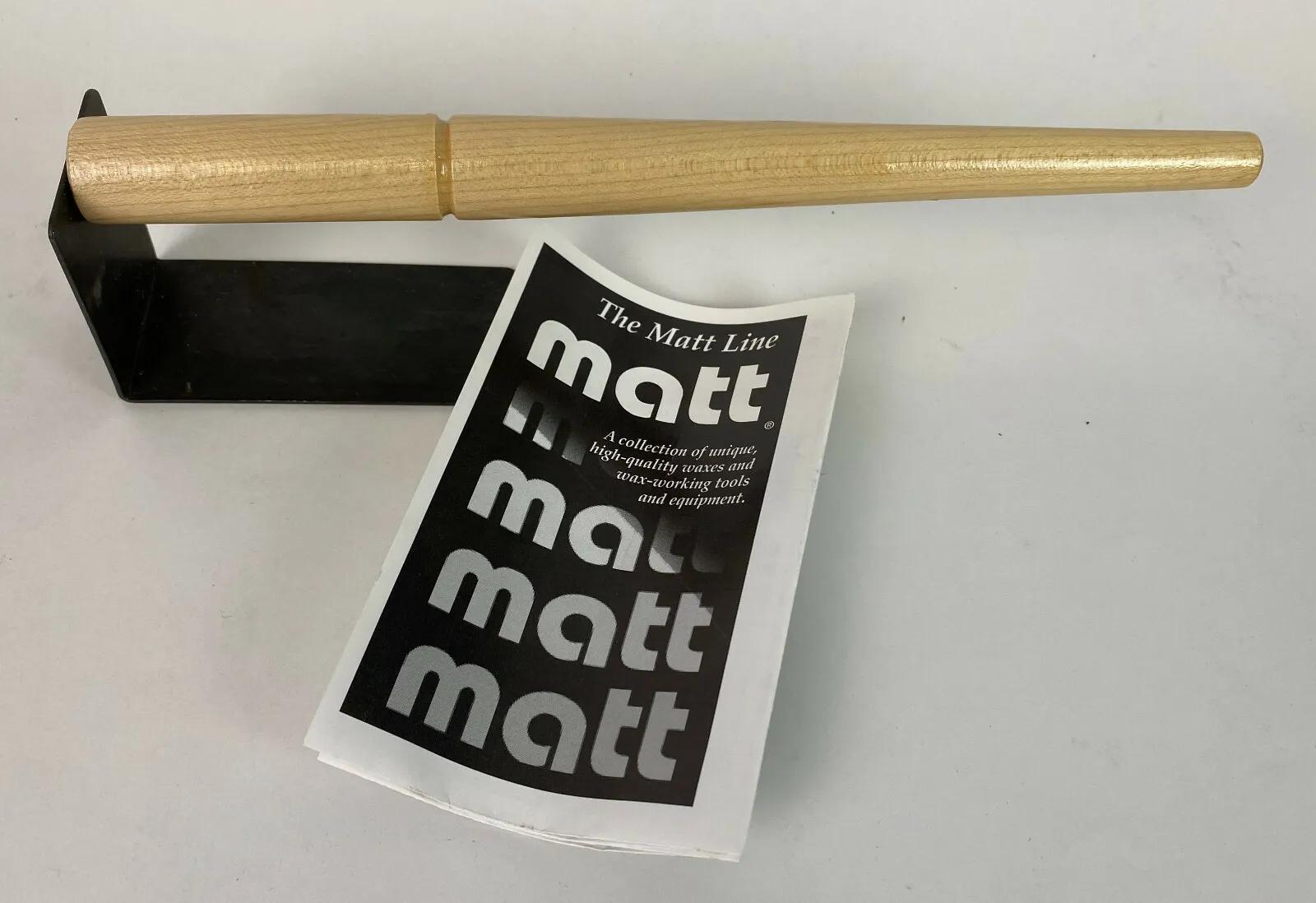Tapered hardwood mandrel, sanded and polished, on a sturdy steel supporting base. Mandrel can be rotated while working.'...MATT WOOD MANDREL...Virtually new condition..in original box with catalog..part of the matt line of wax-working tools...10" long...from DU-MATT Corp of Guttenberg, NJ.