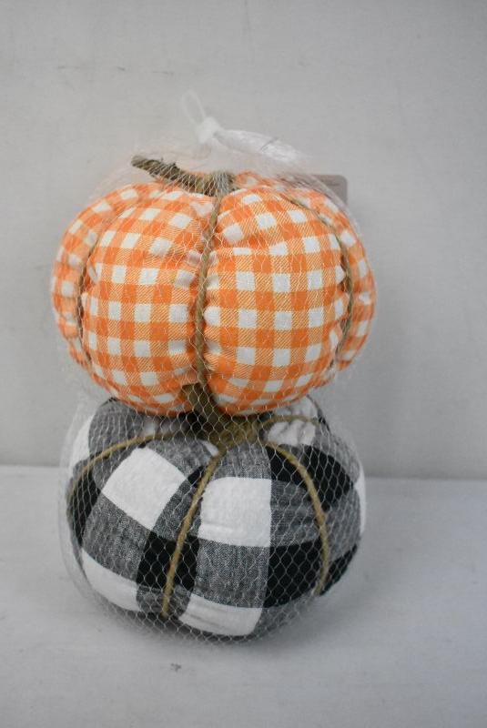 Way to Celebrate Thanksgiving Plaid Pumpkins Decoration (8 in), Set of 2 - New