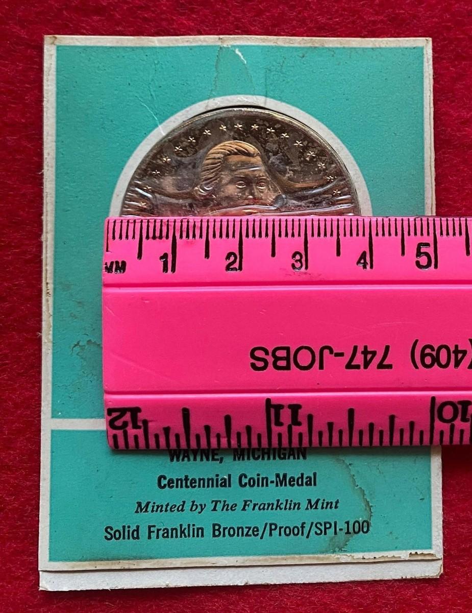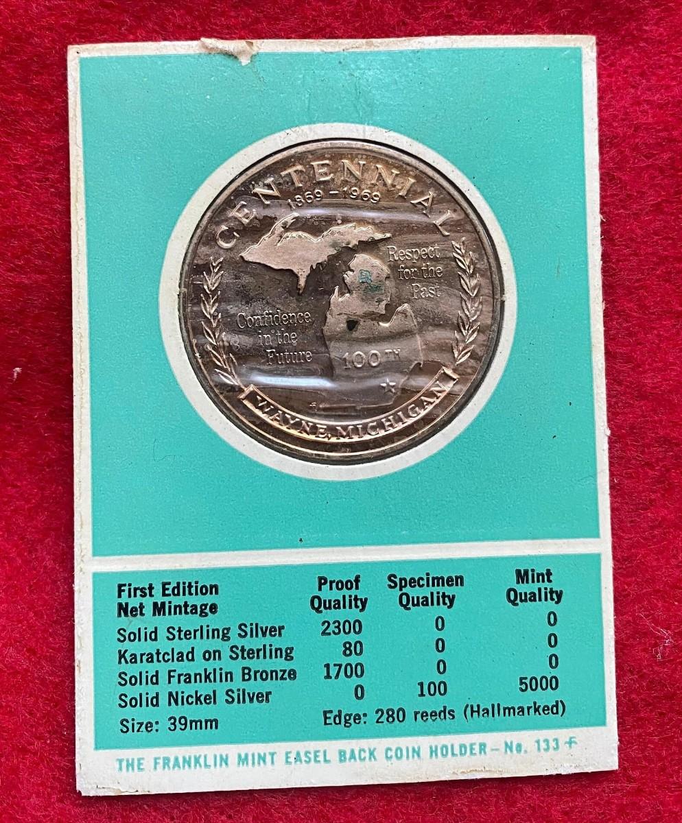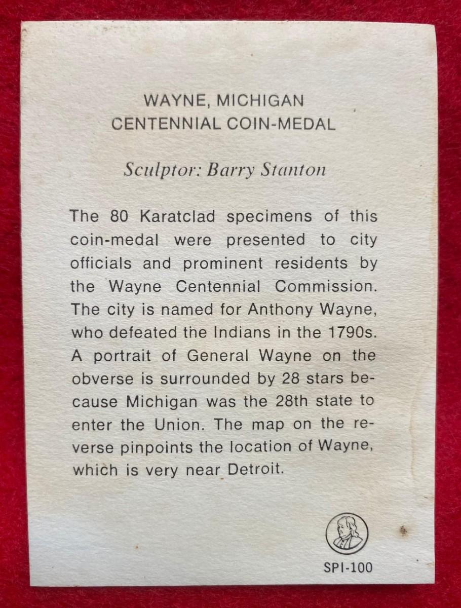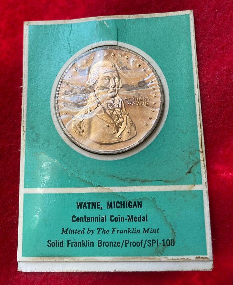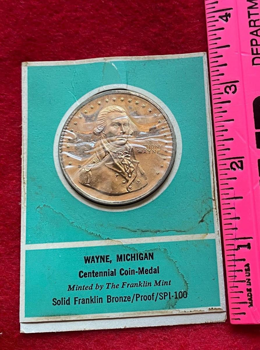 Wayne Michigan Centennial 1869 - 1969, Franklin Mint Specimen, Coin, Medal, Proof, Numismatic, Medallion, Exonumia, General Anthony Wayne