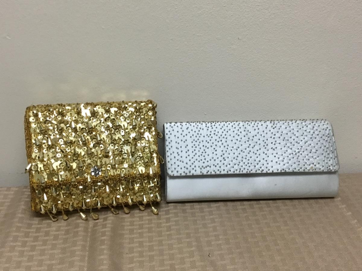 Pair of beaded evening bags. Vintage style. The silver colored one has some staining on it. Small sized.