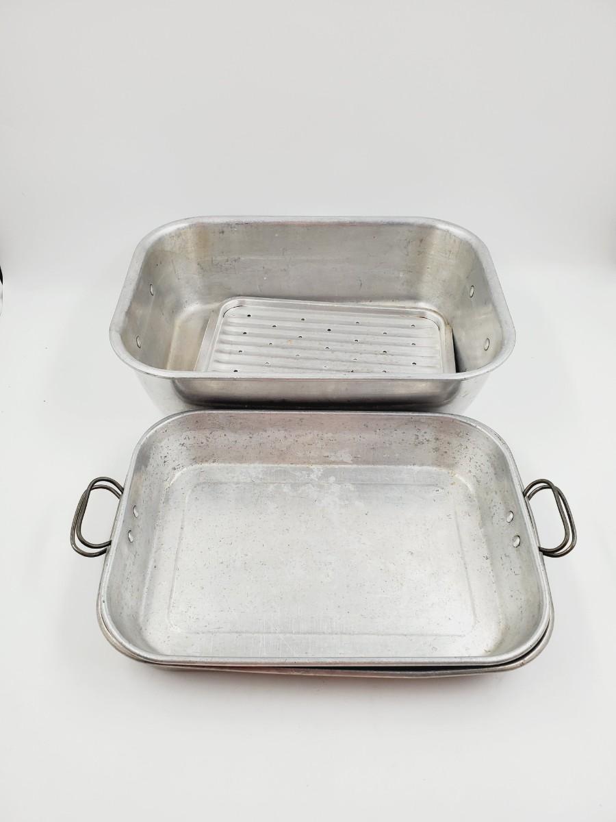2 Wear-Ever aluminum roasting pans, No 312 and 1225 with insert
