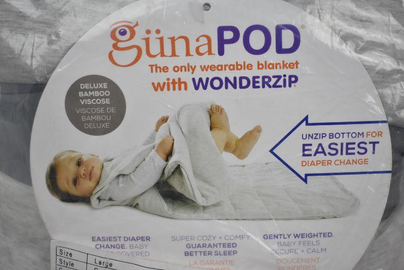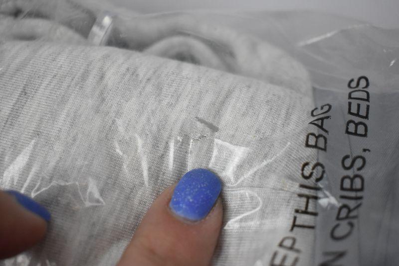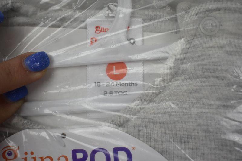 Wearable Blanket with Zipper for Easy Diaper Changes by GunaPod, Gray, small cut on back. Size Large for 18-24m