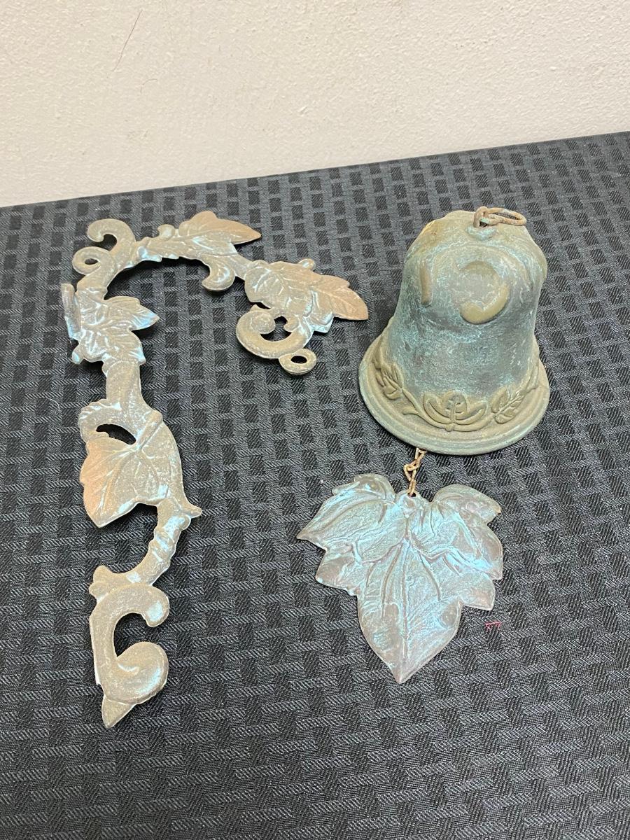 Weathered Brass Copper Metal Bell with Hanging Bracket