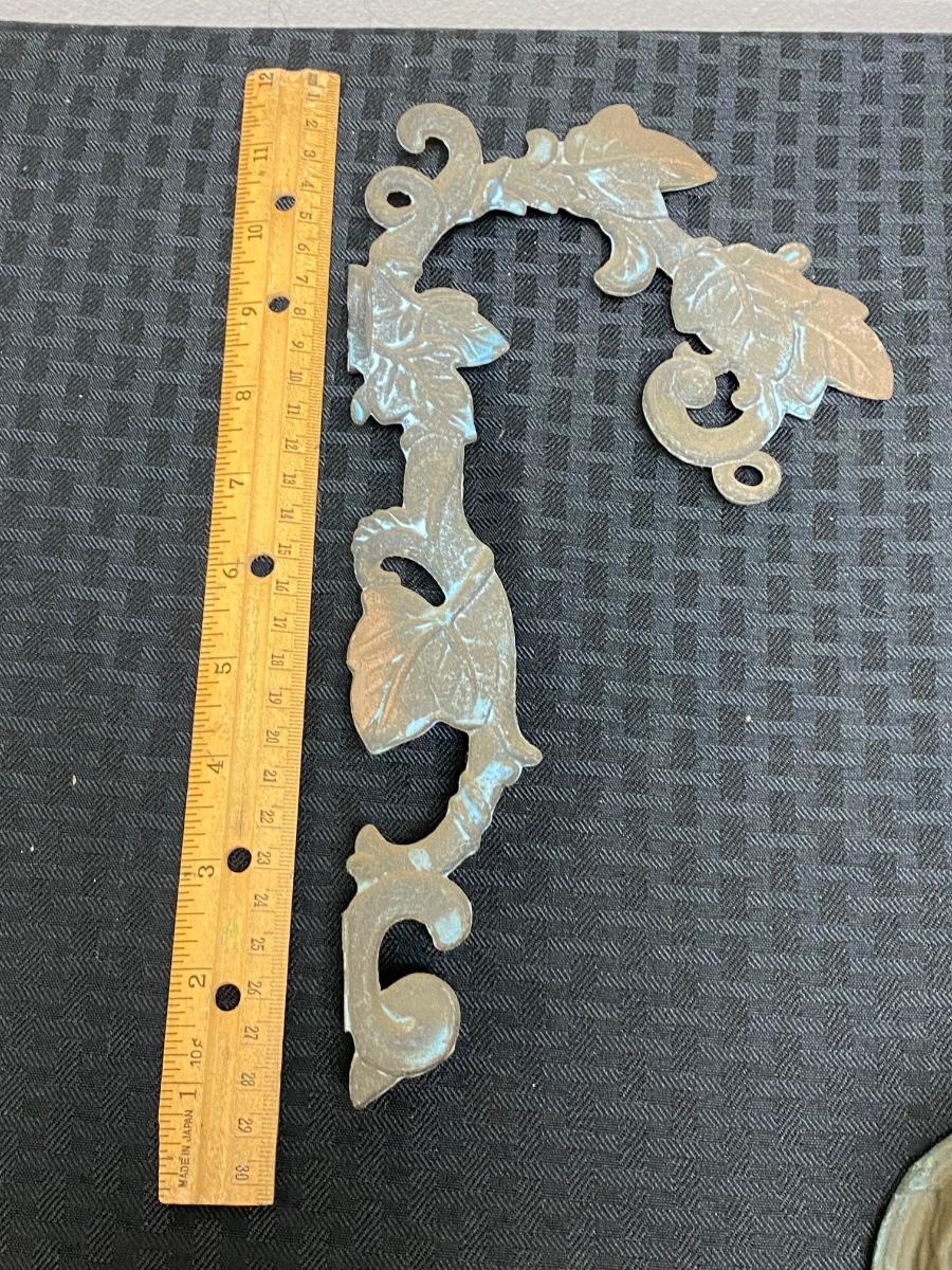 Nicely weathered bell with hanging bracket. Leaf and vine pattern. Great weathered patina.