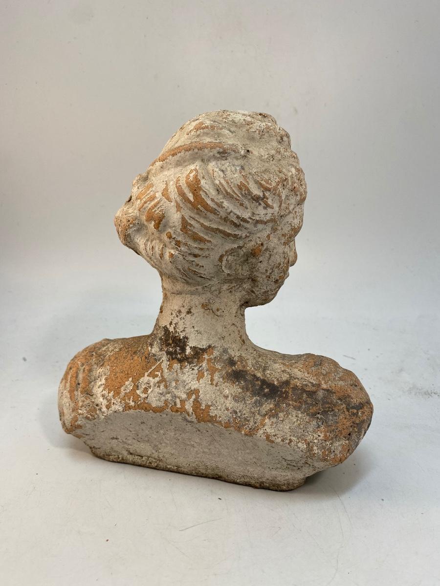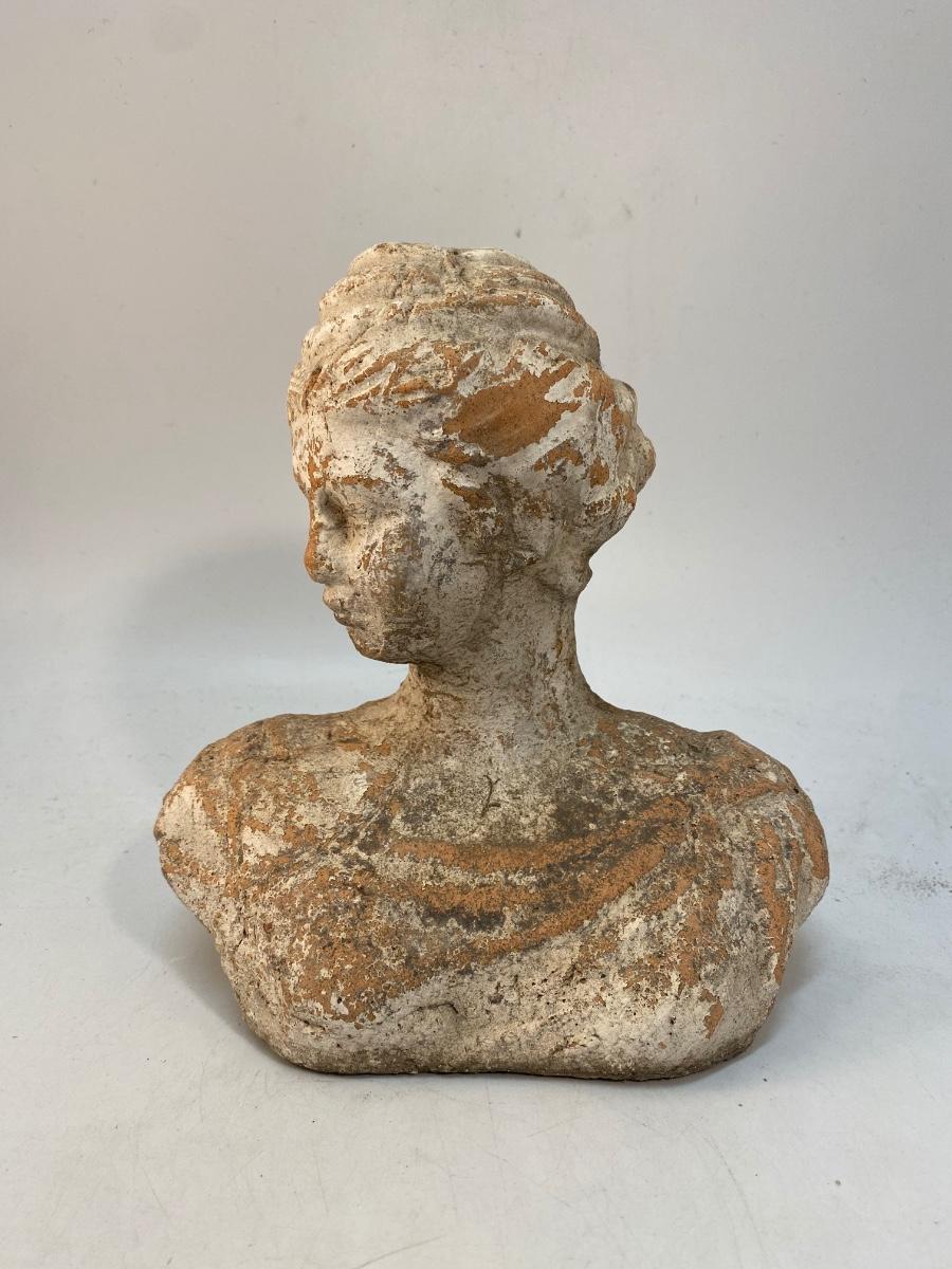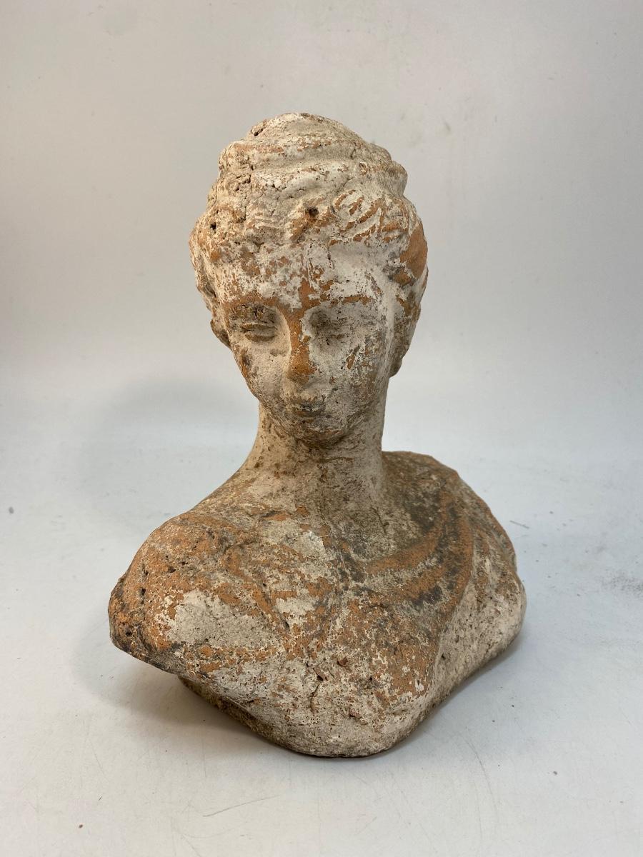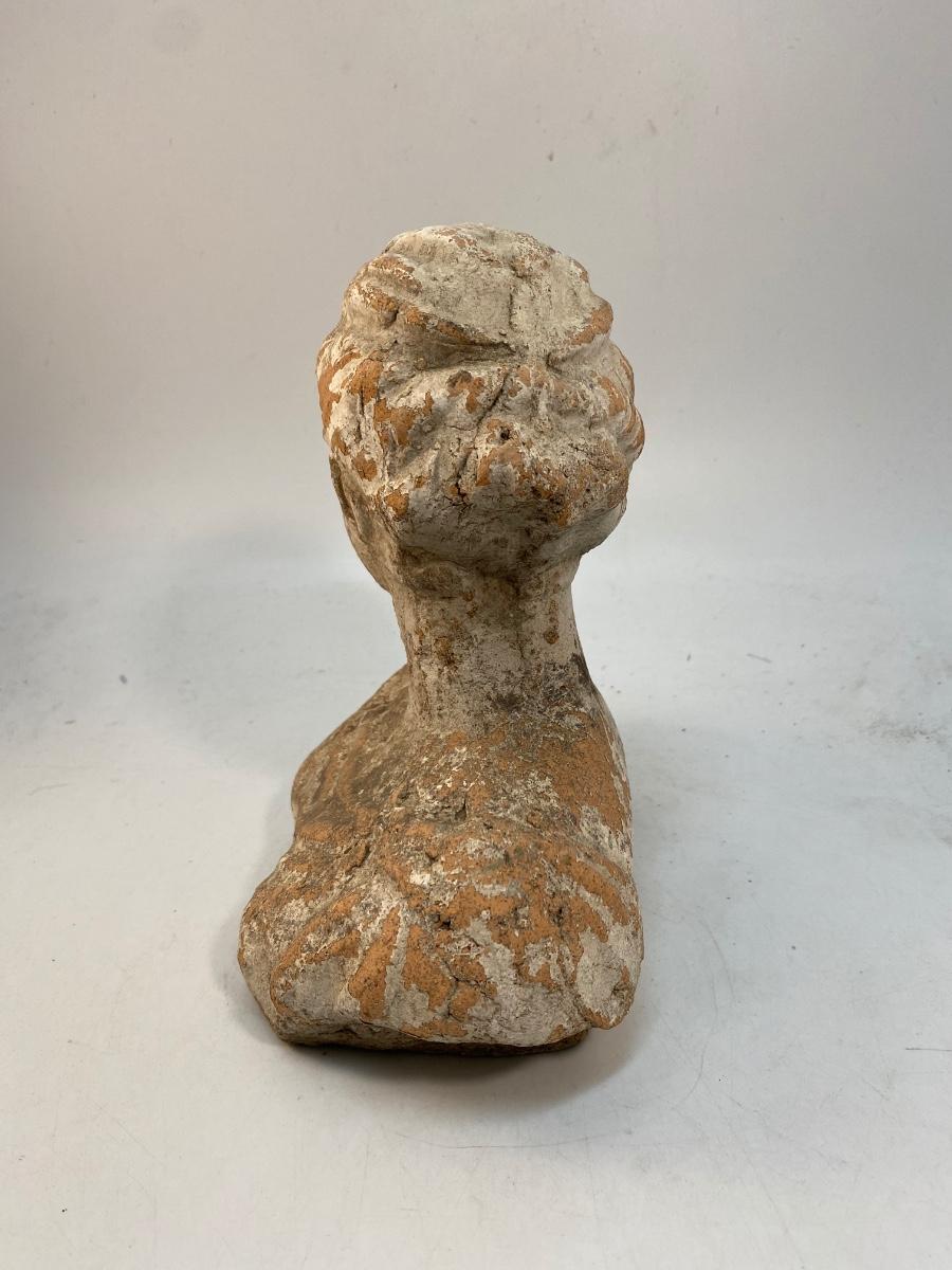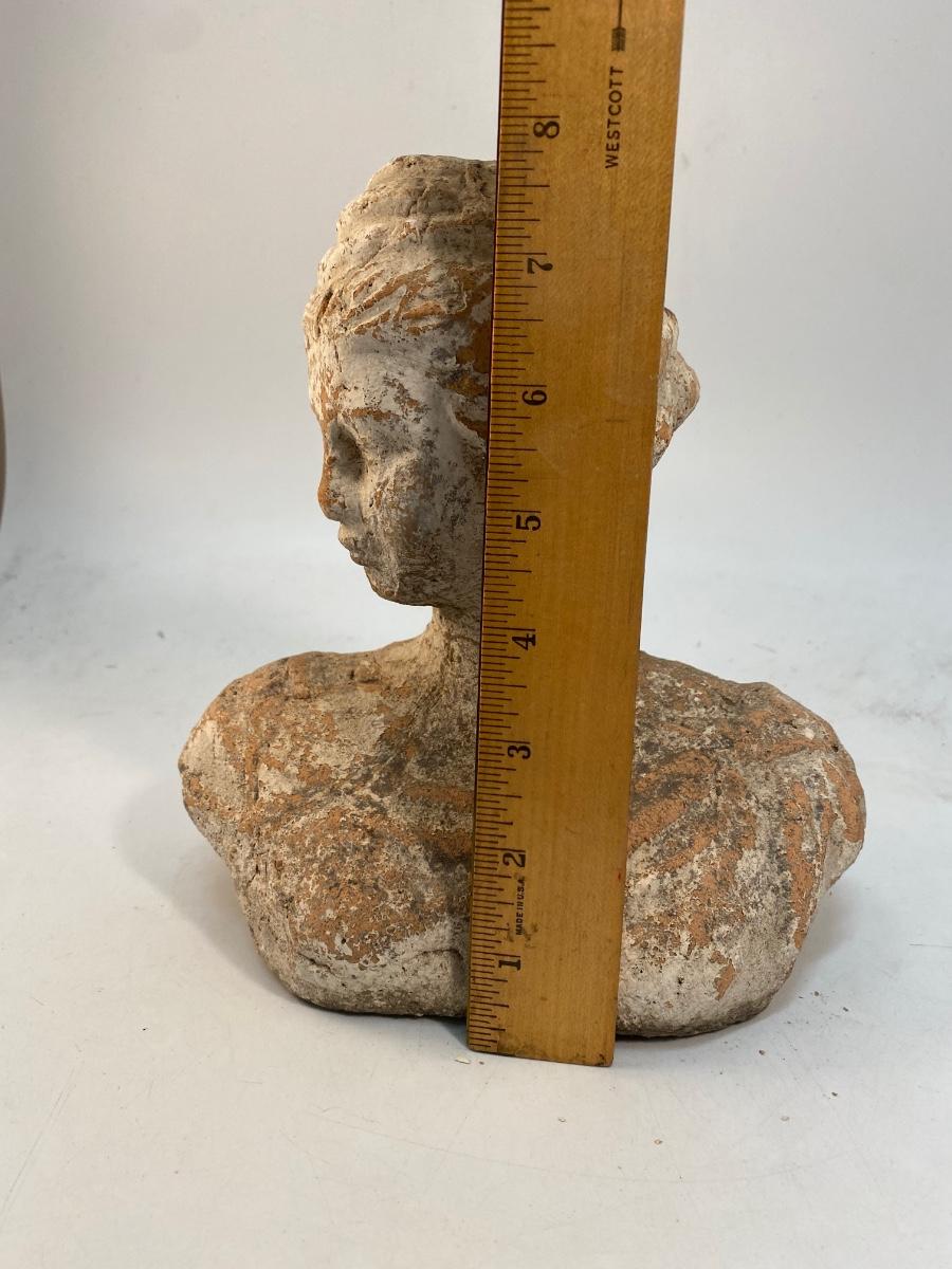 Weathered Painted Clay Terra Cotta Garden Yard Art Bust Statue