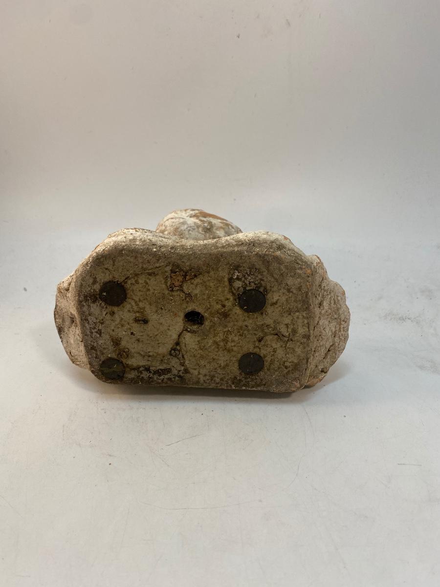 Weathered Painted Clay Terra Cotta Garden Yard Art Bust Statue. In good, weathered condition. About 8" size. Hollow pottery clay. Can be used as inside or outside decor.