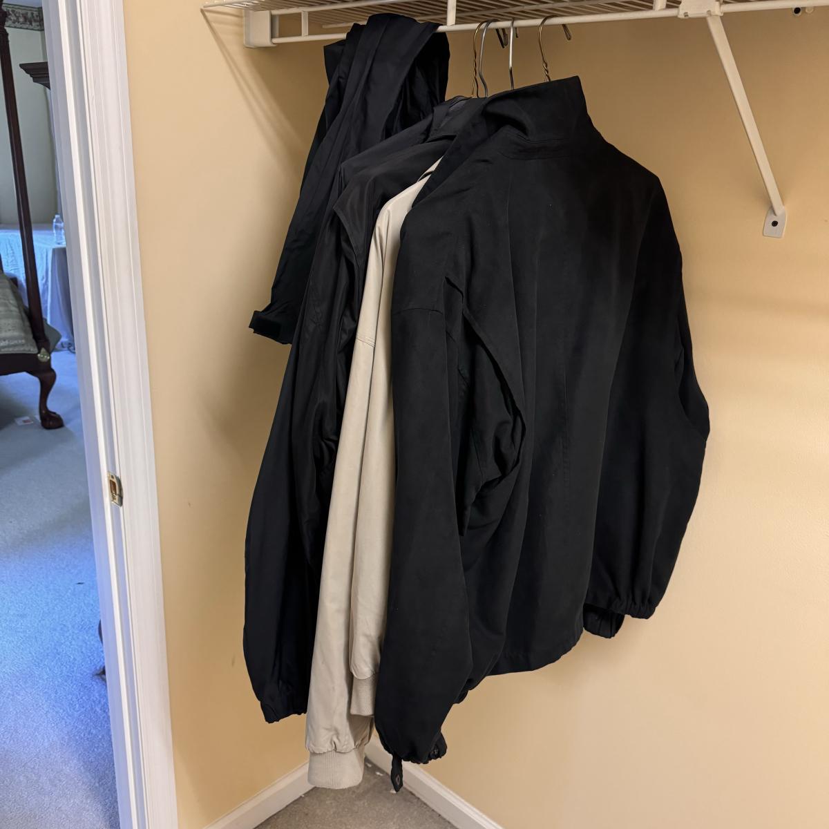 Lot includes two Weatherproof jackets in sizes XL and XXL, one Roundtree & York’s jacket in a size 2XB, one Walter Hagen jacket in a size XL, and one pair of Walter Hagen pants in a size large to match the Walter Hagen jacket. Shipping available.