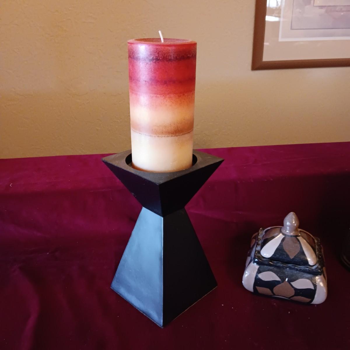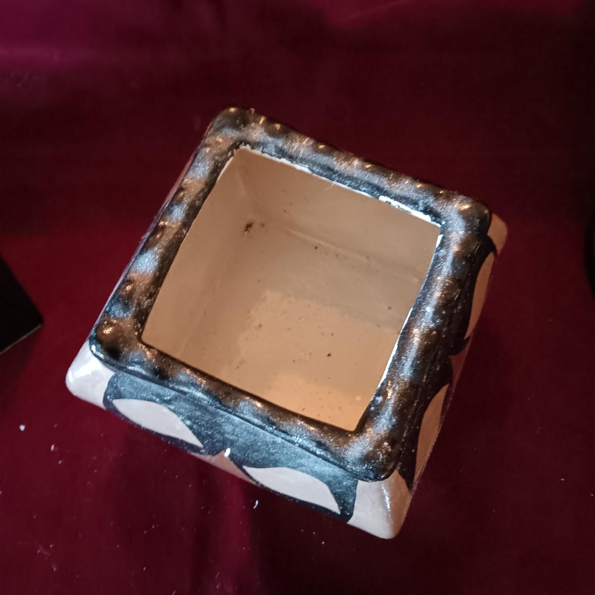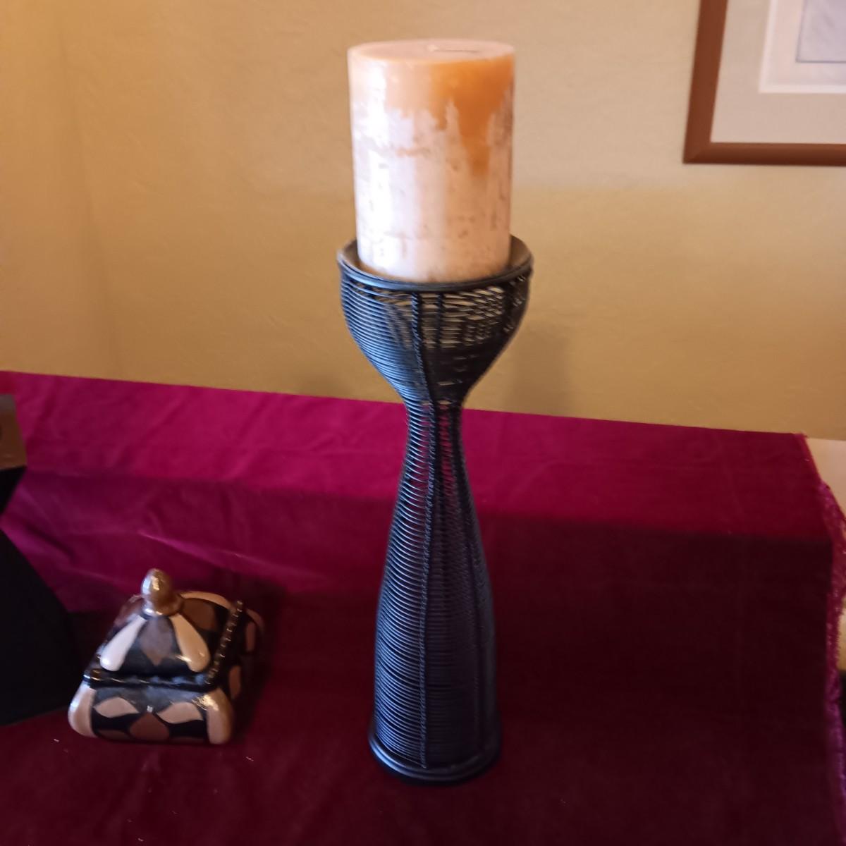 WEAVED METAL AND CERAMIC CANDLE HOLDERS PLUS CLAY TRINKET BOX