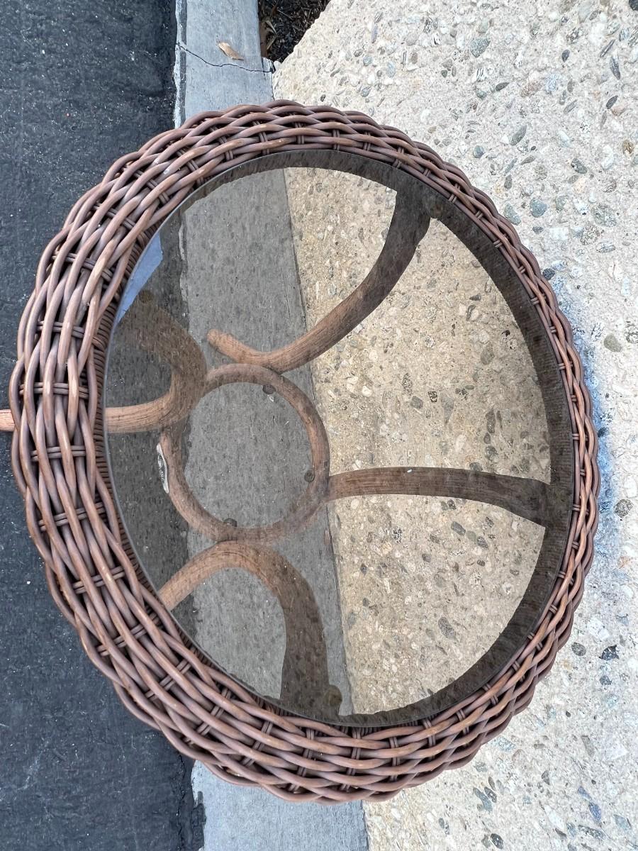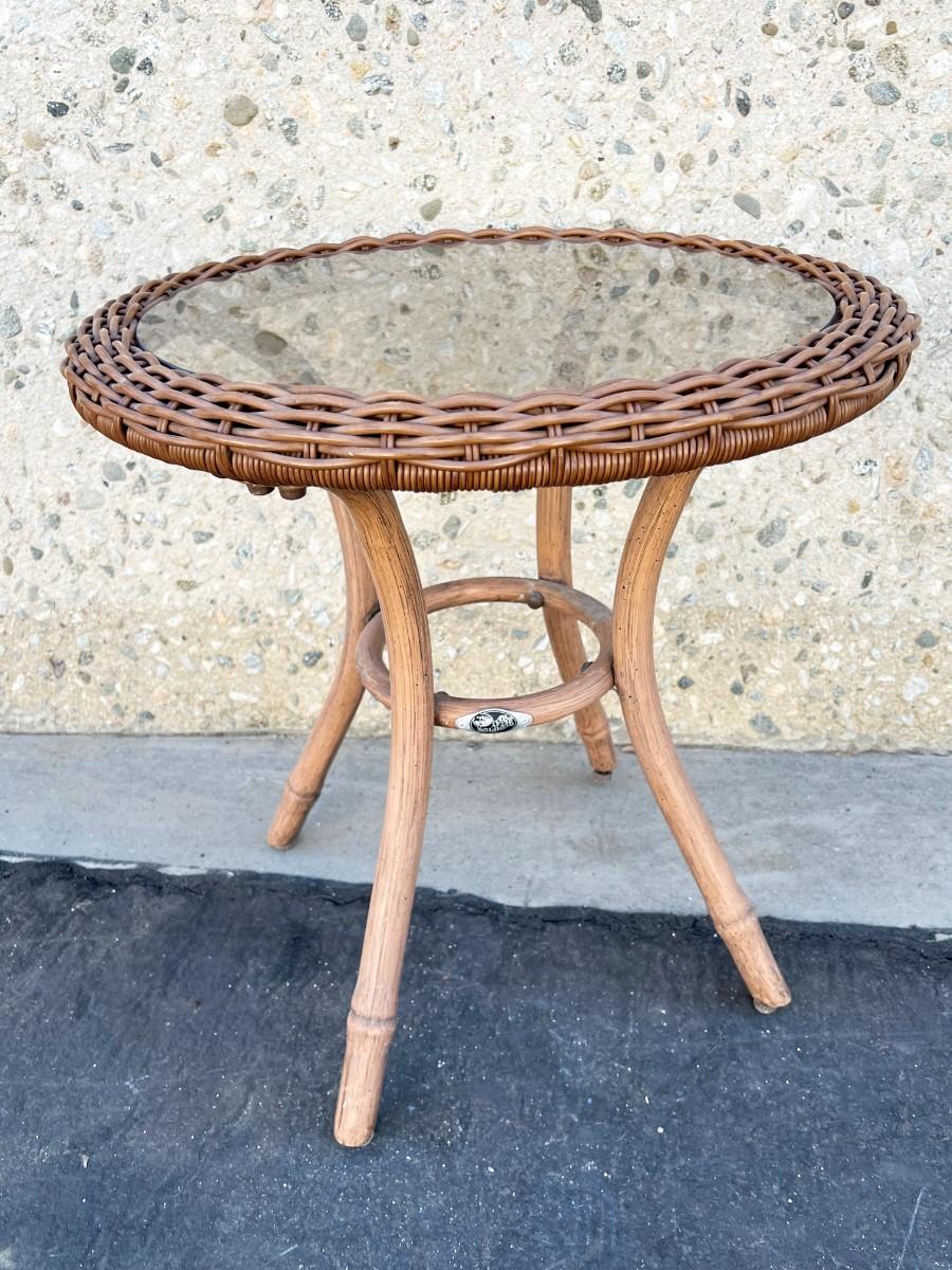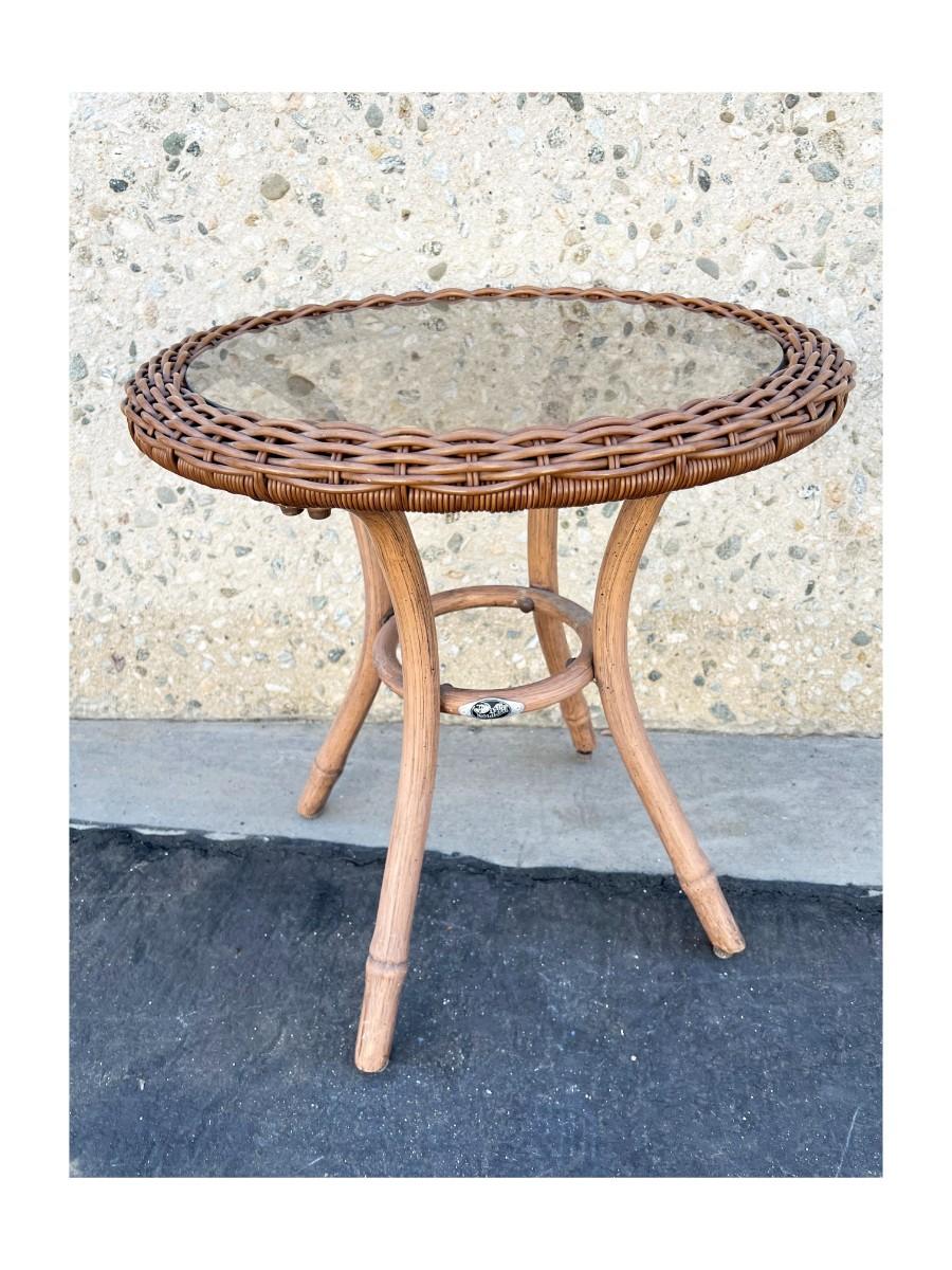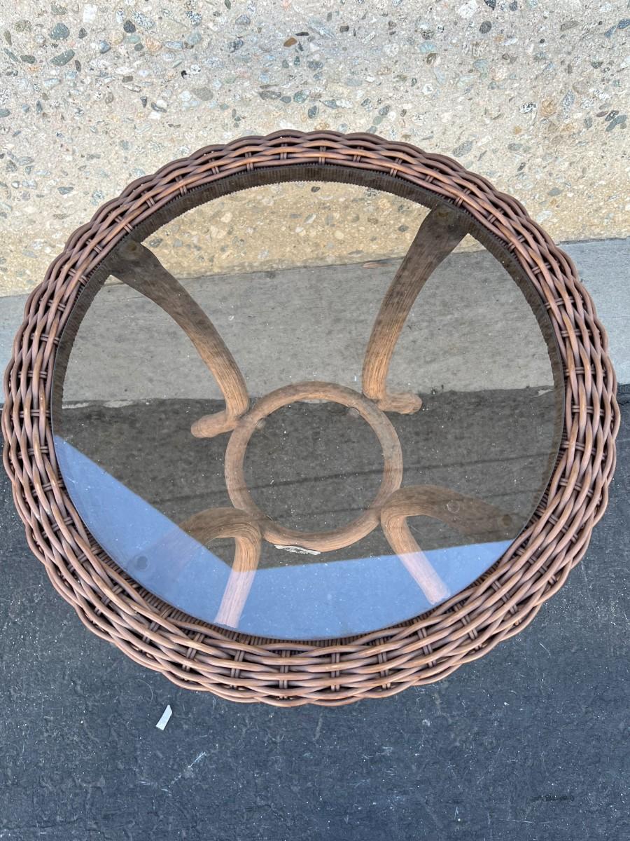 Weaved Round Glass Small Table Top Patio Furniture