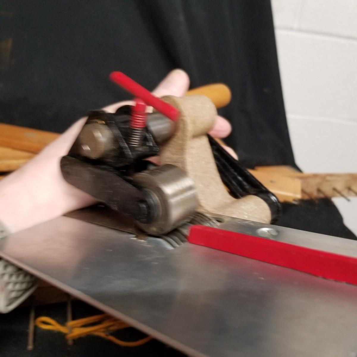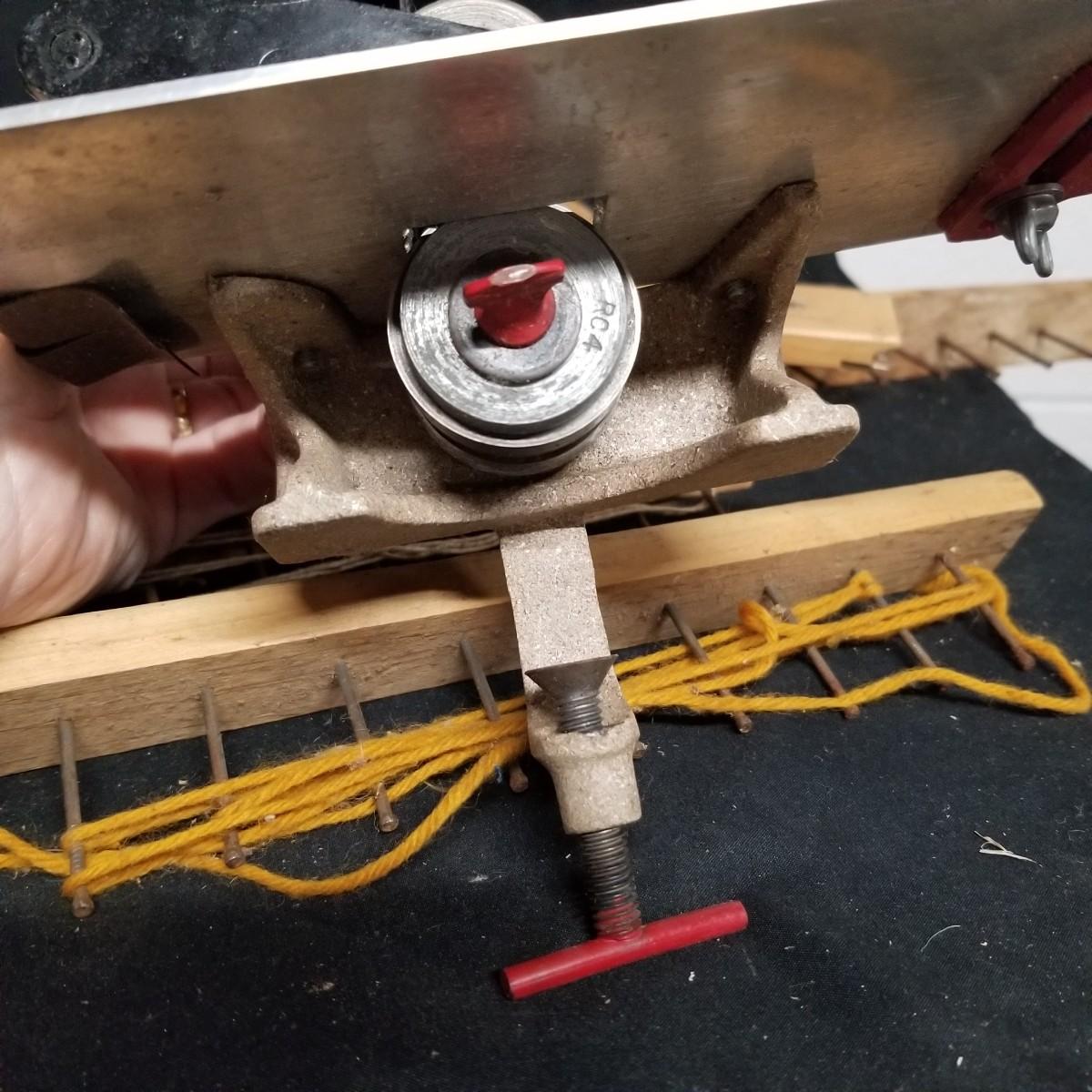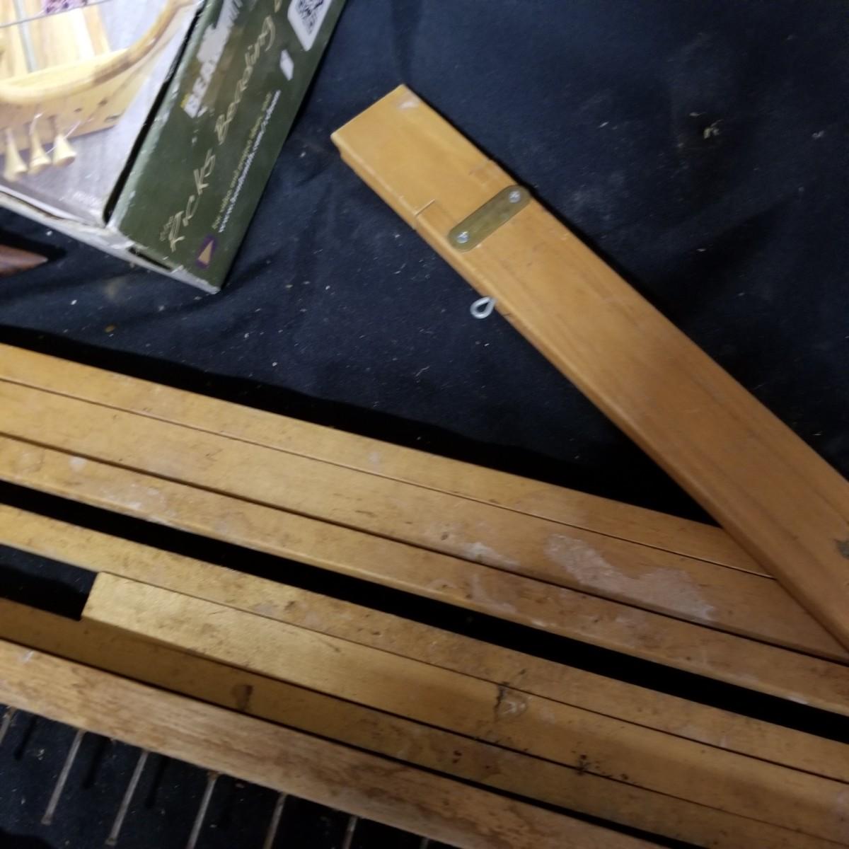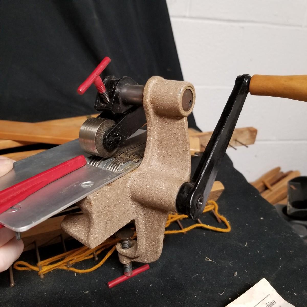 Various items for weaving.   New Rick's beading loom +needles, a Rigby cloth stripping machine, table mount, and several warp stretching items, some handmade and one Glimakra made in Sweden. Also a walnut knitting needle, 14" x1" d.  And #3, #5,and #8 netting or knife shuttles. Shipping available.