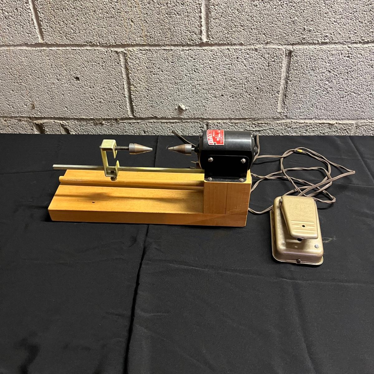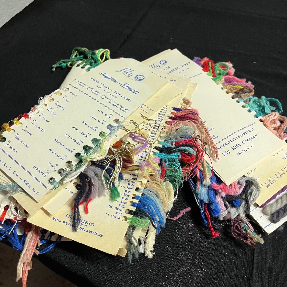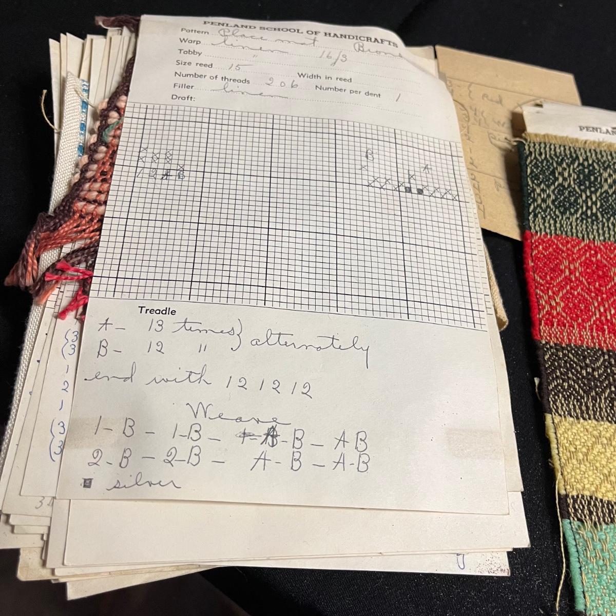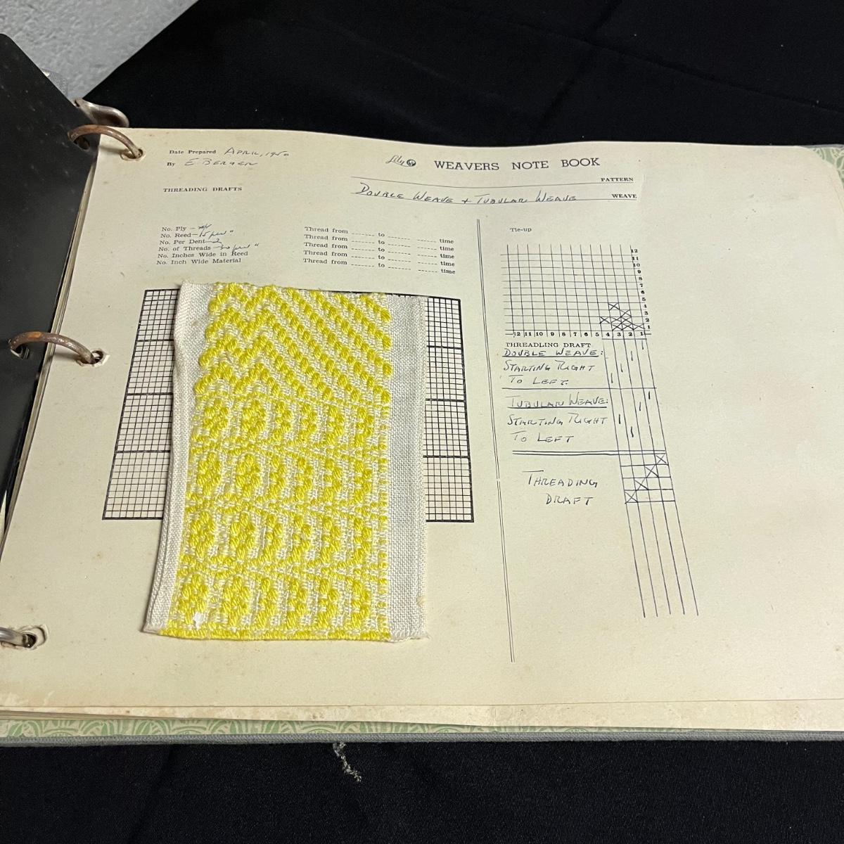 Lot includes a Counter, electric bobbin winder with foot control that worked when tested, A Weavers Notebook, Samples, yarn counter and more.