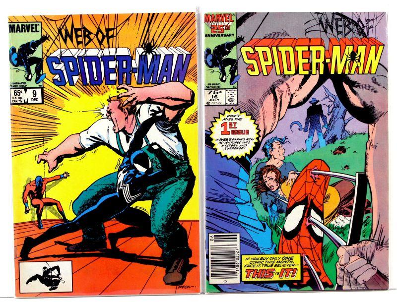 WEB OF SPIDER-MAN #9 #16 Comic Books Set High Grade 1985/86 Marvel Comics