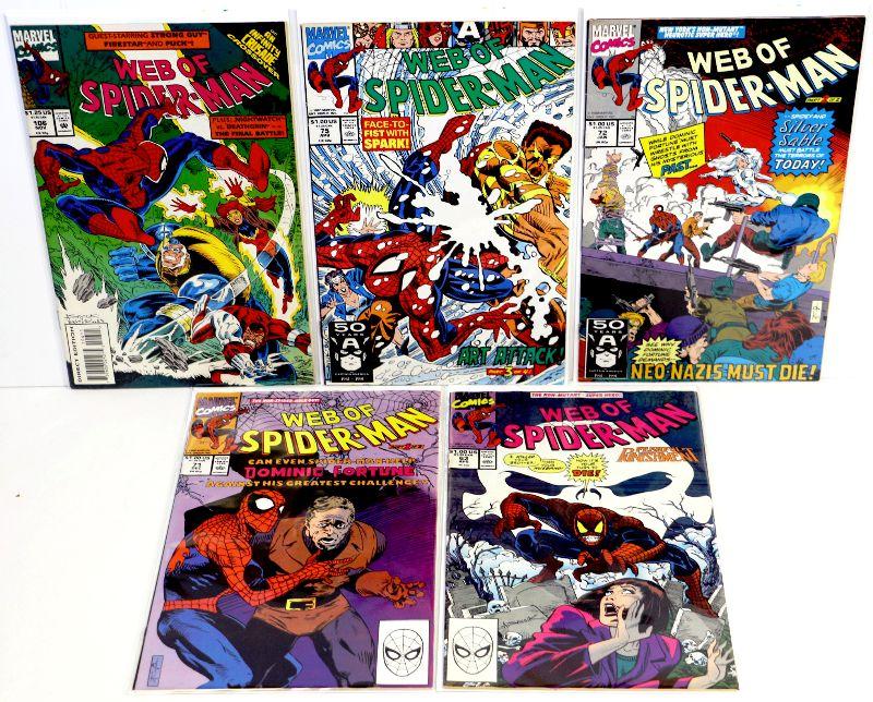 WEB OF SPIDER-MAN #63 #71 #72 #75 #106 Comic Books Set 1990-93 Marvel Comics