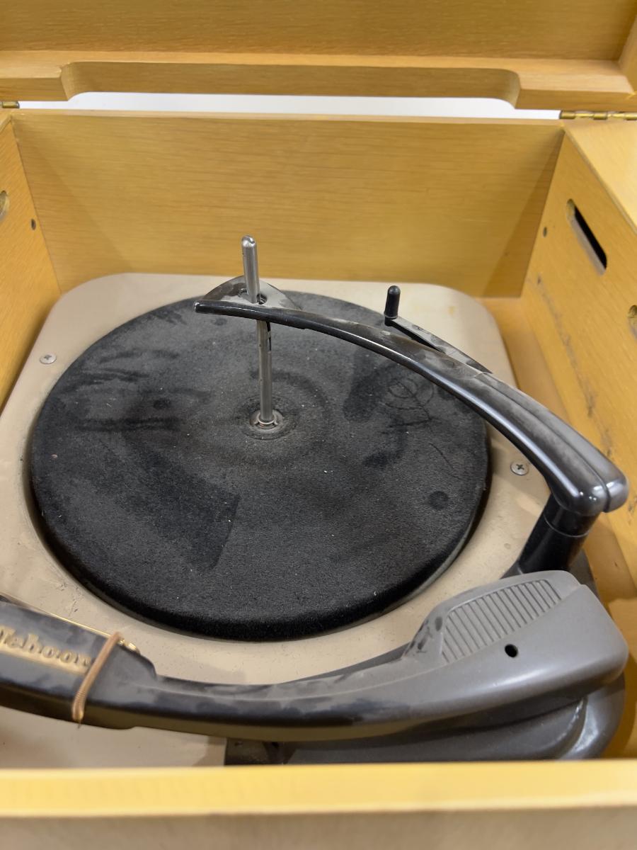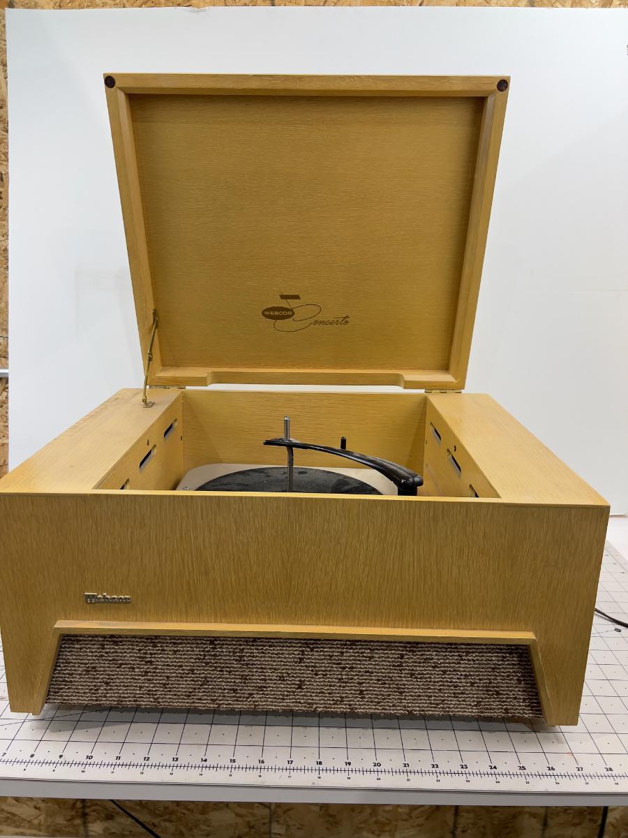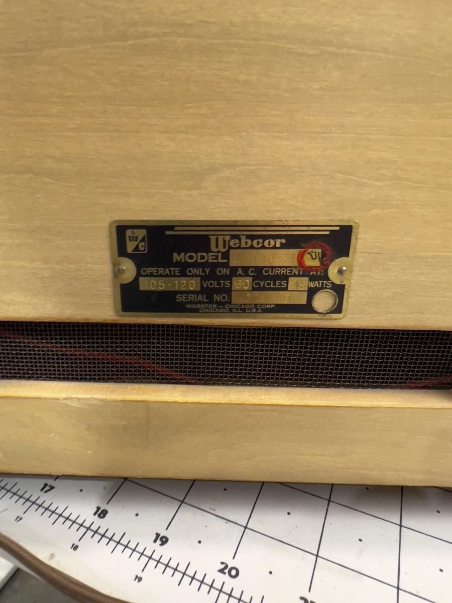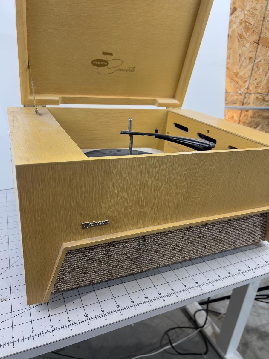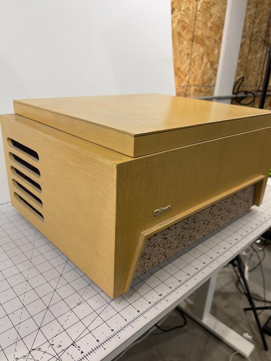 Seems to work. Powers Up The Speaker Hums and Not tested beyond that. Nice Blond Cabinet.