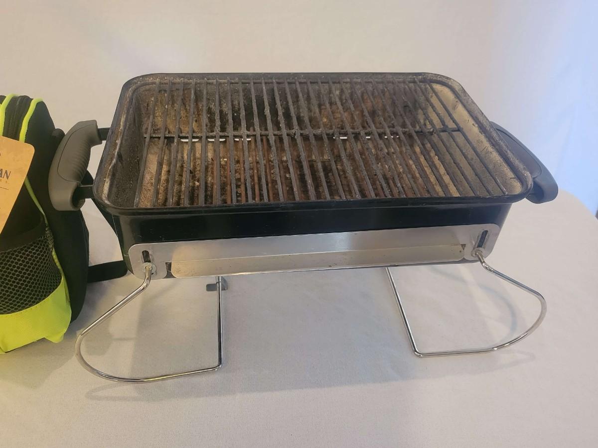 Grill is previously owned and in good used condition, right handle is bent but not broken