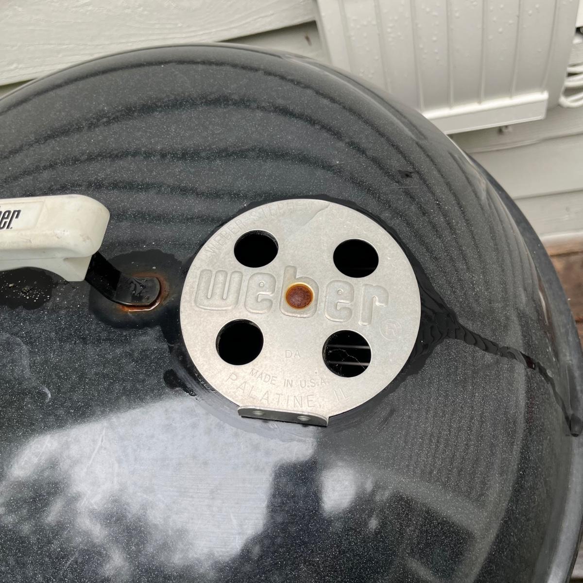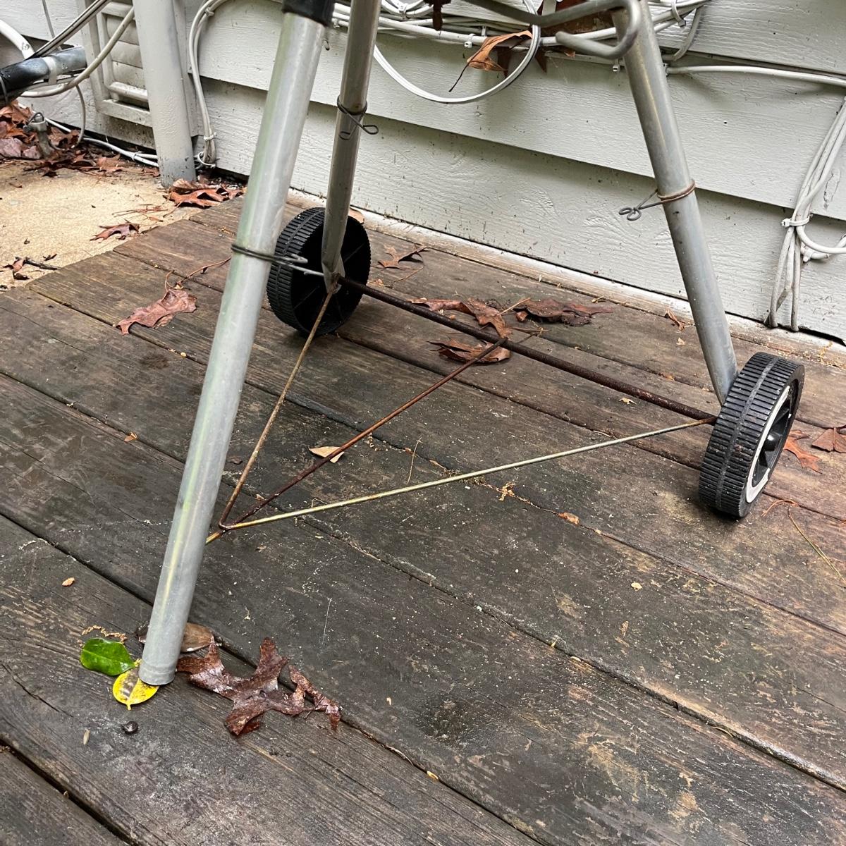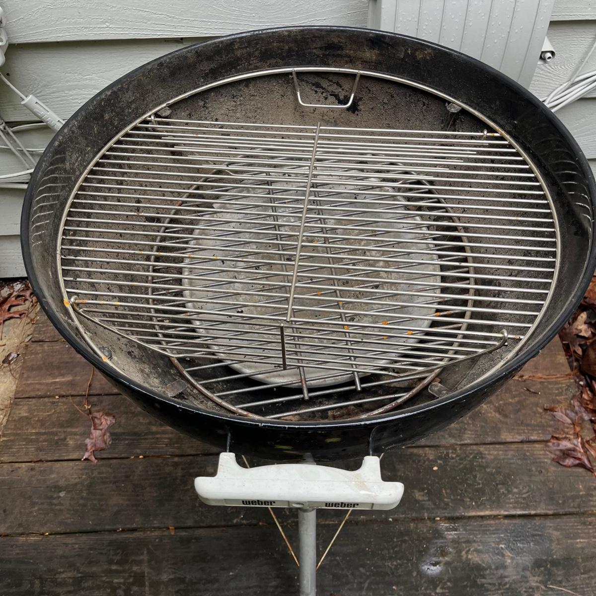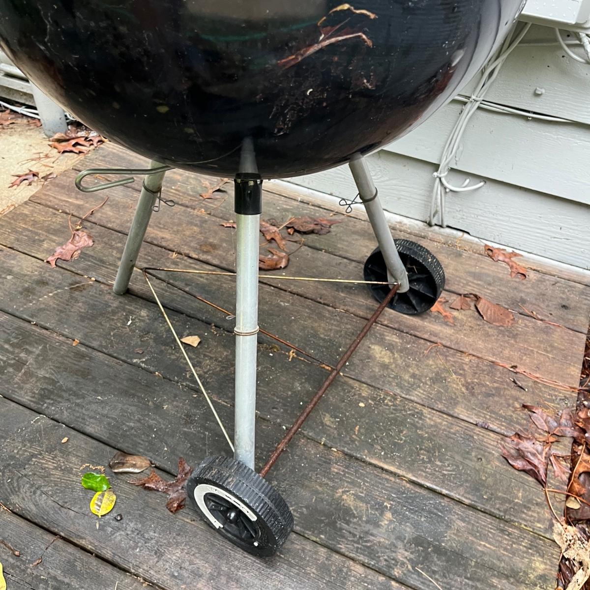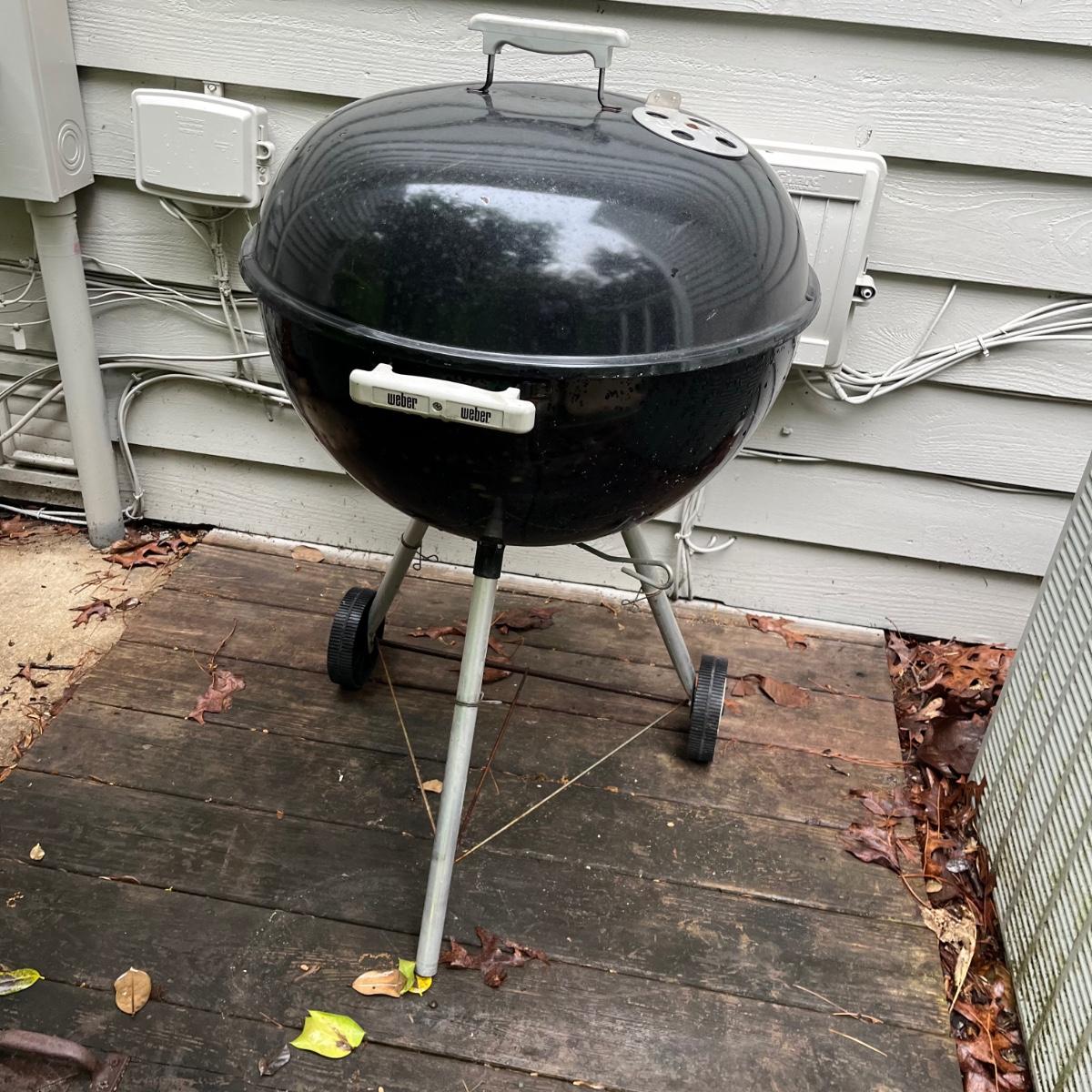 Lot includes a Weber charcoal grill that measures 22.5”D x 39” tall.