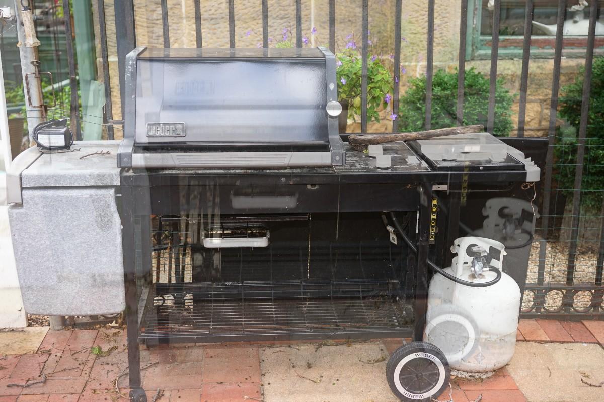 WEBER GAS GRILL COMES WITH TANK, LARGE GRILLING AREA AND SHELF BELOW