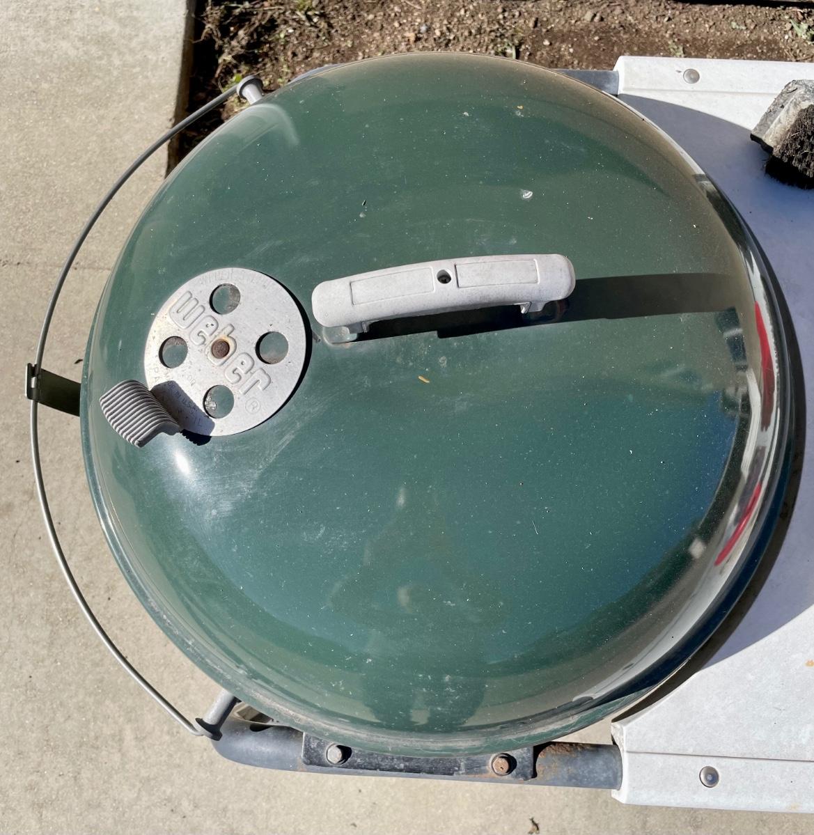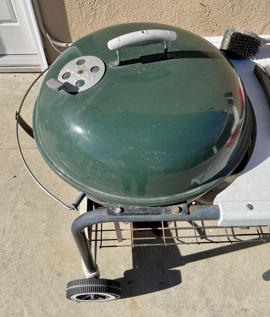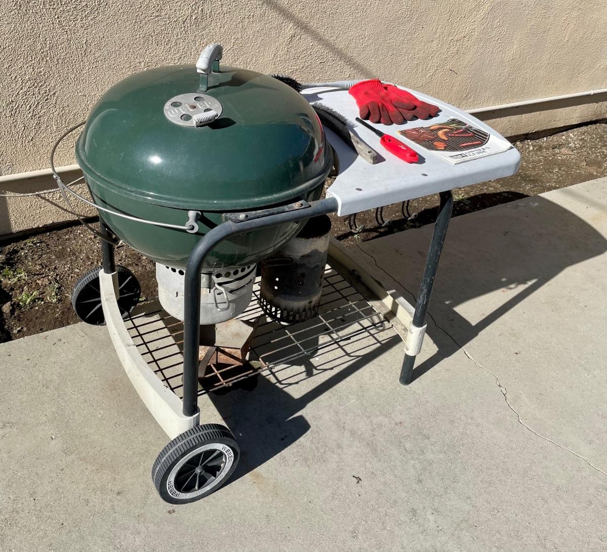 Green Weber Kettle BBQ with Wheeled Cart