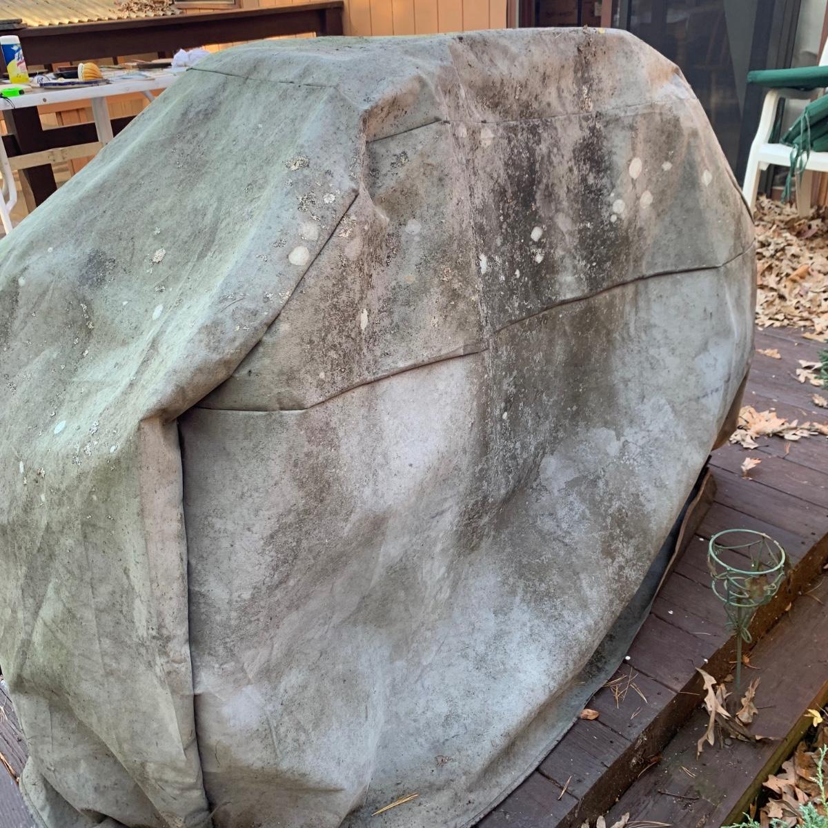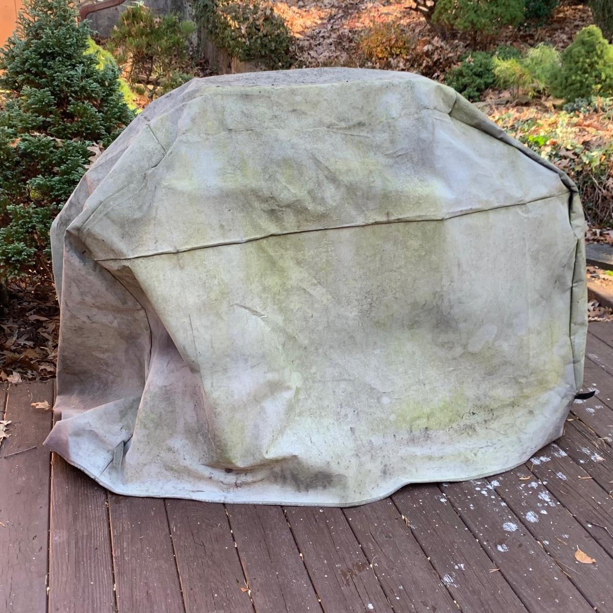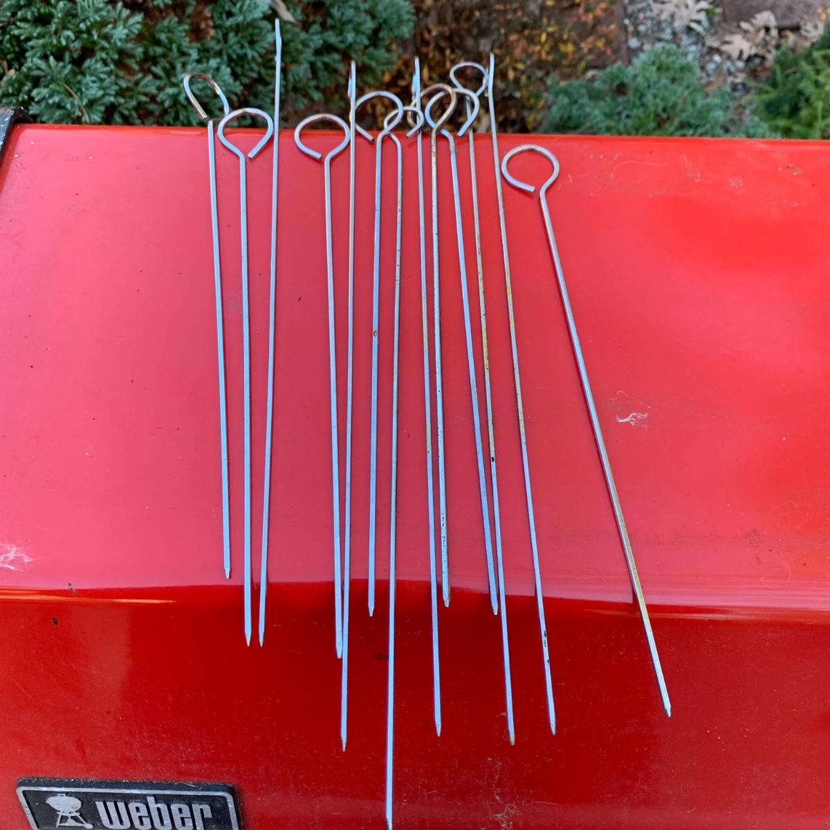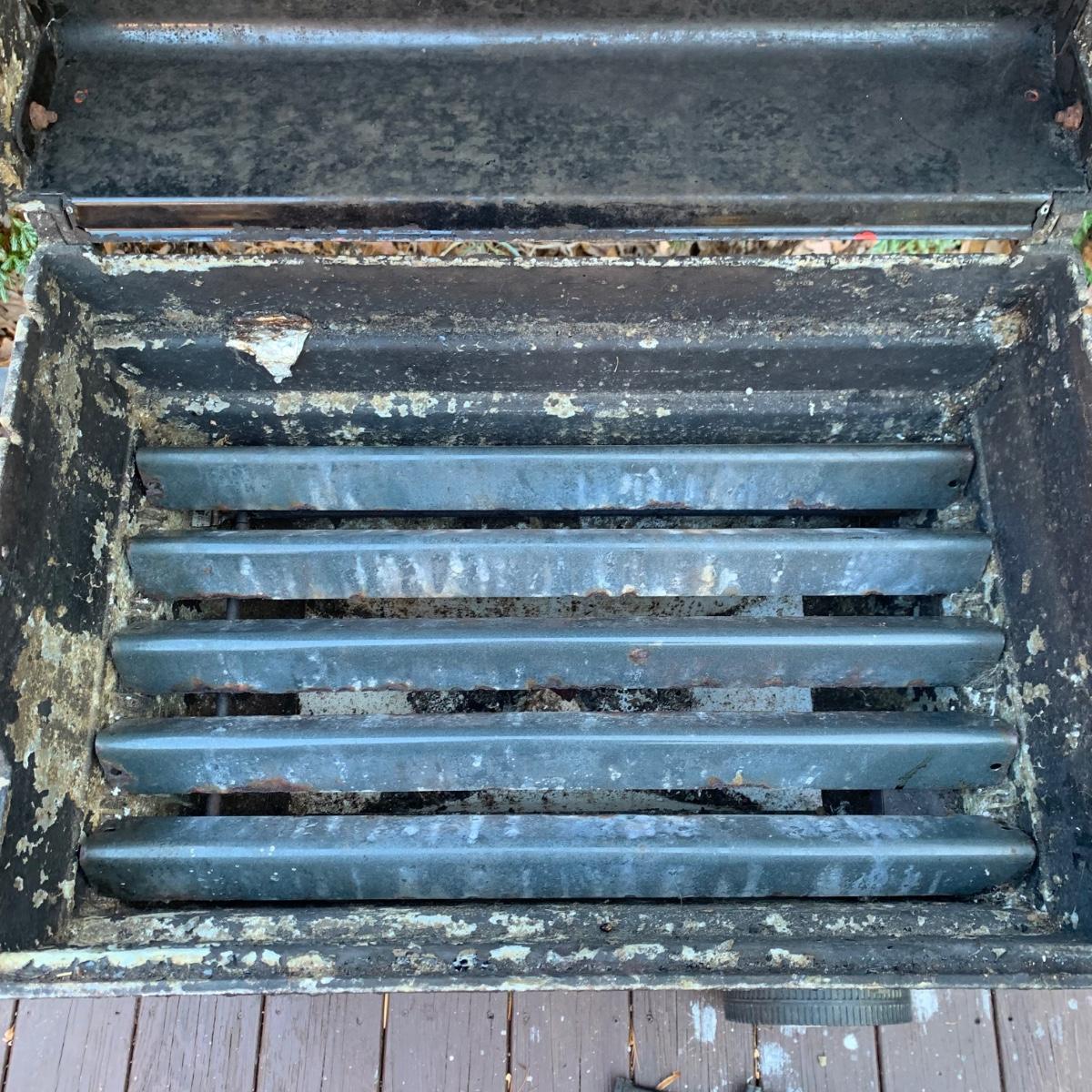Weber grill with cover, 14 metal skewers, and a Cuisinart 12” Non-Stick Grilling Skillet that is new in its box. Weber grill is propane fueled. It has a red enamel lid. Grill measures approximately 46” x 22” x 40”H. There is a bit of rust throughout and the inside will require a deep cleaning. The cover is very dirty. There is a propane tank attached but its contents are not guaranteed. Unable to test grill; please come to preview to test functionality.