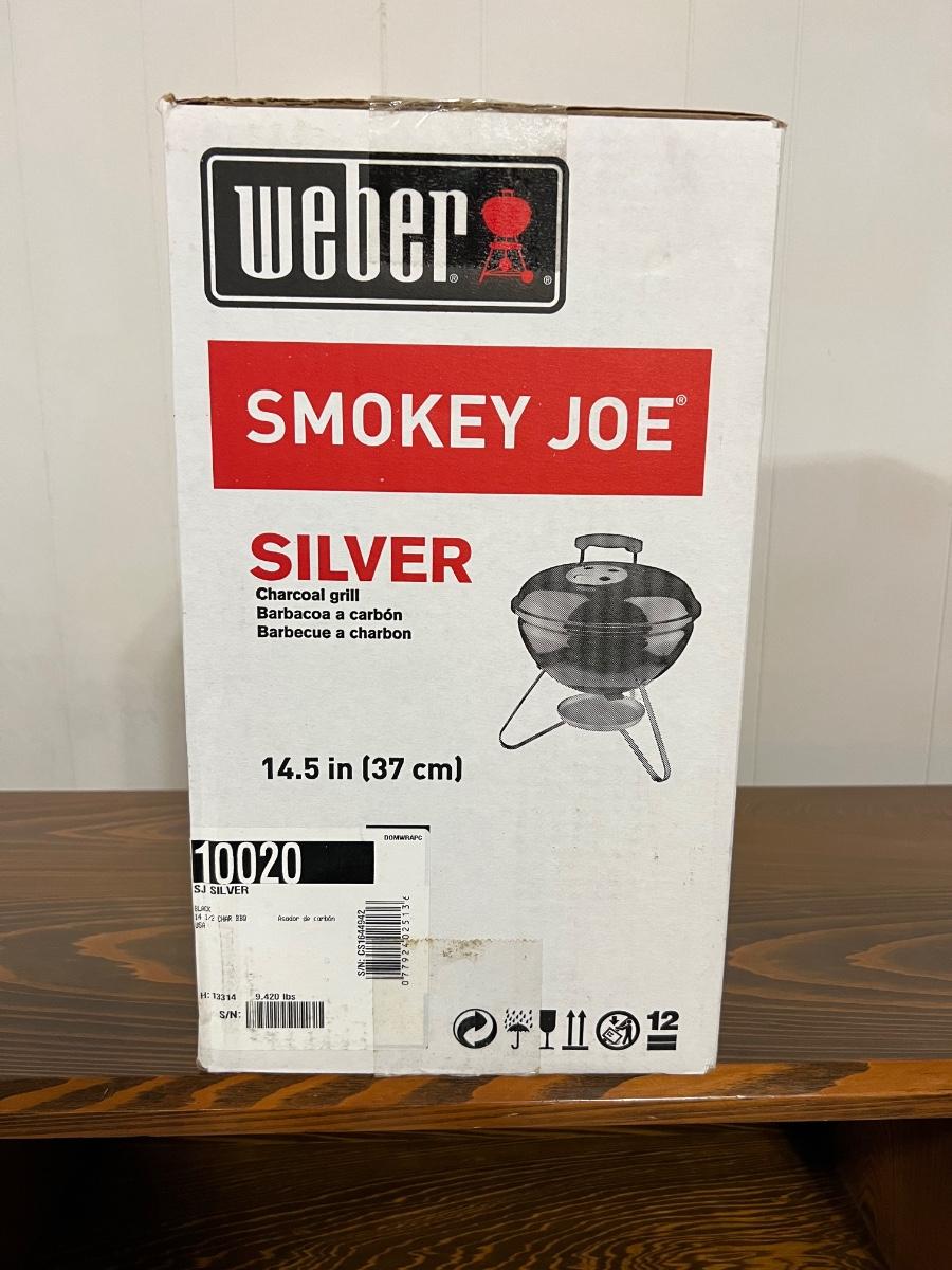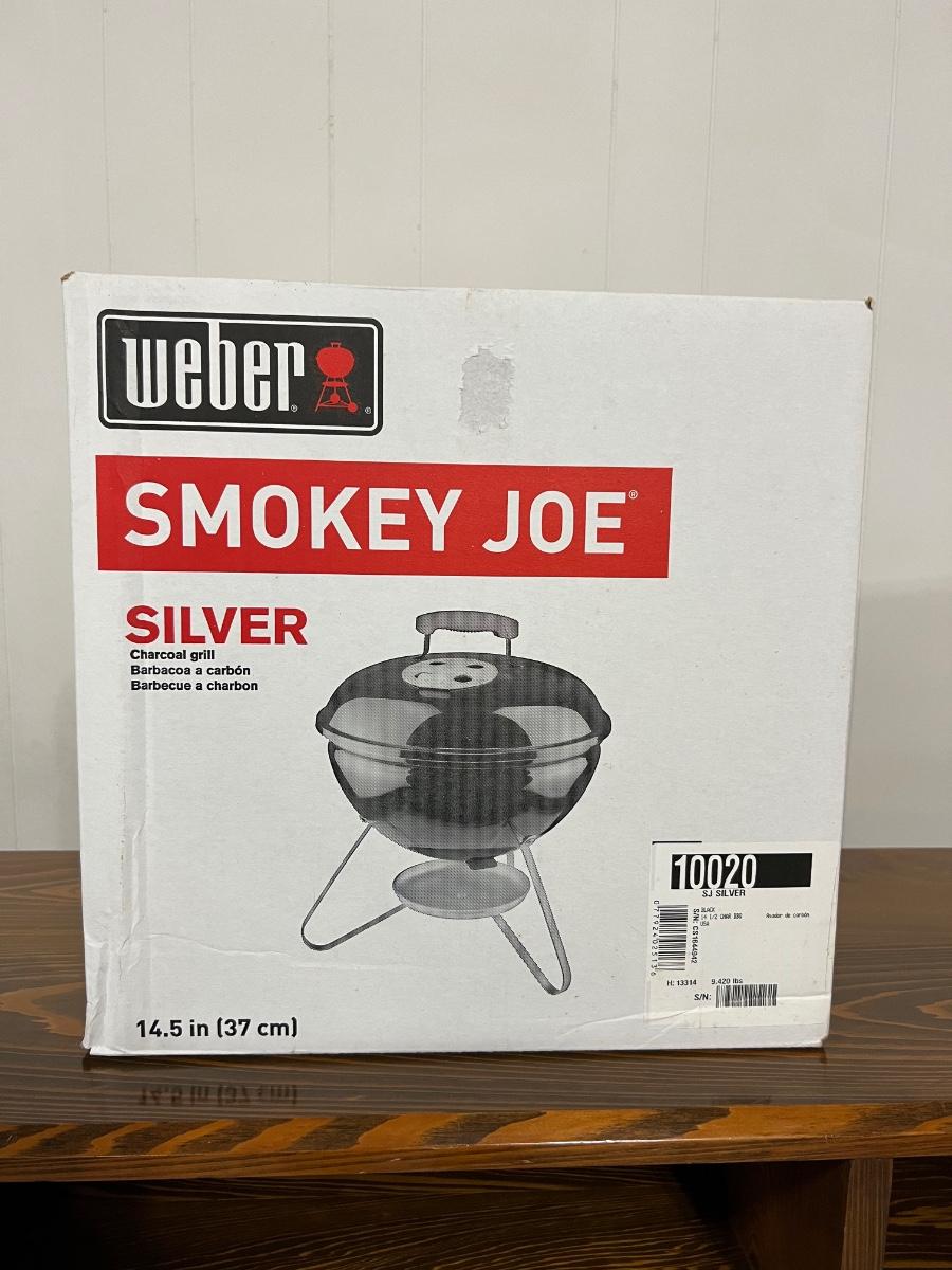 WEBER SMOKEY JOE GRILL Silver, 14.5 inch charcoal grill. Sealed in box.