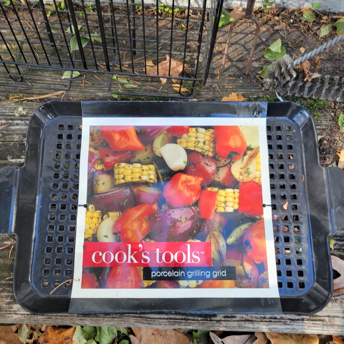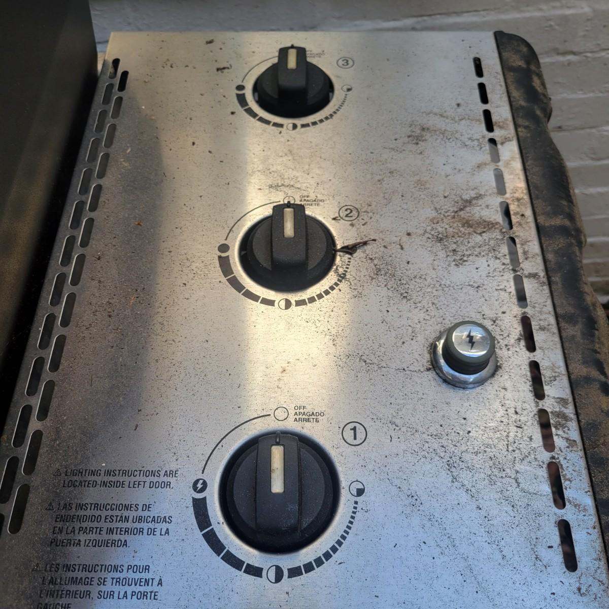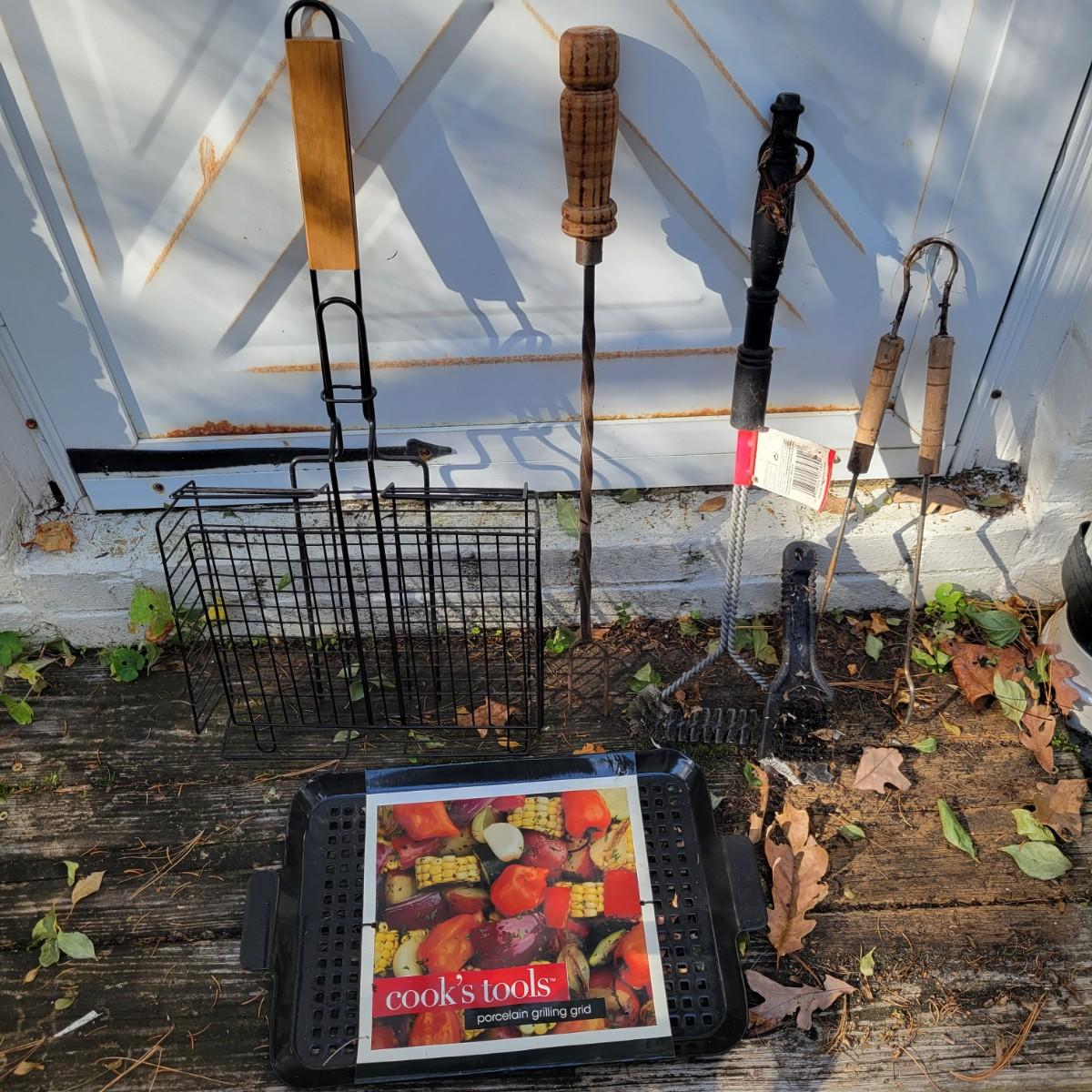 A Weber Spirit three burner grill that was not tested. It appears that the flavor guards and grill surface were replaced recently. It measures approximately 52" x 24" x 45.5"H. Also included is an assortment of accessories that includes a porcelain grilling grid, vegetable basket and more. The grill is missing a front panel that goes above the doors. Local pickup only. Winning bidder must bring assistance to help move and load this item due to its weight and/or size.