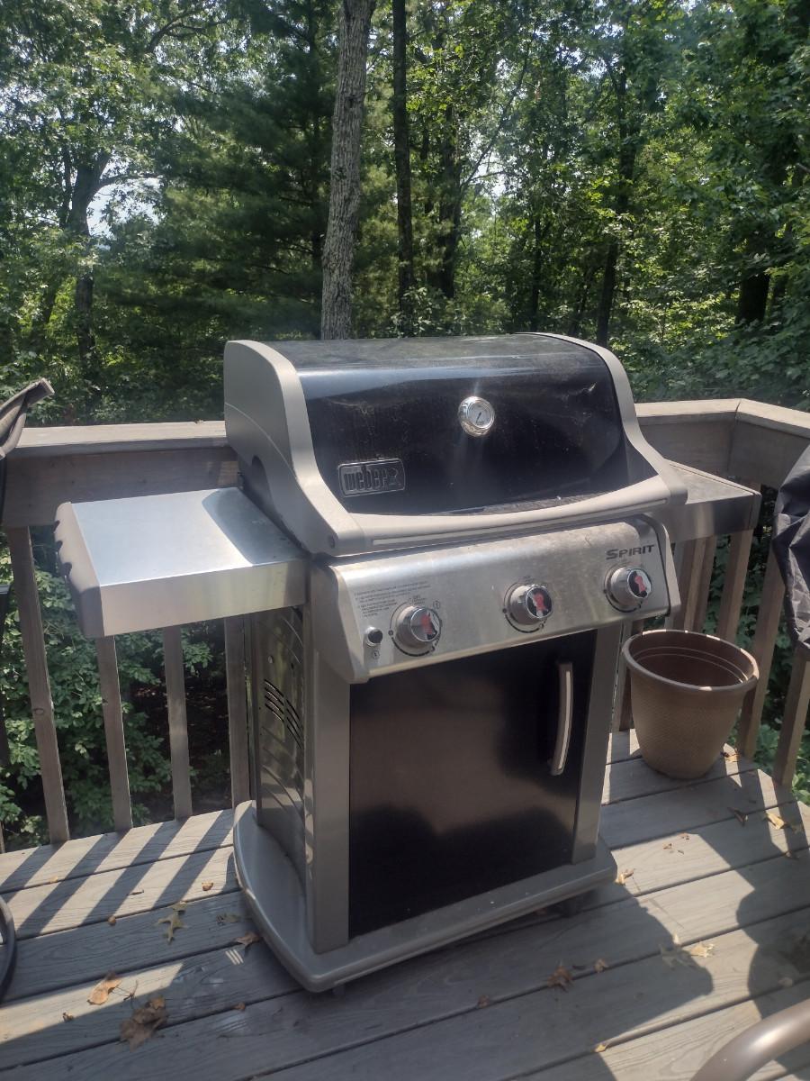 Weber Three Burner 'Spirit' Grill with Cover. Item is in used condition.