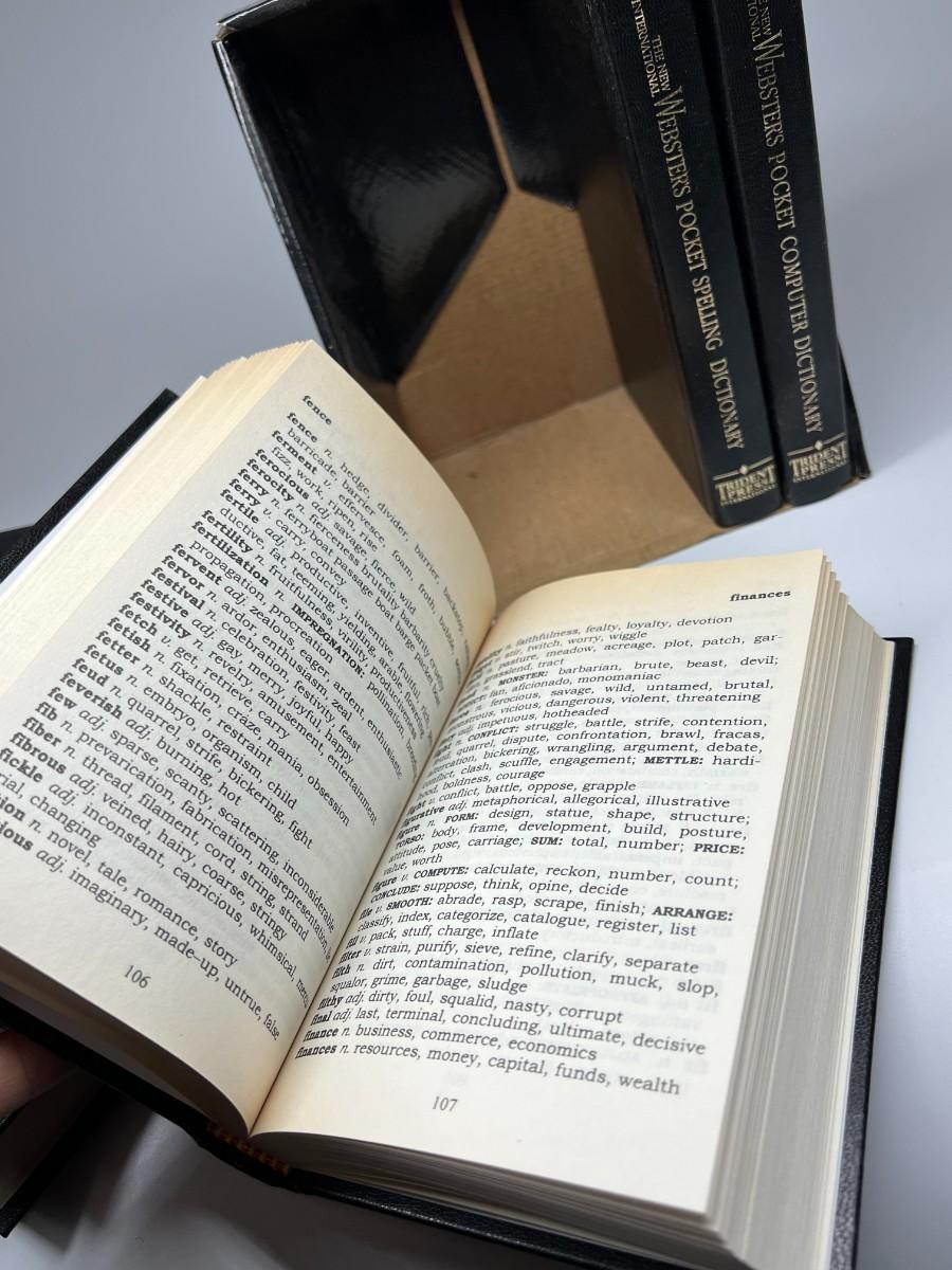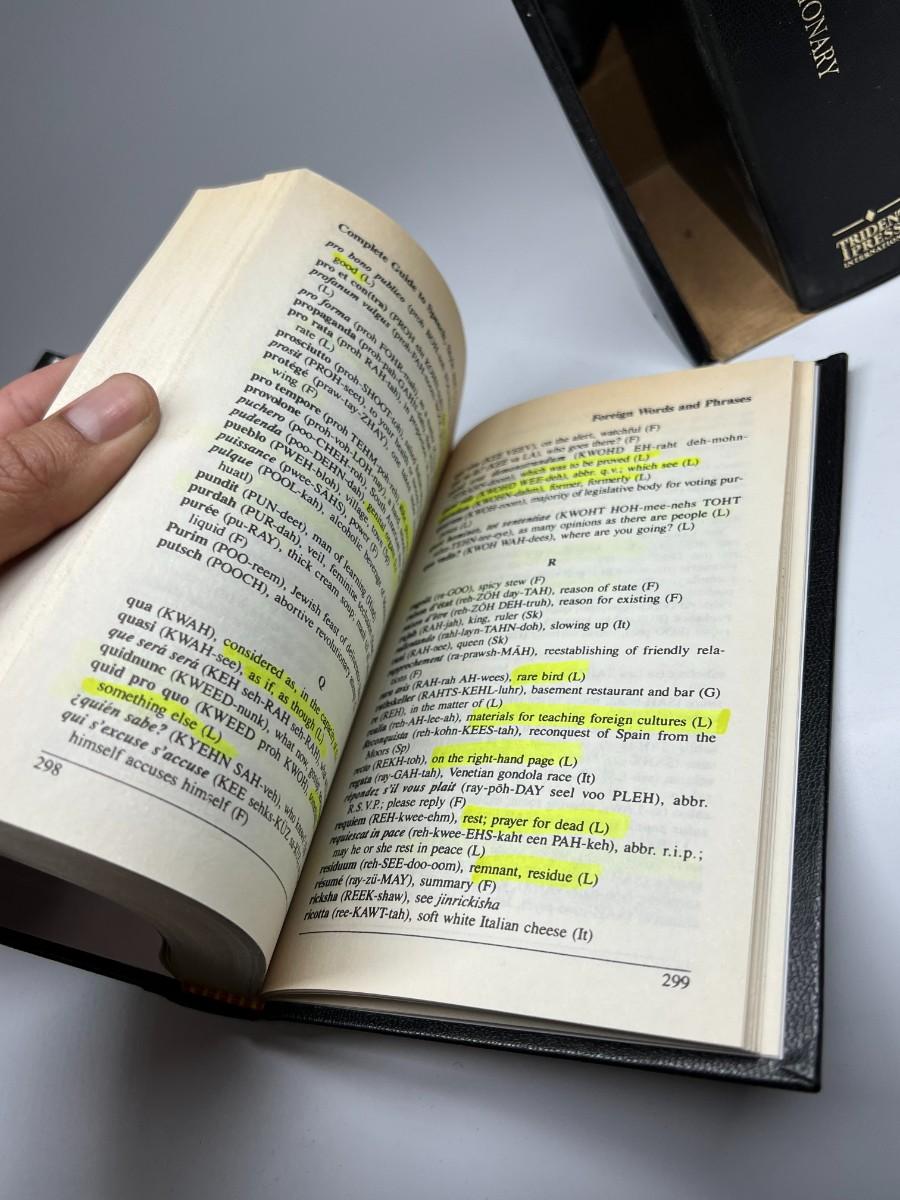 There is some highlighting on the first couple of pages in the grammar dictionary, but there is no significant damage or writing in the other books and is in overall good condition. Check pictures for more details and for sizing.