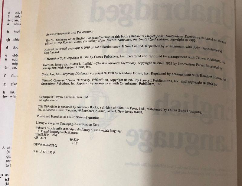 Very good condition on this copy of Webster's Encyclopedic Unabridged Dictionary of the English Language...the familiar reference book...