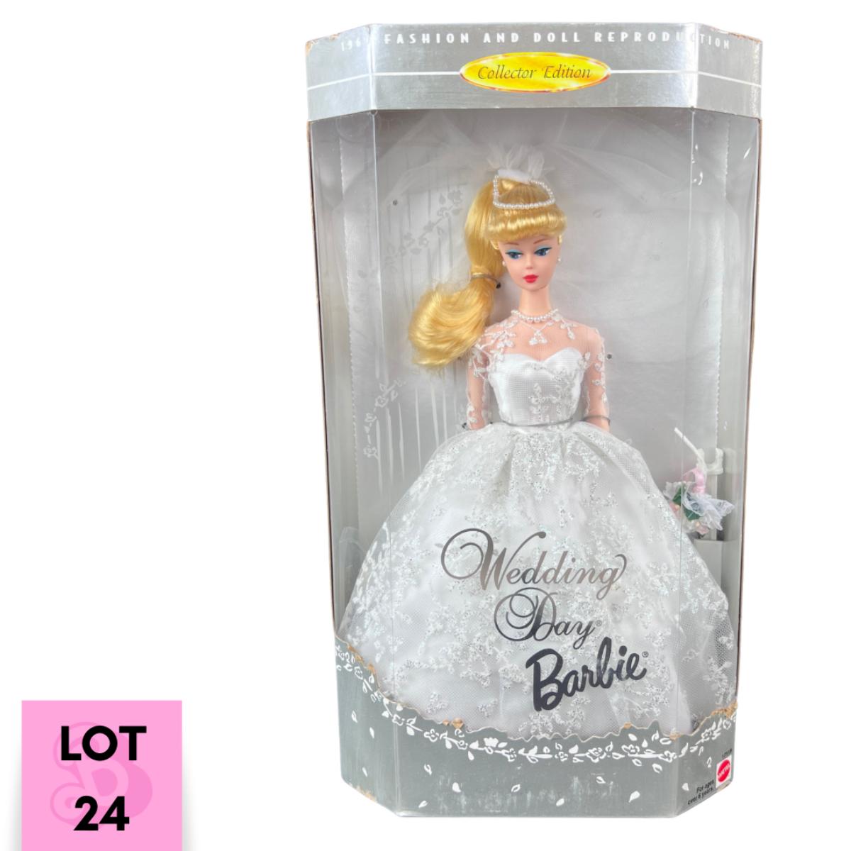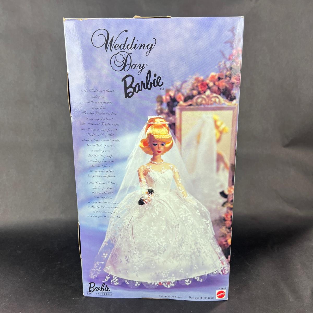 A fun throw-back style Wedding Day Barbie! This doll was produced in 1996 by Mattel. This doll has not been out of its box. **|** Please see photos for details and condition. ::: Shipping is available on this lot. If you require shipping you must let us know at the close of the auction. We will coordinate with you after the item has been won. Shipping fees will include insurance up to or exceeding the value of all items being mailed. If you have any questions regarding this lot please contact the auctioneer either via this website, by direct email or by phone. PICK UP TIMES and other important information can be found in the TERMS and DESCRIPTION of the auction. Please take a look for pertinent information. Thanks!