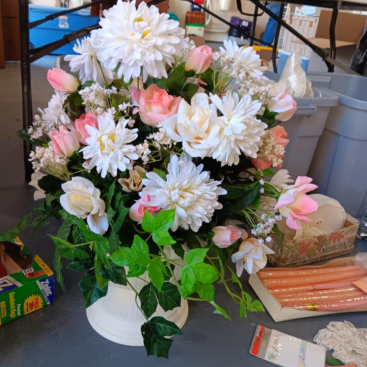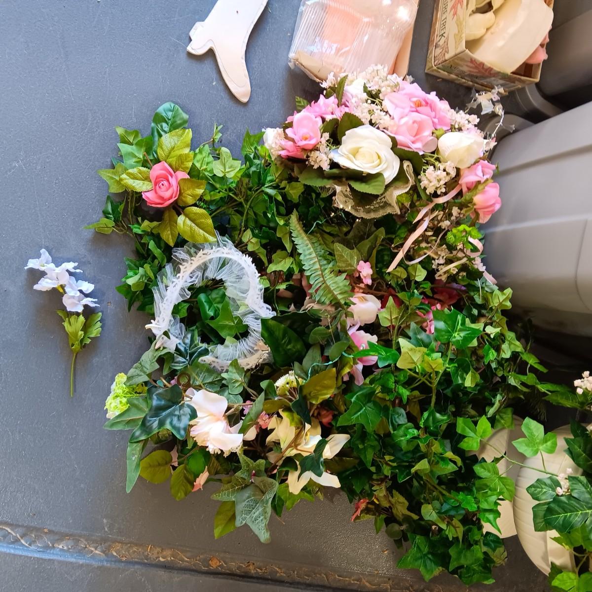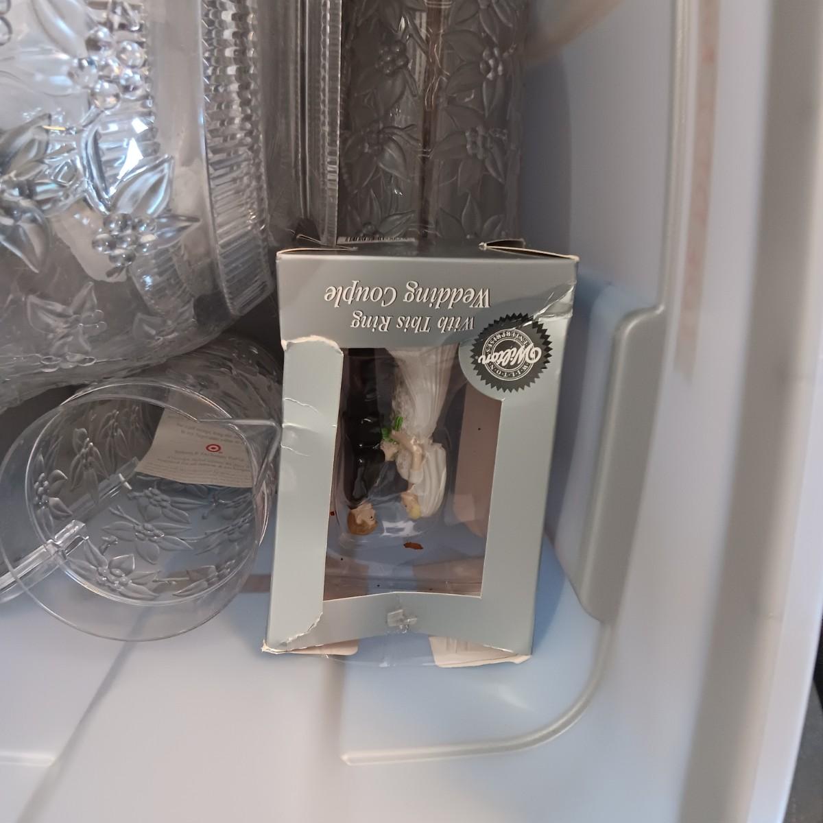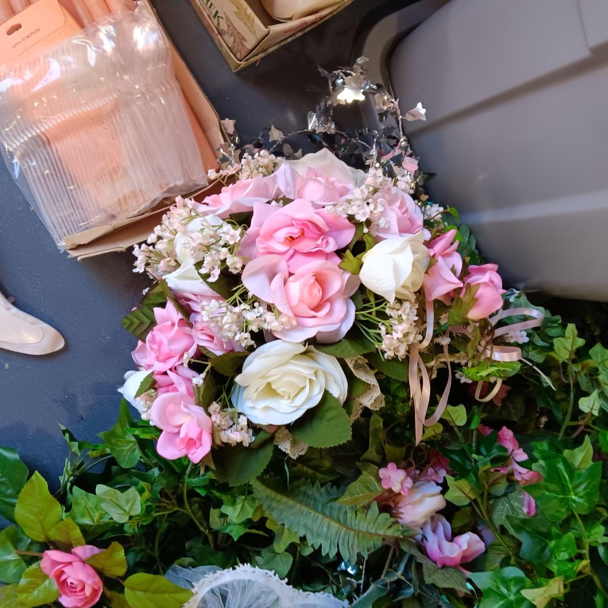WEDDING DECORATIONS AND 3 STORAGE CONTAINERS