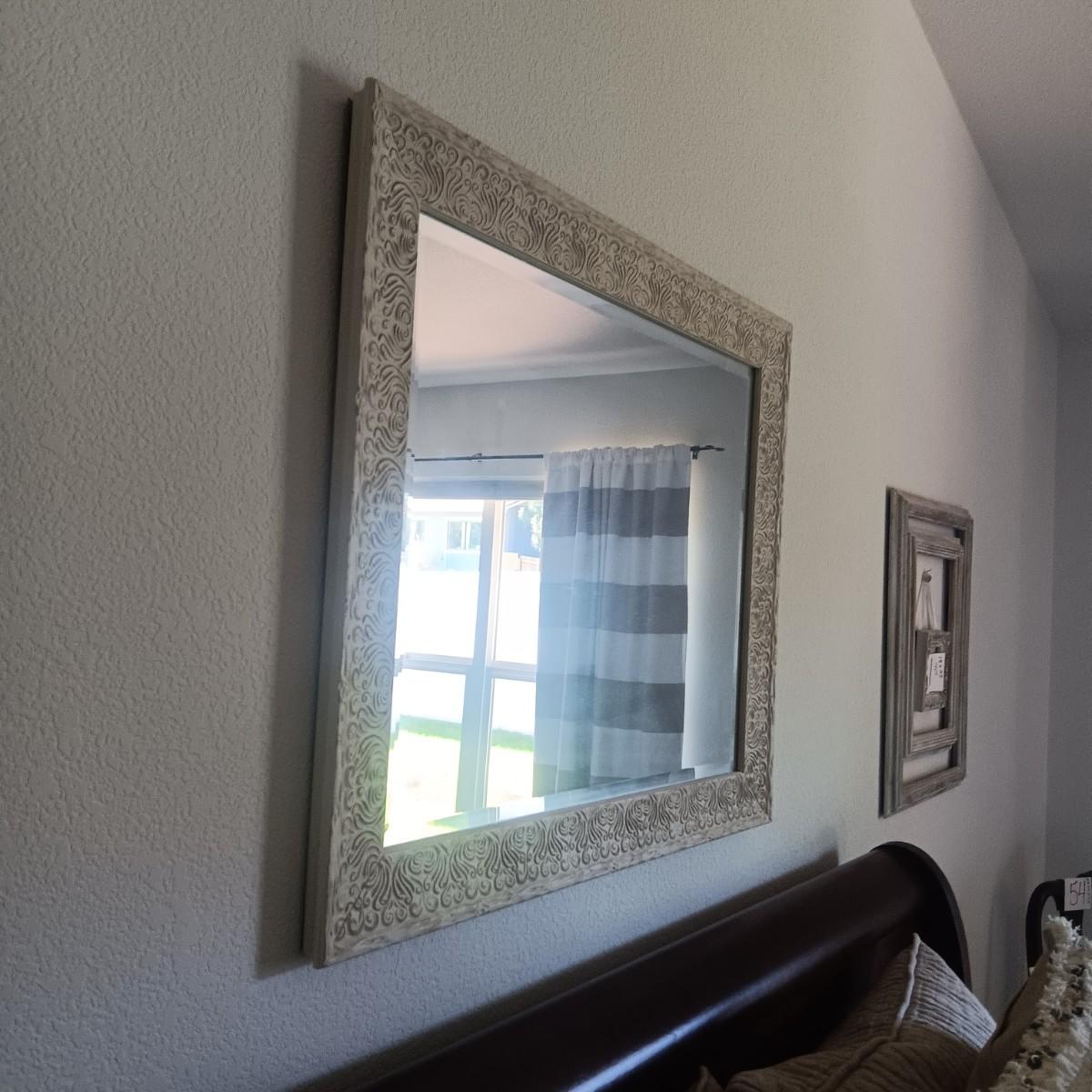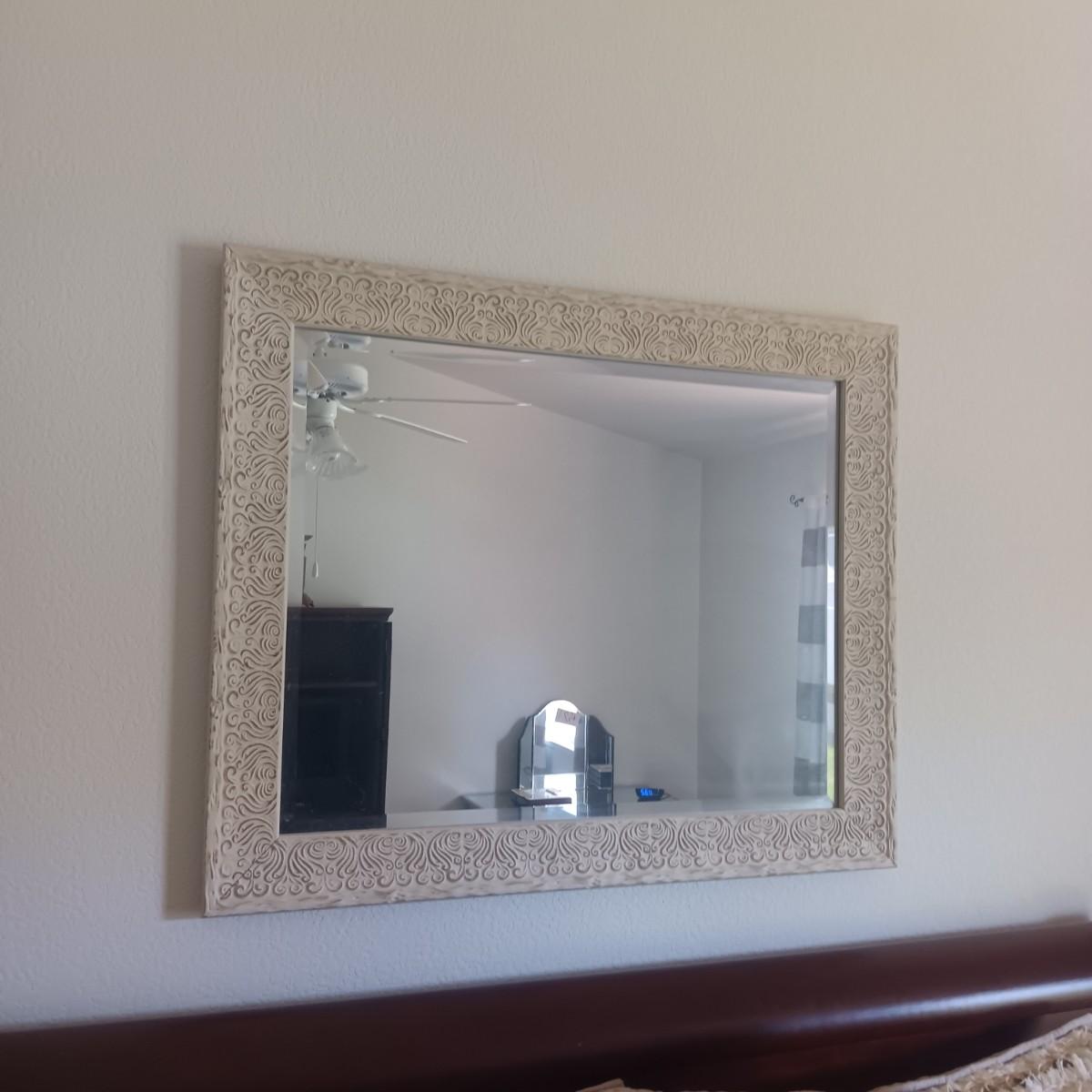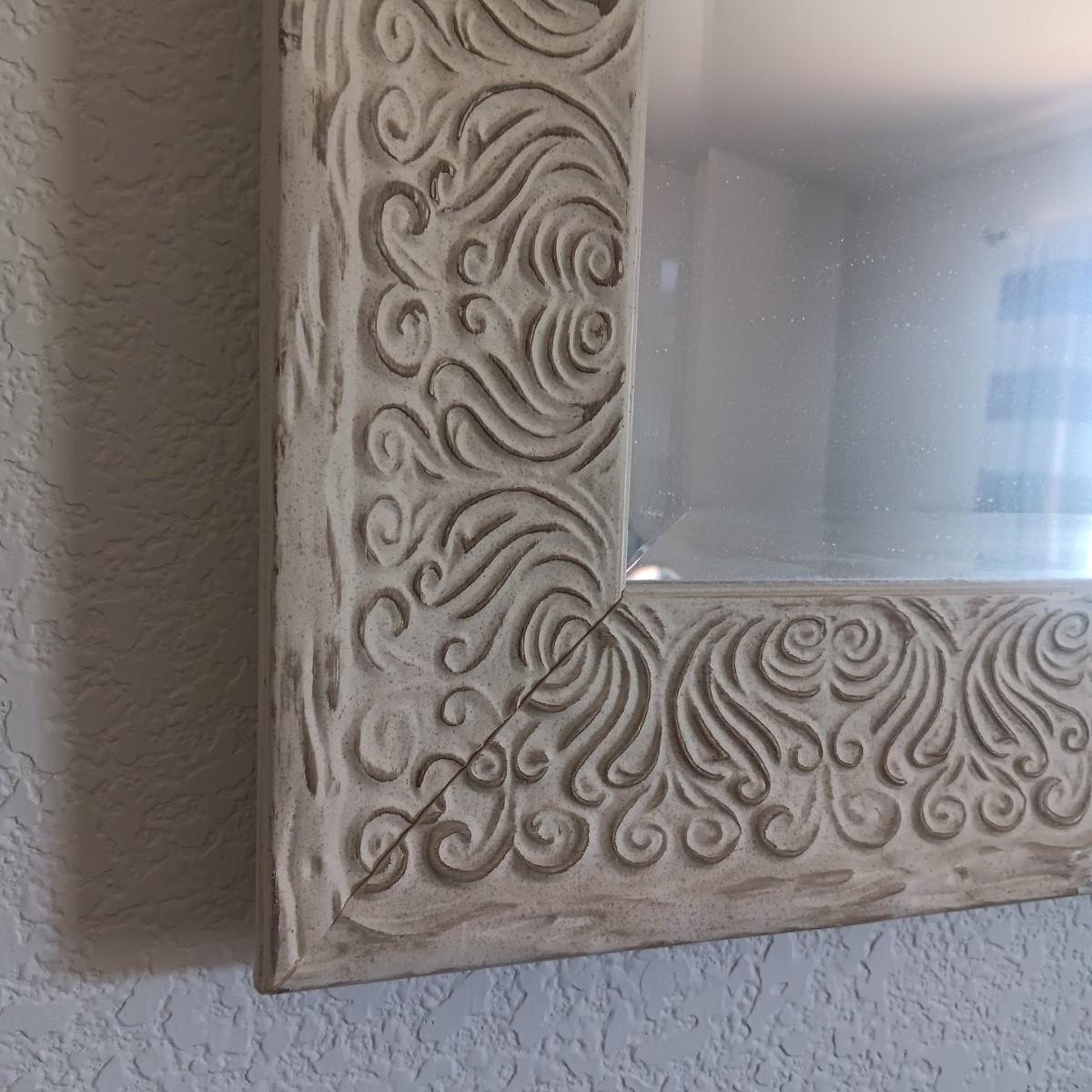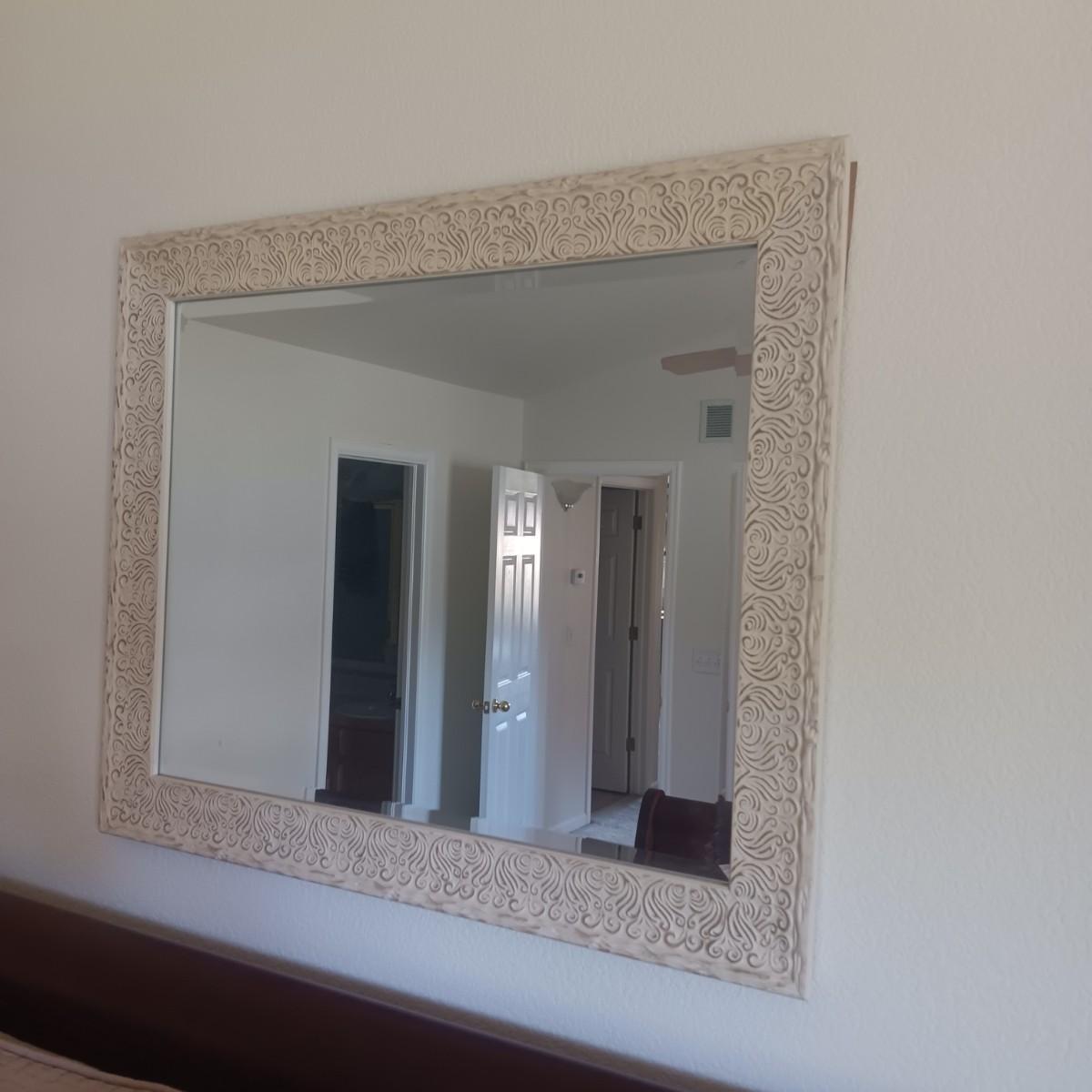 WEDDING WHITE ORNATE FRAMED BEVELED WALL MIRROR