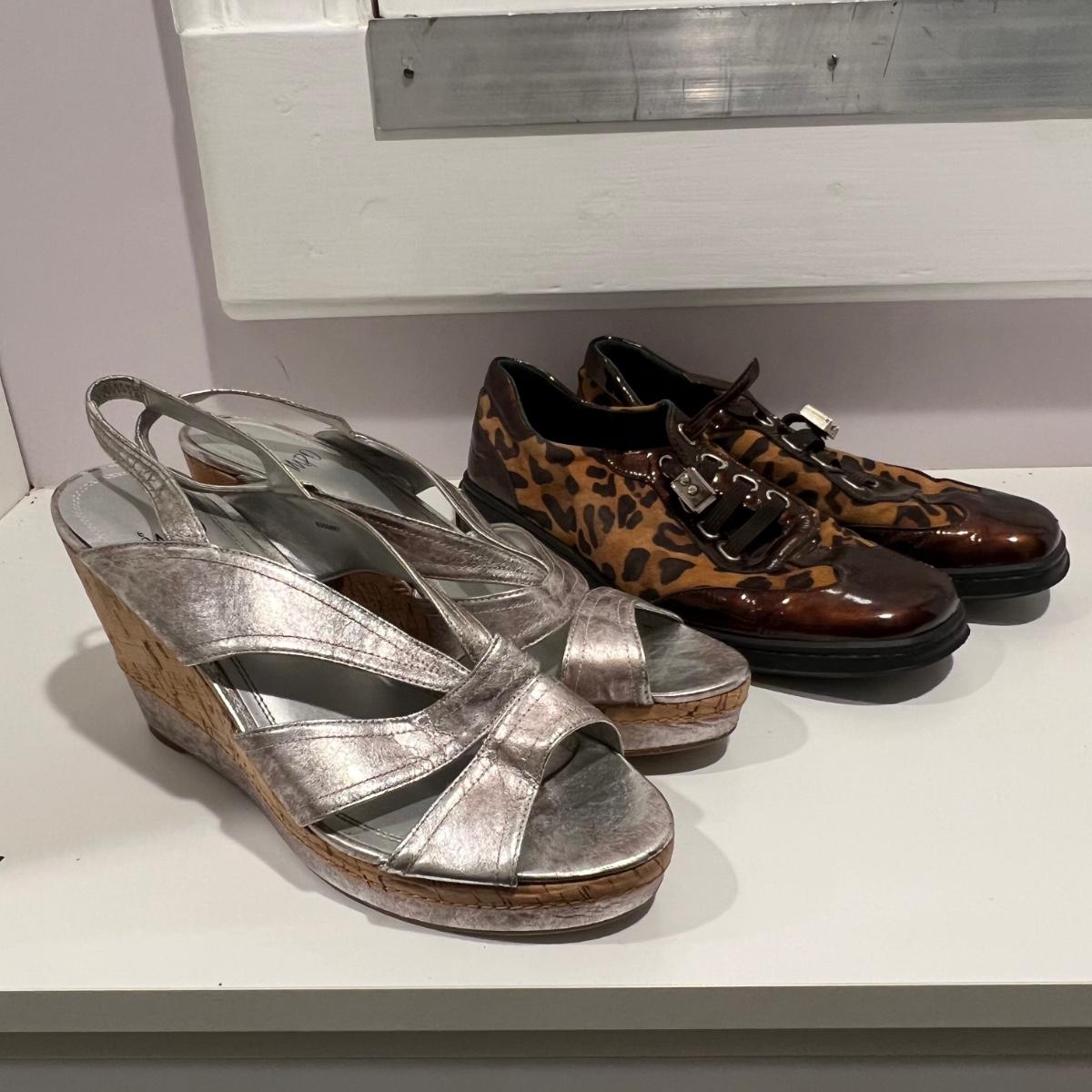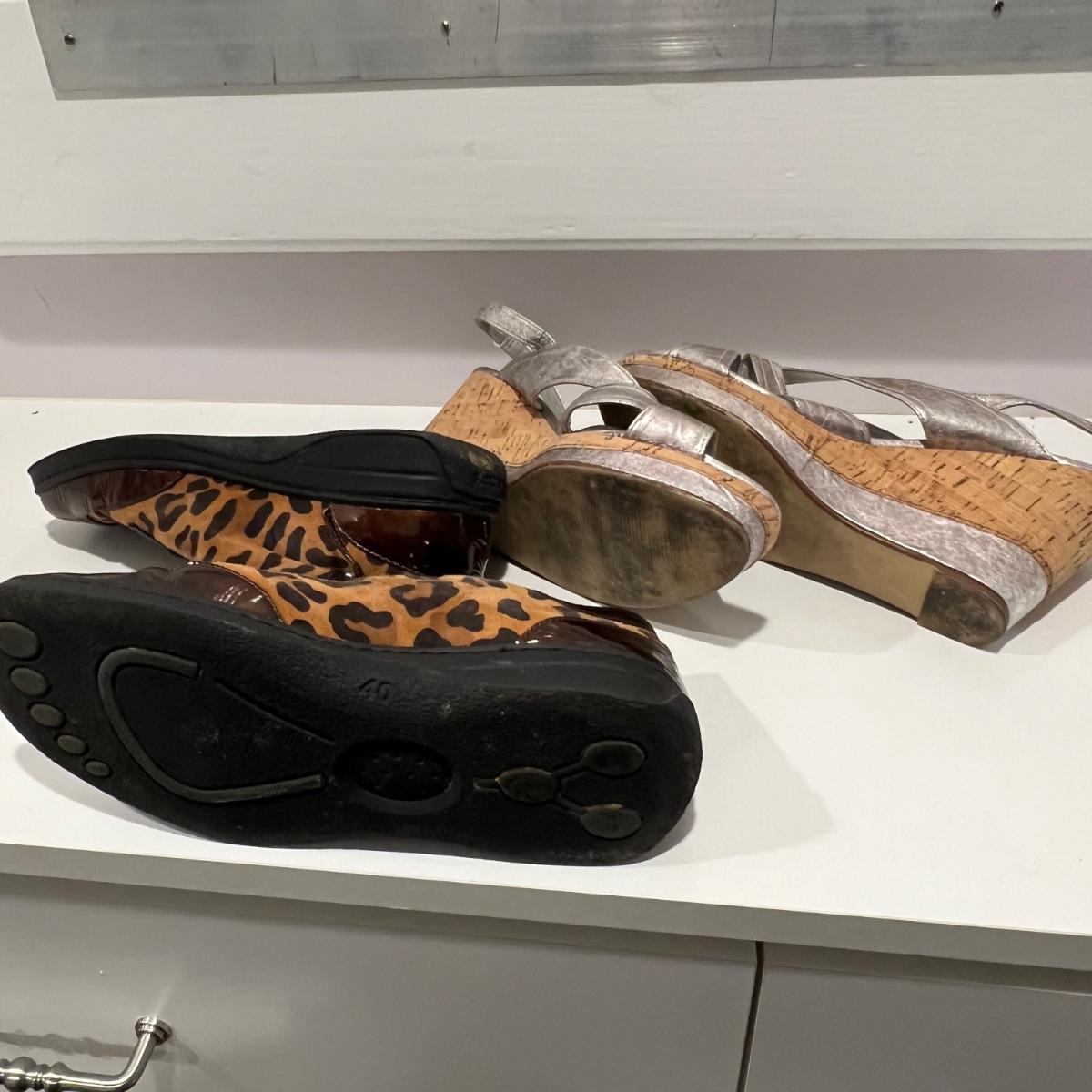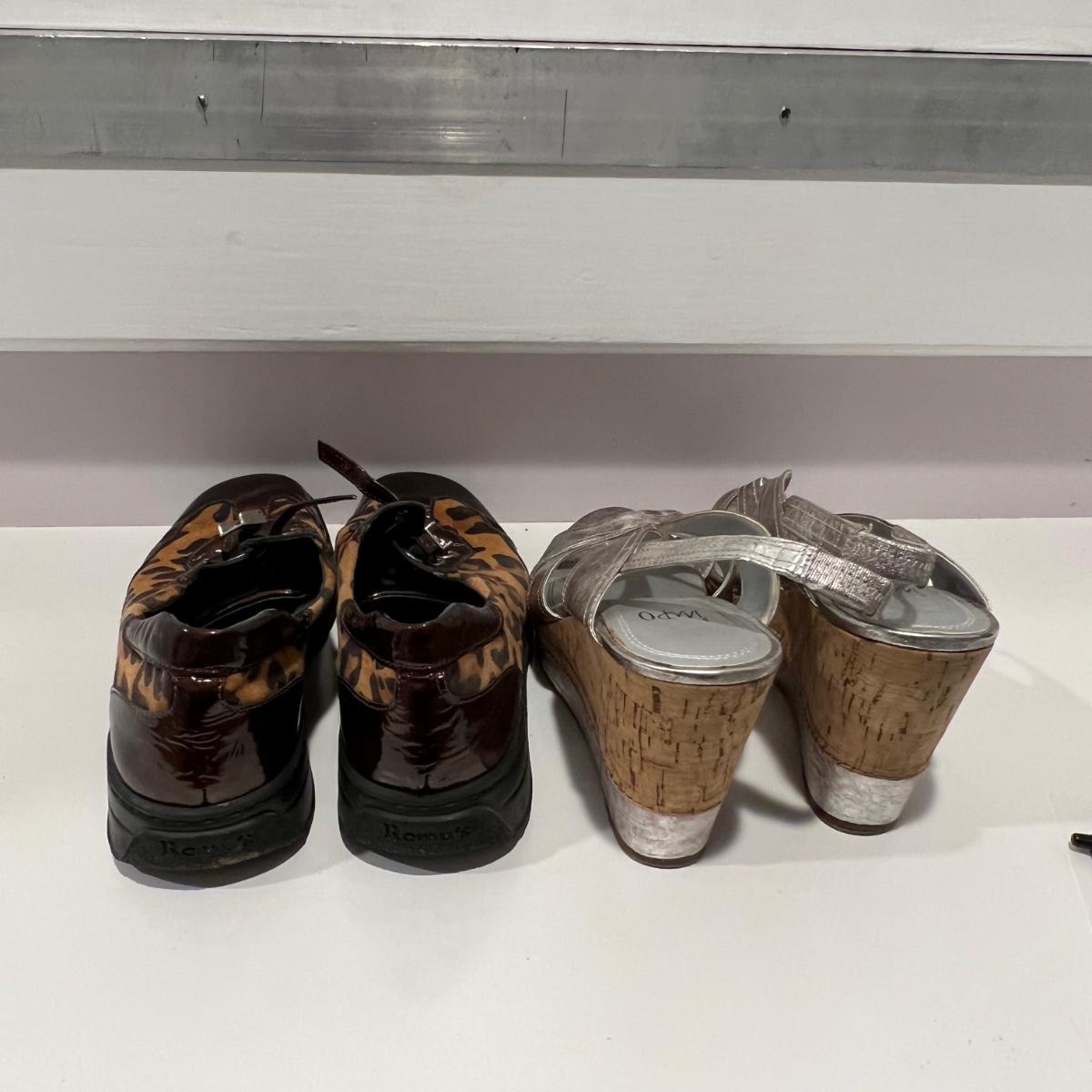 A great assortment of footwear from thong shoes to high heel wedged sandals plus flats and more. Sizes run from 9-10 with a few with no size that appear to be the same size as all the rest. Note the Romu’s sneaker like shoes have an interesting clasp that may not be operational but as they have laces, the clasps are possibly just decorative?