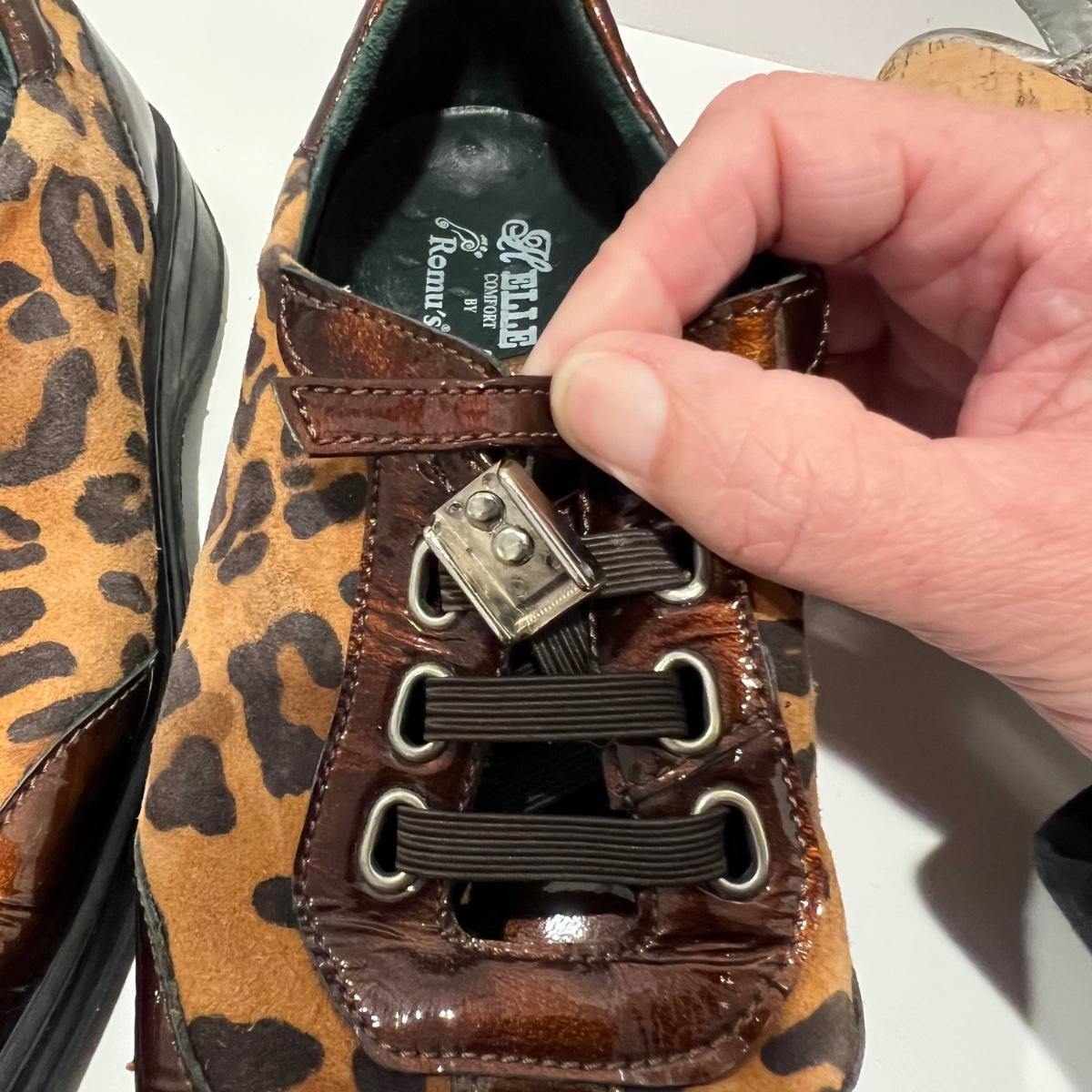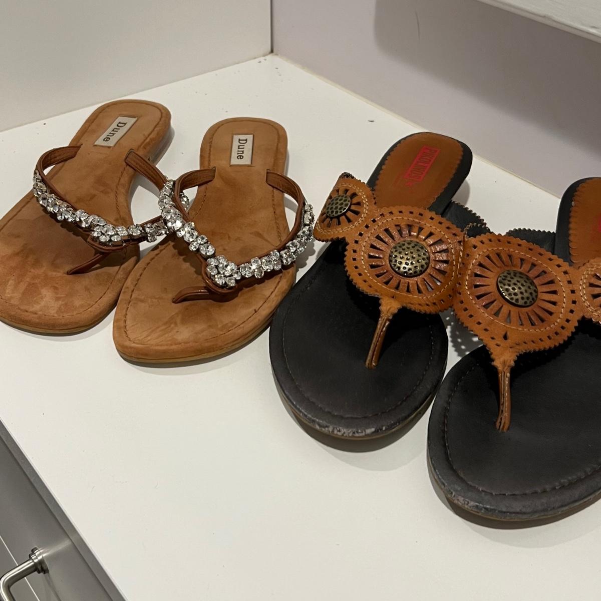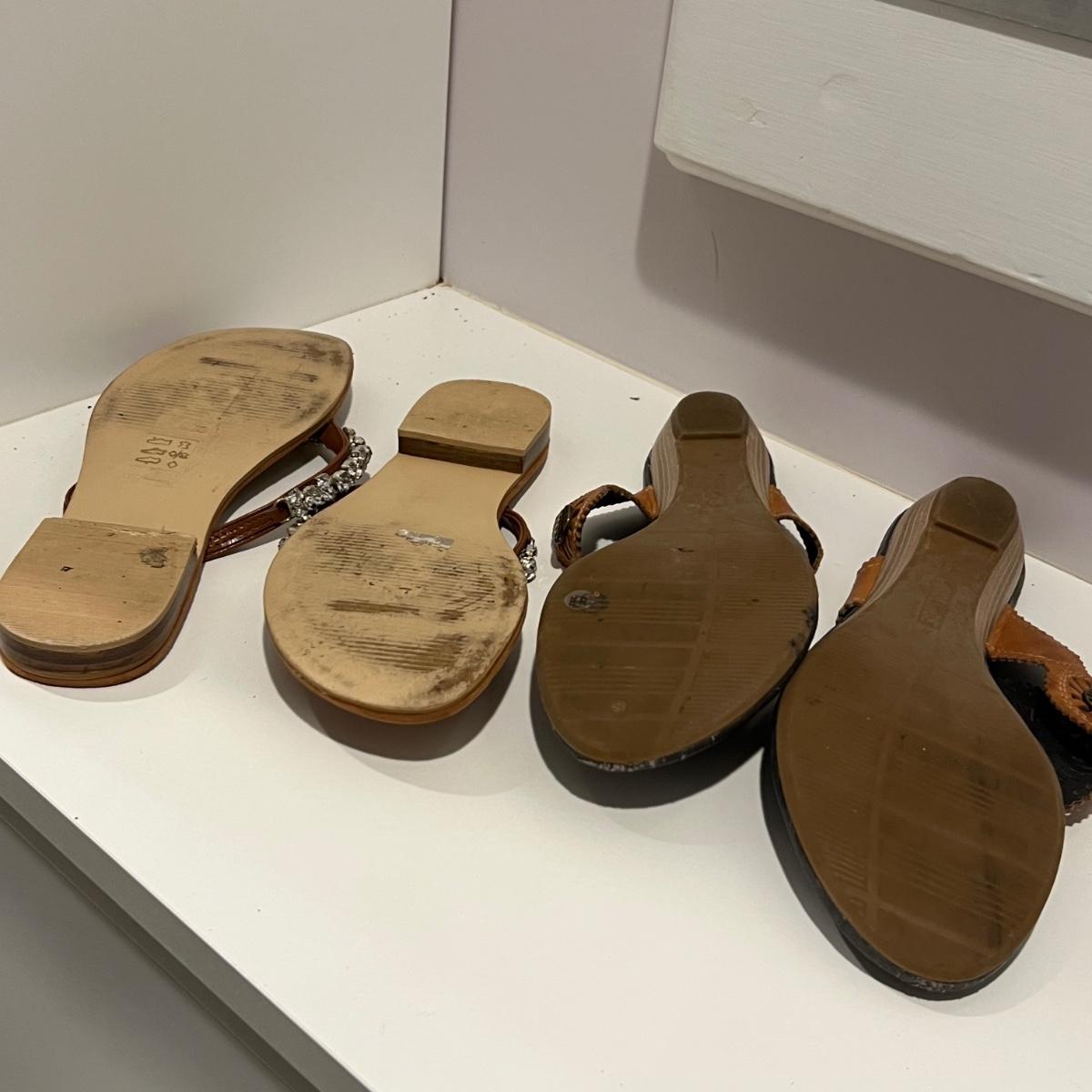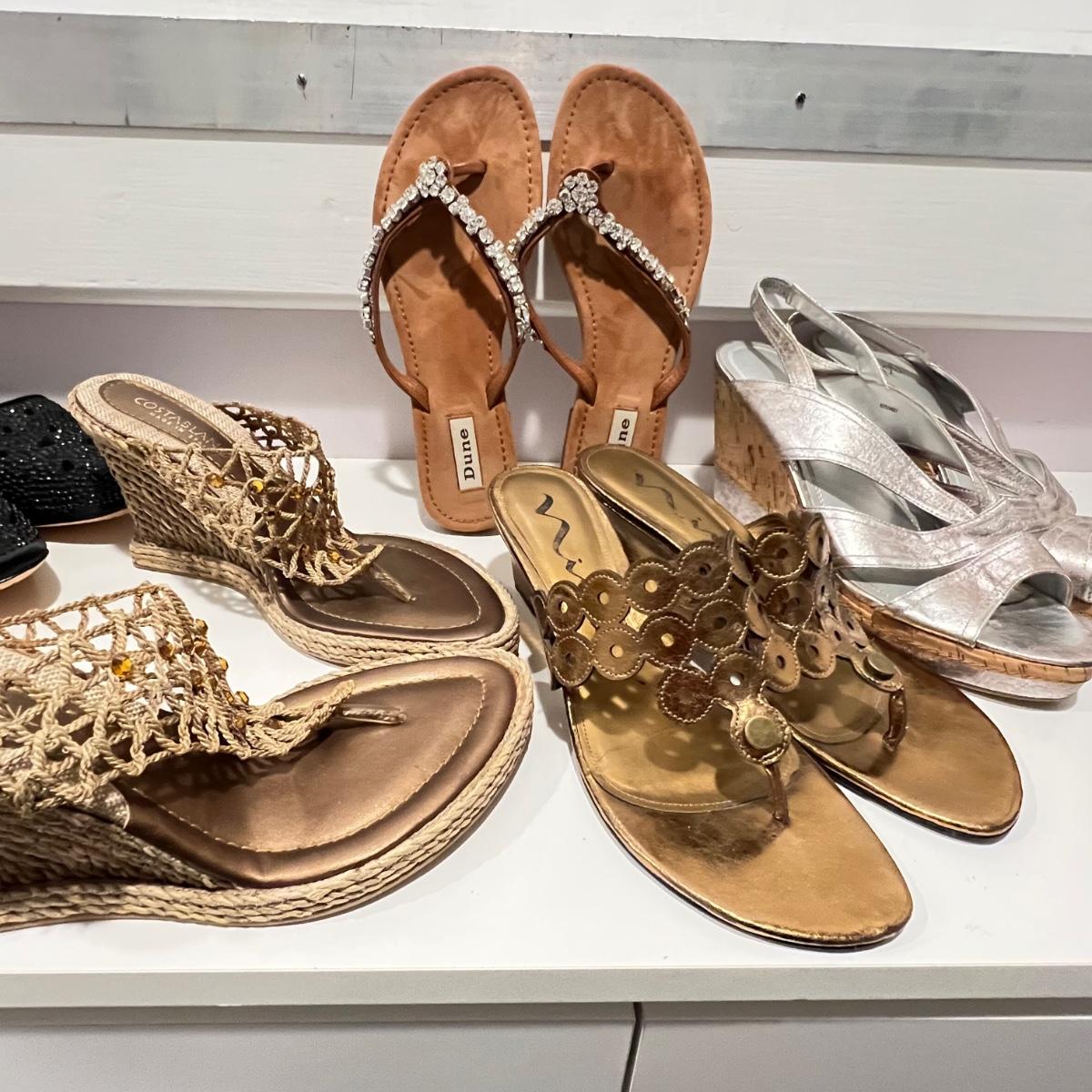 A great assortment of footwear from thong shoes to high heel wedged sandals plus flats and more. Sizes run from 9-10 with a few with no size that appear to be the same size as all the rest. Note the Romu’s sneaker like shoes have an interesting clasp that may not be operational but as they have laces, the clasps are possibly just decorative?