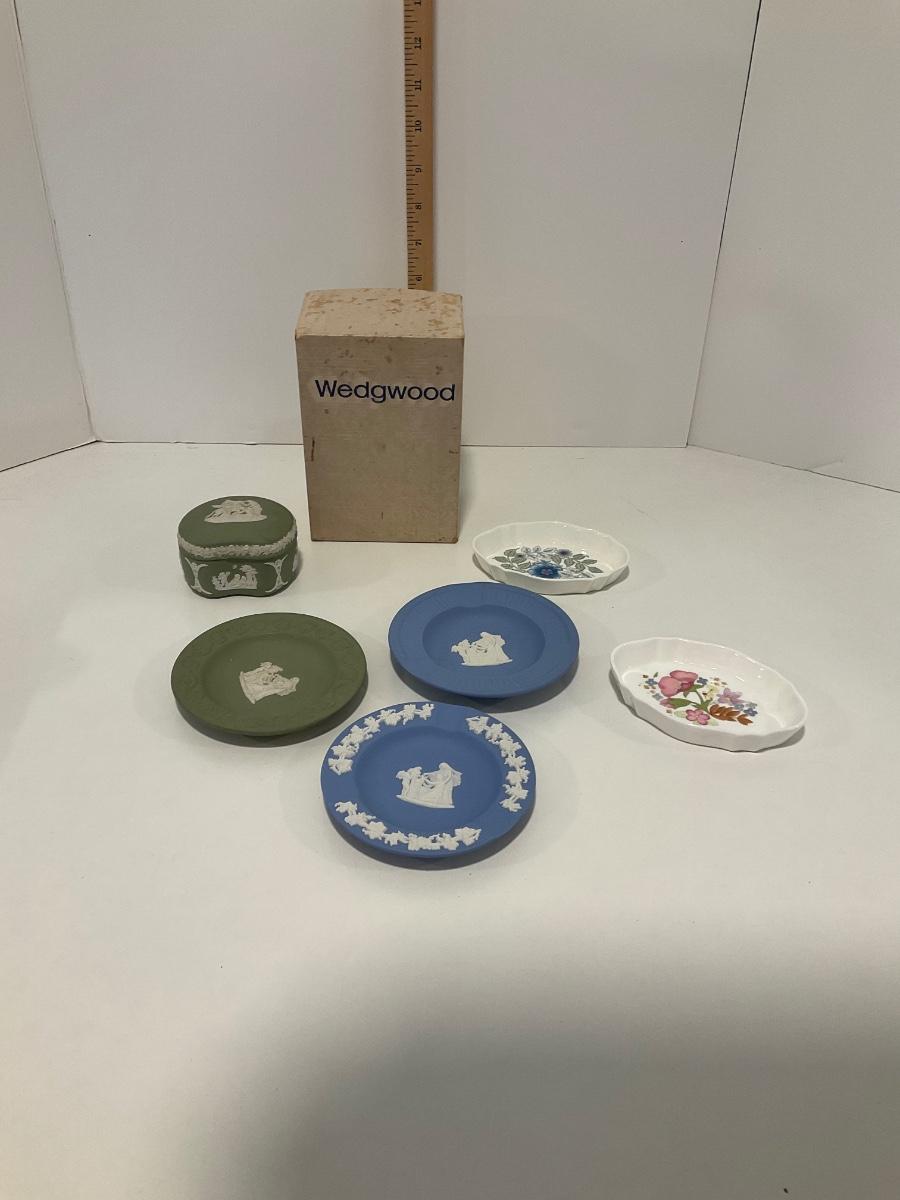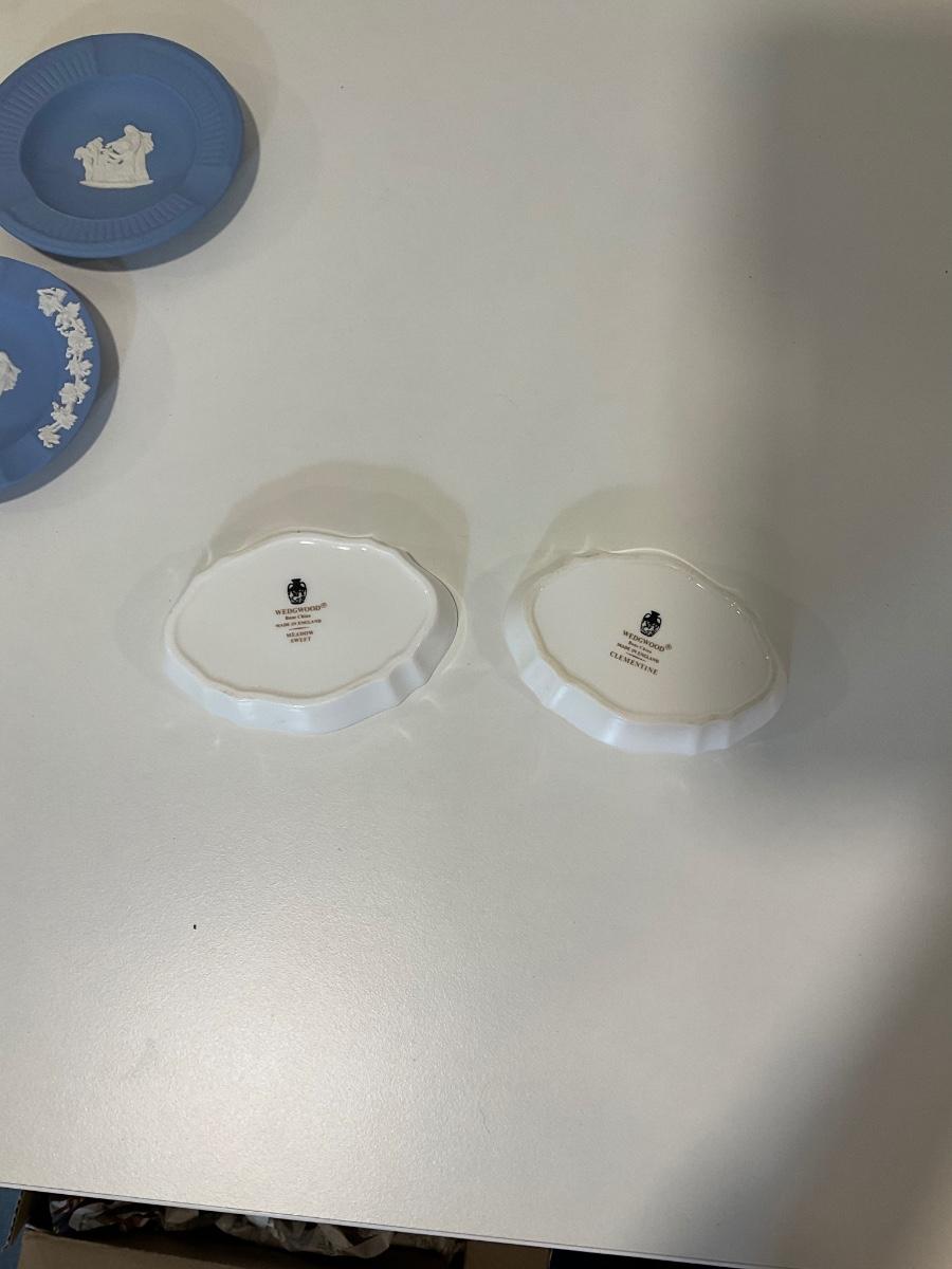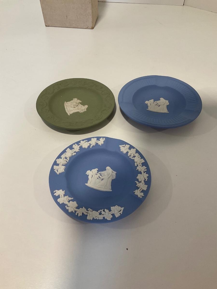 2 blue wedge wood - 1 is ashtray and 1 is dish