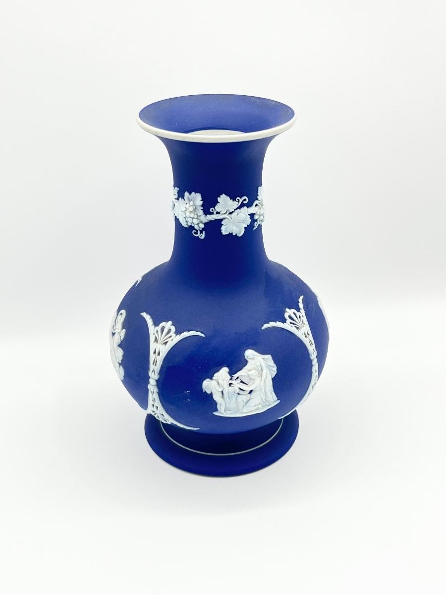 WEDGEWOOD ~ 8” Cobalt Blue Jasperware Cameo Vase