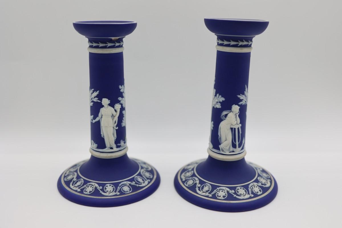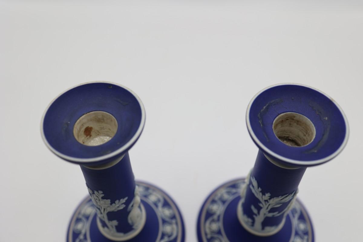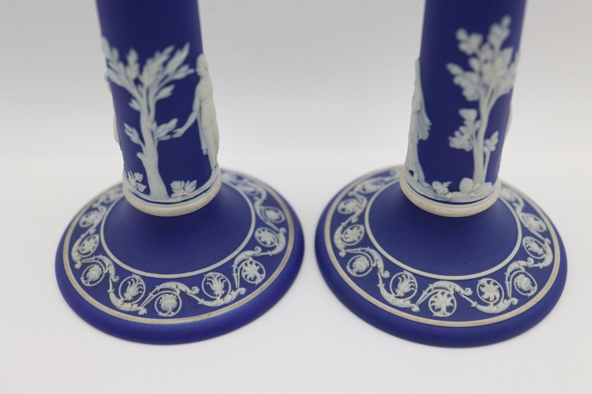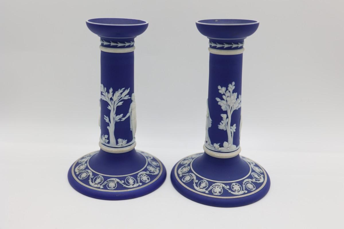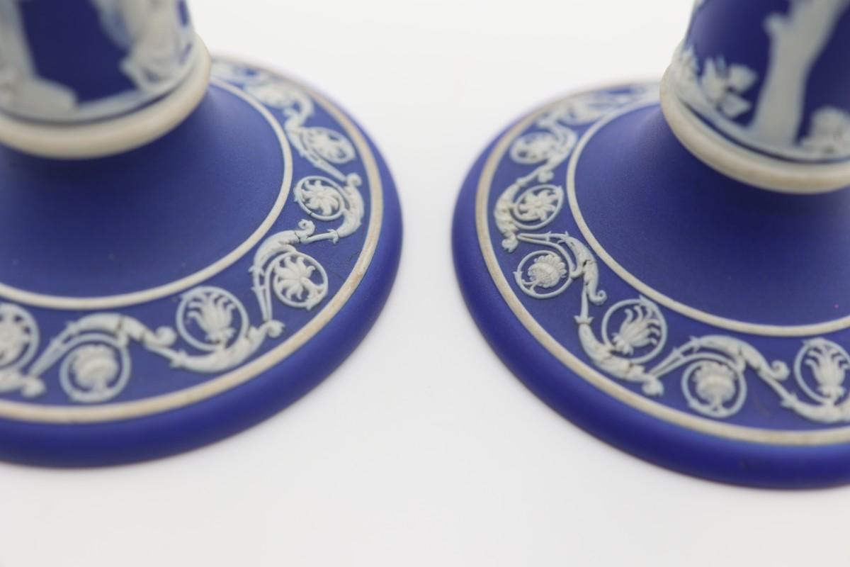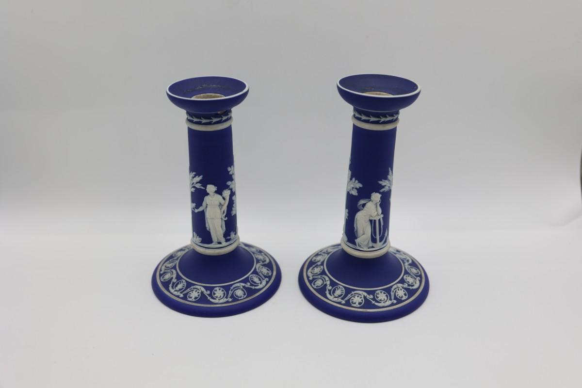 WEDGWOOD Blue Classical Greek Candlestick Holders (2)