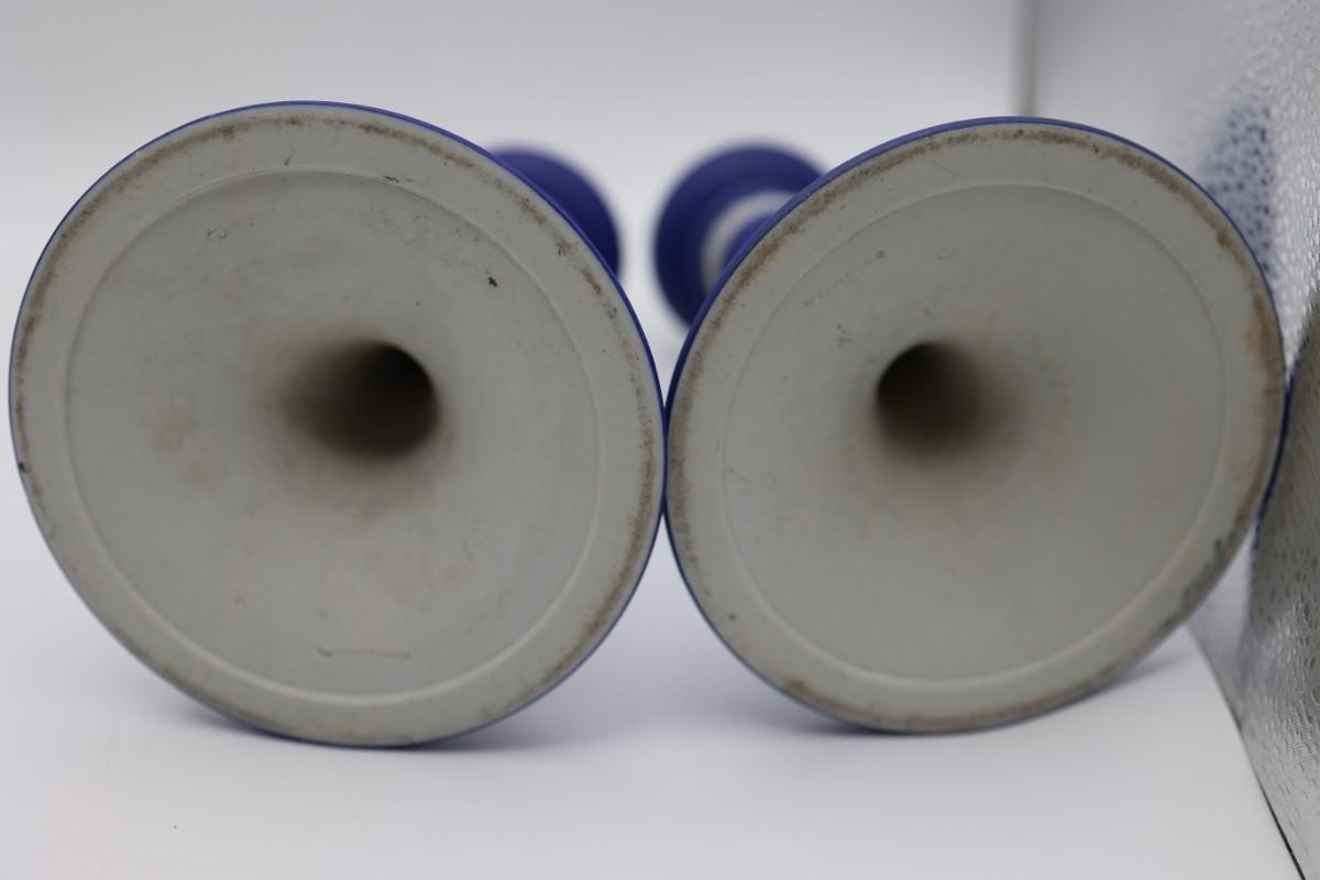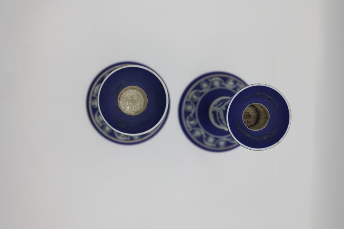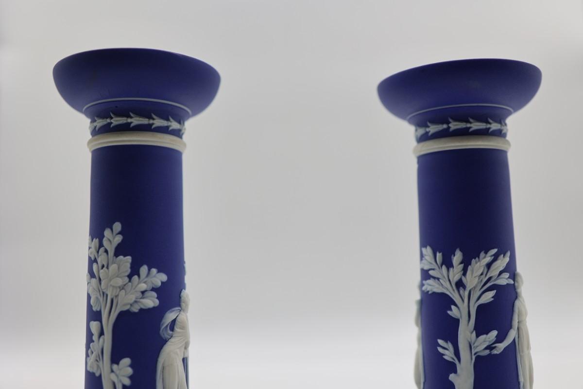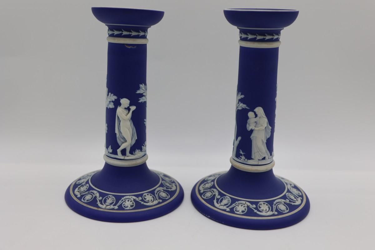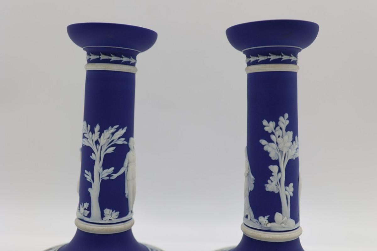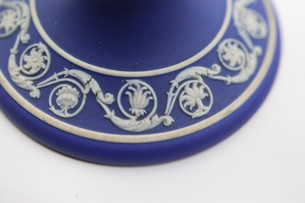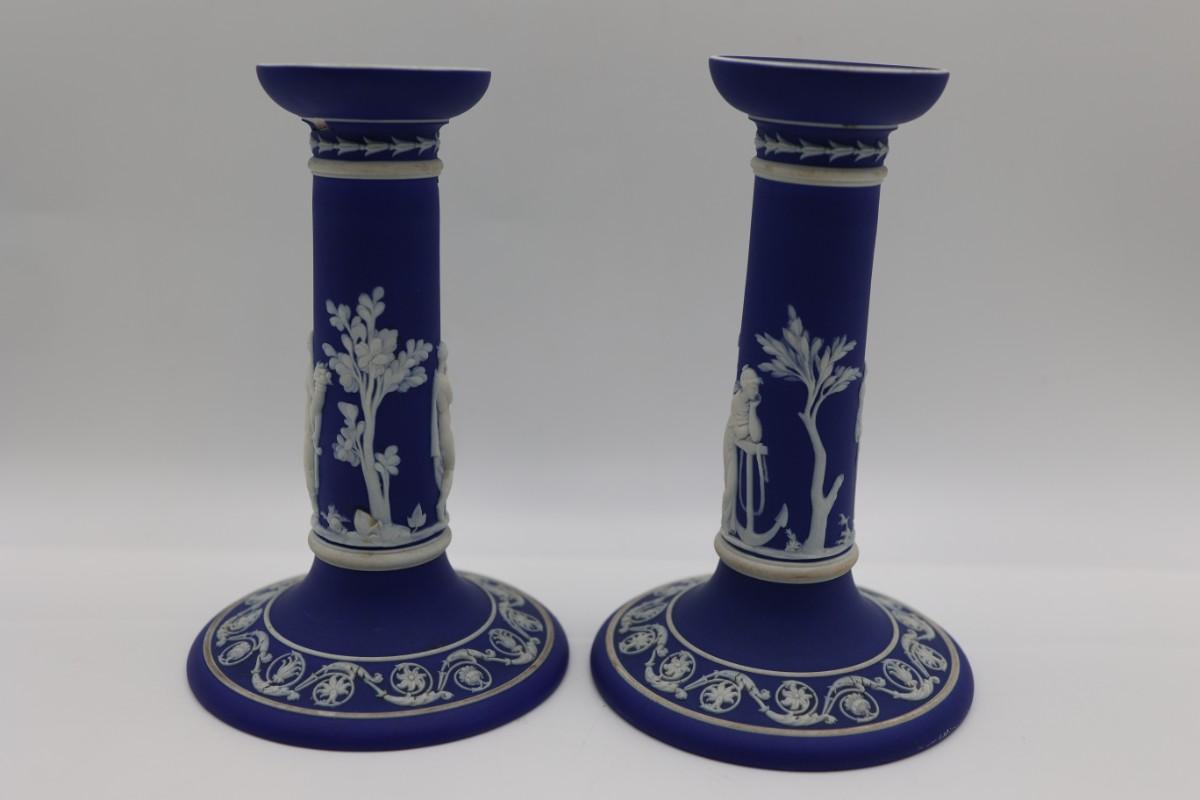 WEDGWOOD Blue Classical Greek Candlestick Holders (2)